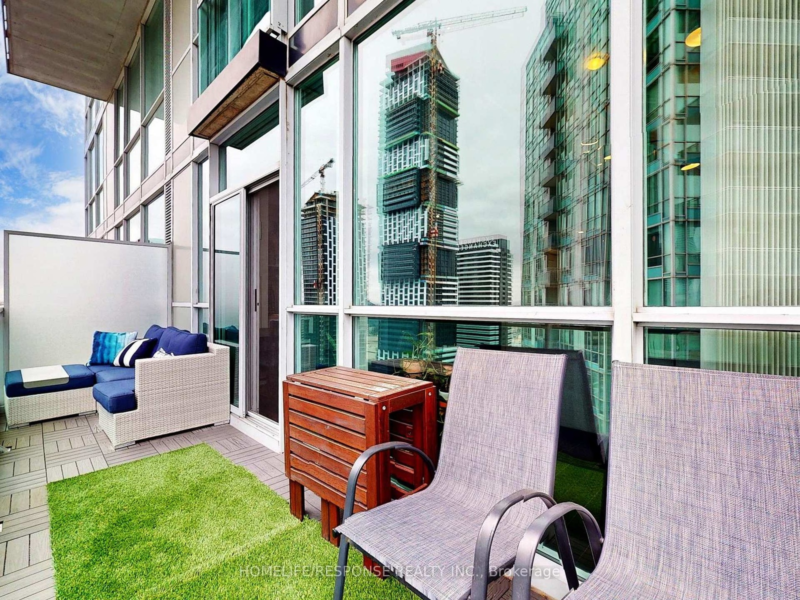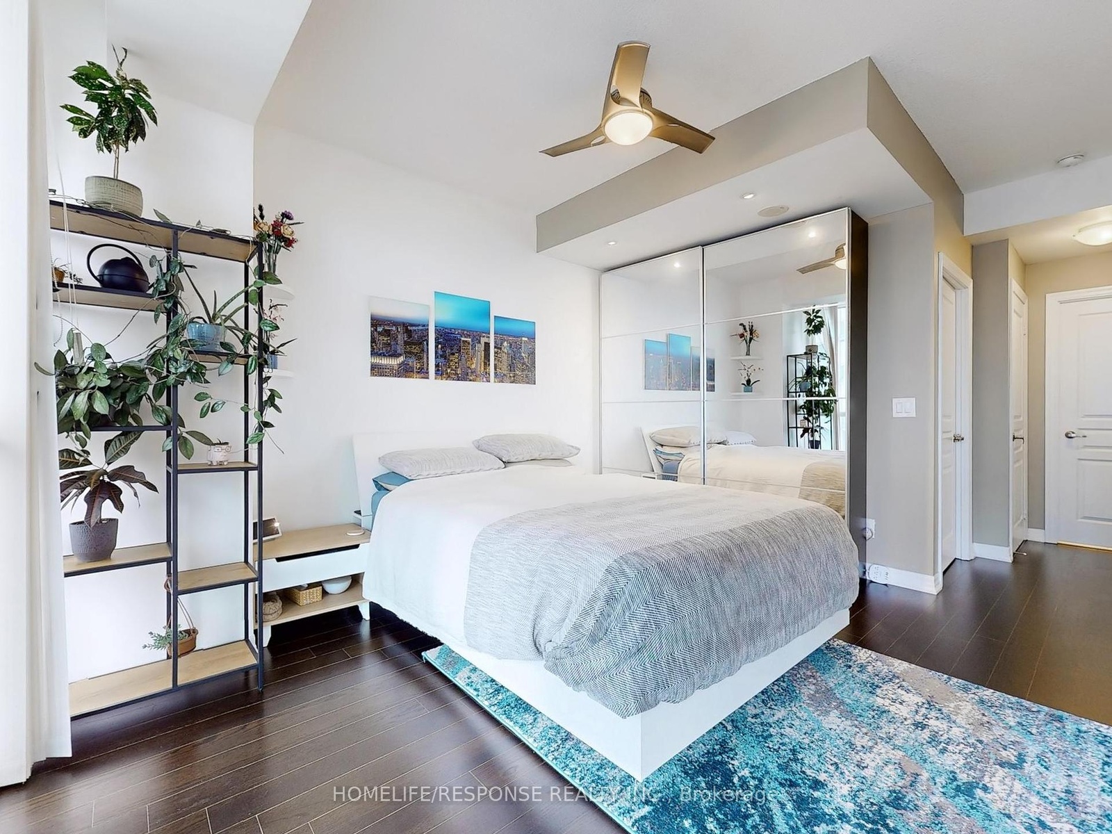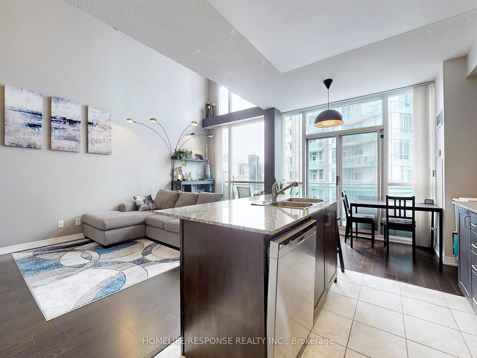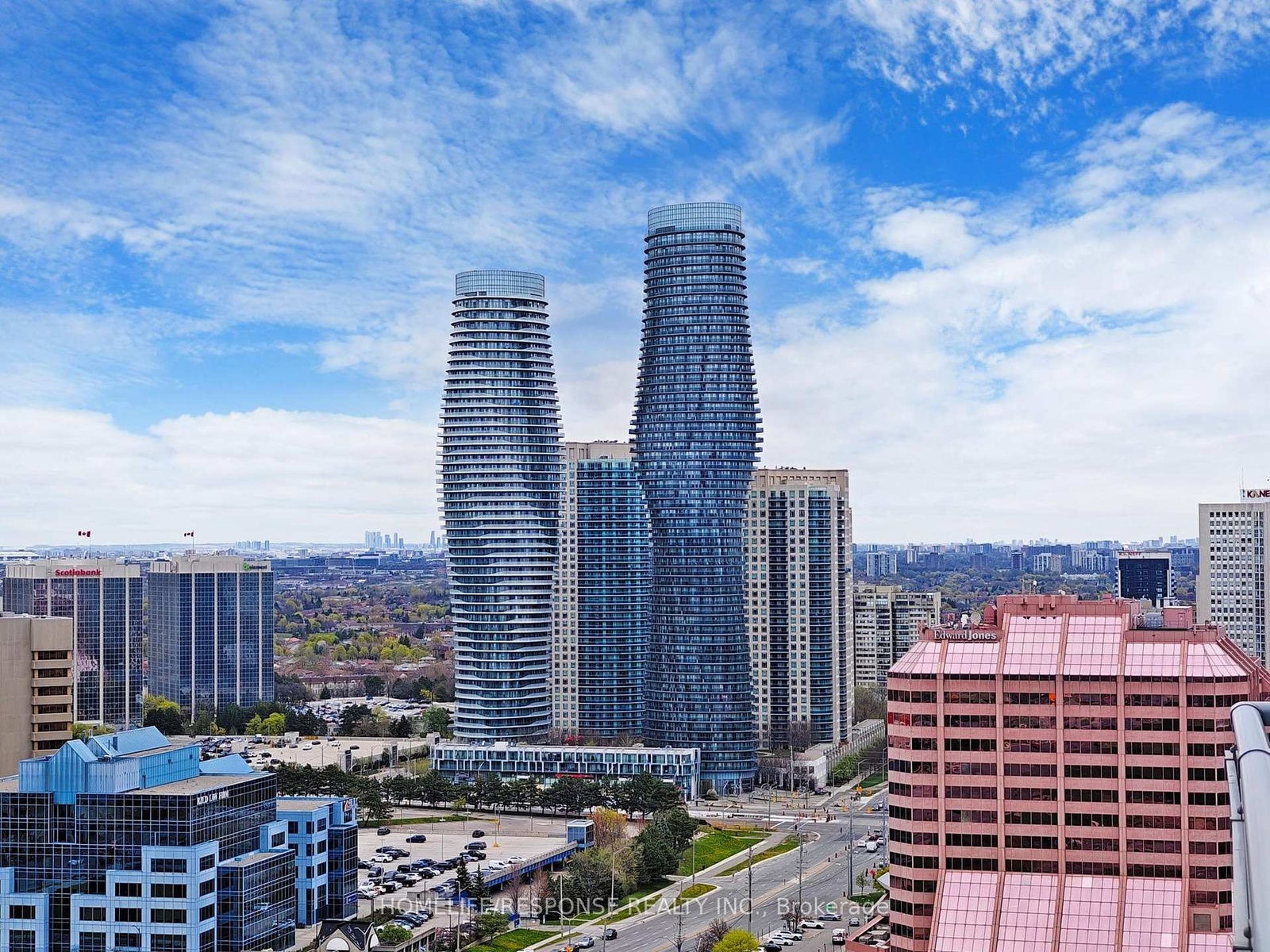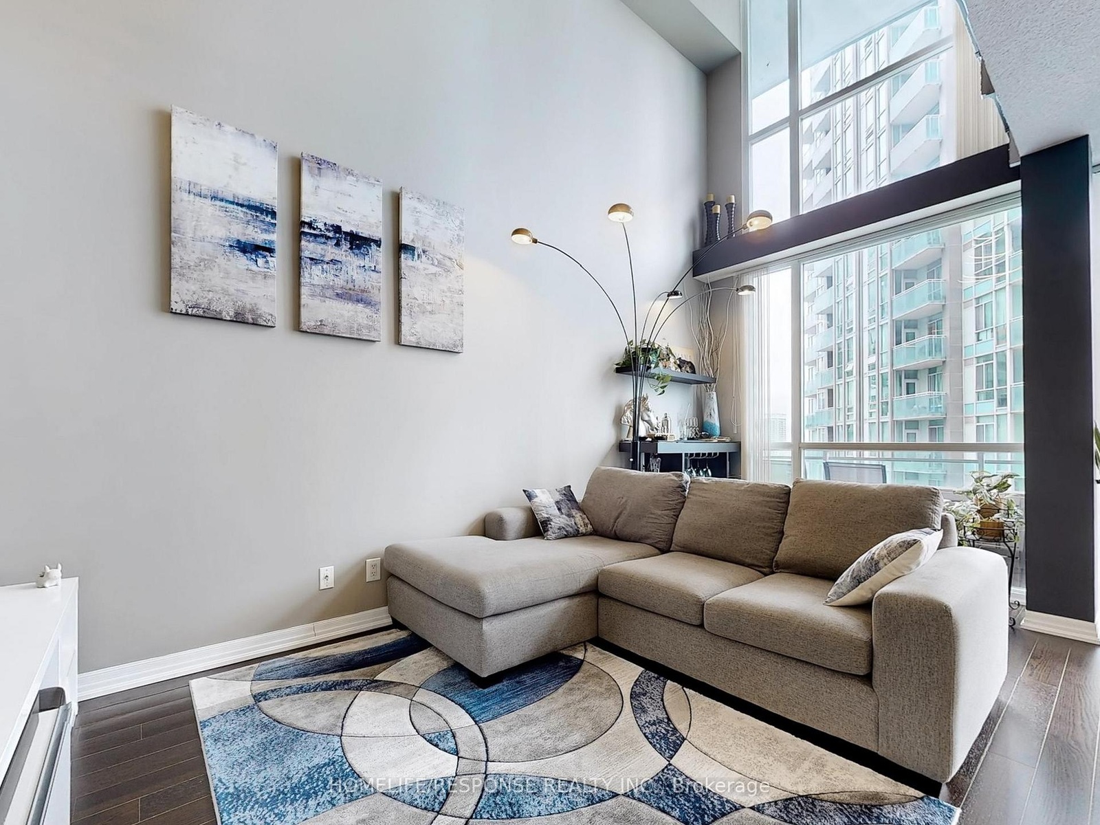 Dreams Really Do Come True! This one-of-a-kind, modern two-storey loft in the upscale Onyx building offers over 800 sq ft of luxurious living in the heart of downtown Mississauga. Featuring a gorgeous upgraded kitchen with stainless steel appliances, granite counters, and a center island, its perfect for entertaining. The bright, open-concept design boasts soaring 18-foot floor-to-ceiling windows that flood the space with natural light, a spacious living and dining area, and a large balcony with breathtaking panoramic views of Mississauga and Celebration Square an ideal spot to watch fireworks! This beautifully designed loft includes 1 bedroom + den, 2 bathrooms, a large closet, and a 4-piece ensuite. The versatile den is perfect for a home office or nursery. Residents enjoy unbeatable convenience with steps to grocery stores, medical care, Sheridan college, YMCA, Library, top restaurants, entertainment, Square One Mall, walking distance to tennis/soccer fields and easy access to buses, the QEW, 401/403, and Cooksville GO station all just minutes away. Next to Kariya park with cherry blossoms in spring. Experience refined urban living in one of Mississauga's most sought-after addresses! 2 Parking. Amenities Include: 24 Hour Concierge! Guest Parking! Rooftop Patio! Fitness Centre! Yoga Room, Indoor Pool, Hot Tub!