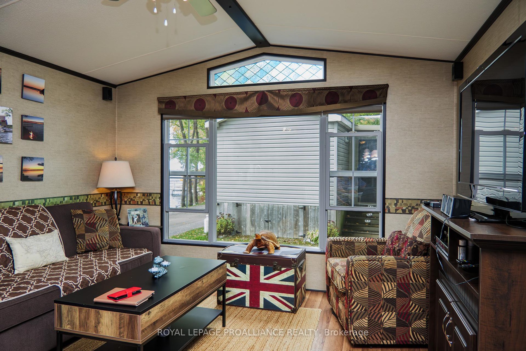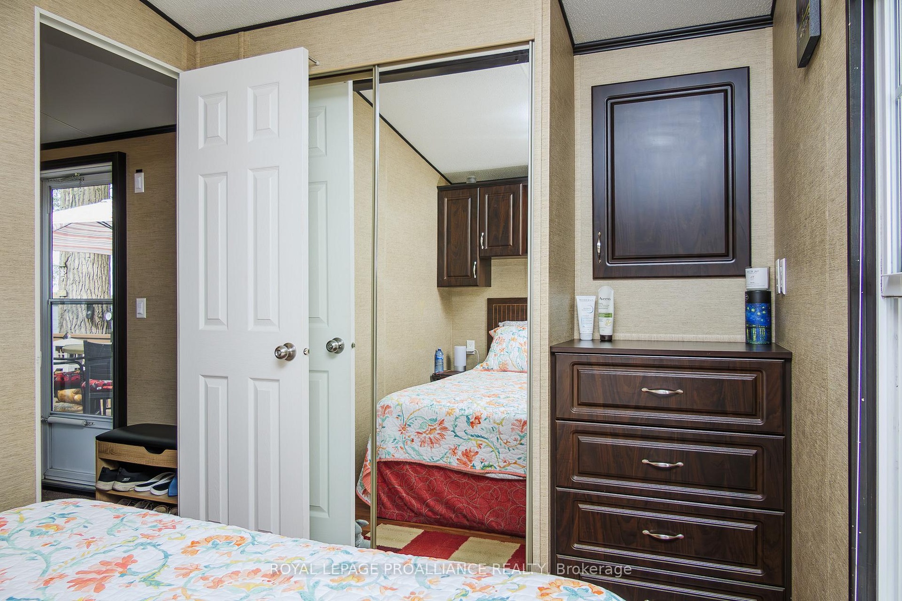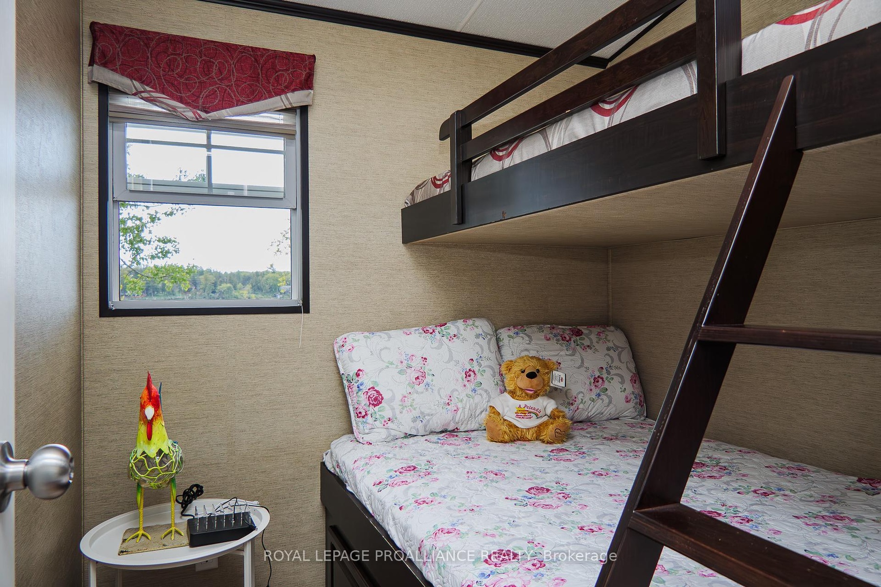 DescriptionAbsolutely one of the best WATERFRONT lots in the Park! Not only is it located on the sought after Peninsula of Cherry Beach, but this stunning lot is also located on a lot with unobstructed water views on both sides. This part of the peninsula only has trailers on one side of the road, providing the ultimate in waterfront enjoyment. No matter which window you look out of, you will see water. On the Southeast side there is Flakes Cove, a quiet Bay off of East Lake, offering docking, boat launch & fantastic sand beach with water toys. The Northwest side of the unit is beautiful East Lake, offering breathtaking panoramic views & glorious sunsets. This particular lot offers approximately 60ft of East Lake sandy shoreline & a tiered lot boasting natural rocks, mature trees, landscaping & firepit near the waters edge. Other outdoor features include a 35ft x 10ft rear deck overlooking the water, interlocking walkway with lighting, storage shed plus all exterior furniture & accessories. Inside this 2012 Ash model has 2 bdrms & 1 bath & can sleep up to 7 persons, including use of the pull out couch. All interior furnishings, appliances & accessories are included for a turn-key summer experience. Unit is in great condition with a newer large picture window at the end of unit, forced air propane furnace for those cooler nights, C/Air, surround sound speakers & T.V, & patio door from the living rm, leading to rear deck. Spare bdrm has dbl bunks & sleeps 3 plus the primary bdrm has built-in cabinetry & Queen bed. Affordable summer time fun in a great park with several amenities such as: heated pool, multi-purpose basketball & tennis courts, splash pad, rec centre, playground, boat docks, food truck & more. Cherry Beach is a seasonal Park located in Cherry Valley, Prince Edward County only 7 minutes to Sandbanks Prov. Park. Park is open May 1 to Oct. 31. Annual Park fees $16,015 +HST & include: land lease, taxes, grass cutting, hydro & park amenities. Staycation all summer longAmenities- Bay