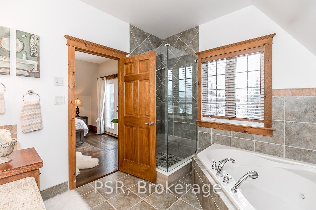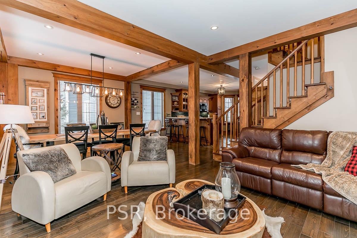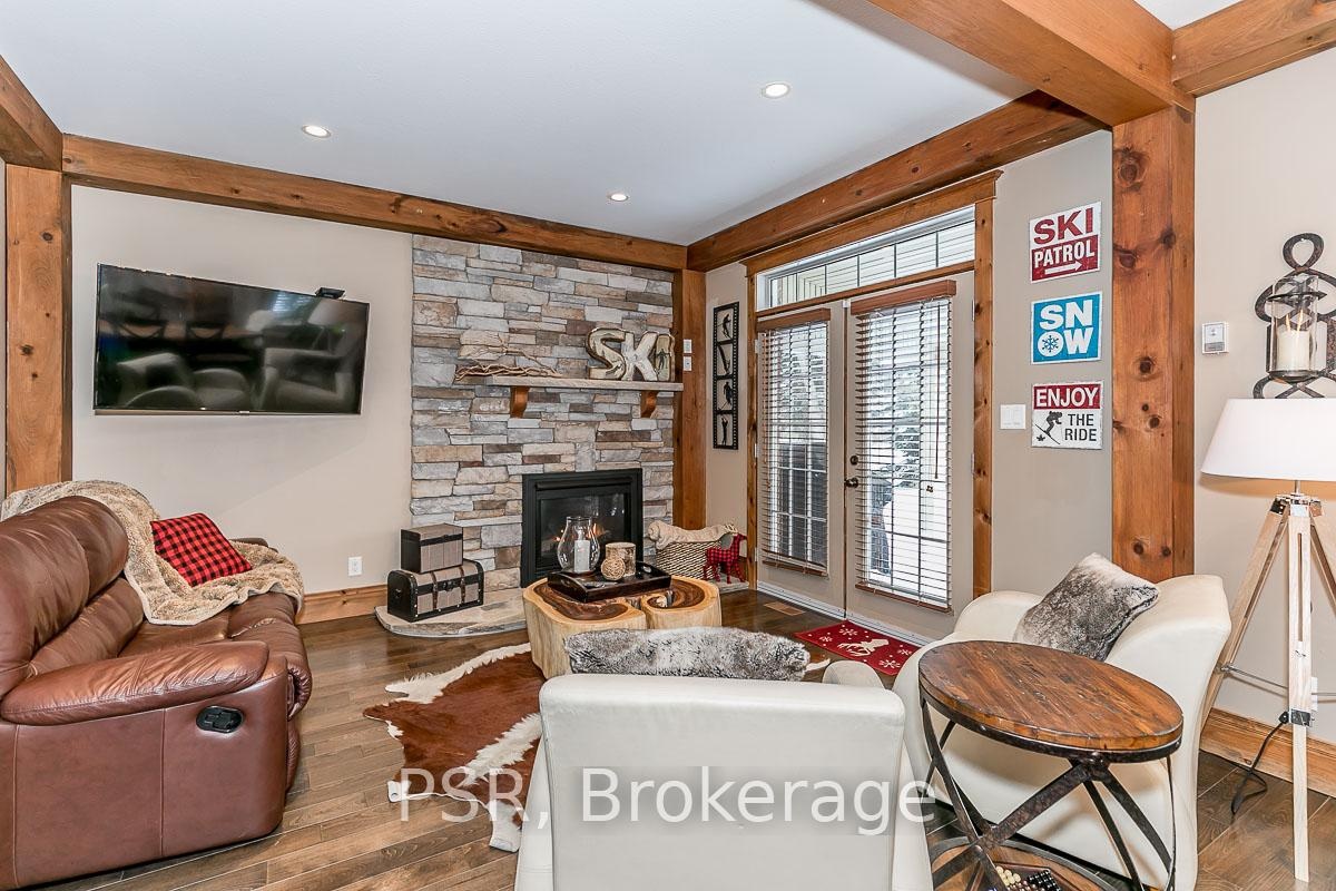 PERFECT FOR RETURNING SNOWCATS! Rental is from NOV 2025-MAR 2025. Just move in to this spectacular home in Historic Snowbridge. Walk to the lively Blue Mountain Village, or order your own personal shuttle service to the hill! And just quick drive to Thornbury or Collingwood for cafes, shops, galleries and grocery stores and every amenity you can think of. This 5 bedroom, 4 bathroom home has ample space to host a large family. This home is loaded with charm. Post & beam wood accents throughout. Lovely spacious front foyer, open concept living space with gourmet kitchen offering granite counters, breakfast bar & plenty of storage. Extra large dining area for entertaining & cozy sitting room with stone gas fireplace, walk out to deck & hot tub, relax after a hard day on the hills! Up the stairs is an oversized family room with a 2nd gas fireplace. Upper level also includes 3 beds, main bath, master with generous ensuite & large walk in. Hardwood & stone flooring throughout. In the Summer & Spring enjoy your professionally landscaped yard with mature trees offering privacy, interlocking path up to quaint front porch. Basement is your bonus space with 2 more bedrooms, den and bathroom (perfect for teens!) Also ample parking and 1+ car garage with separate entrance. Contact for list of upgrades. Community pool! This home is a must see!