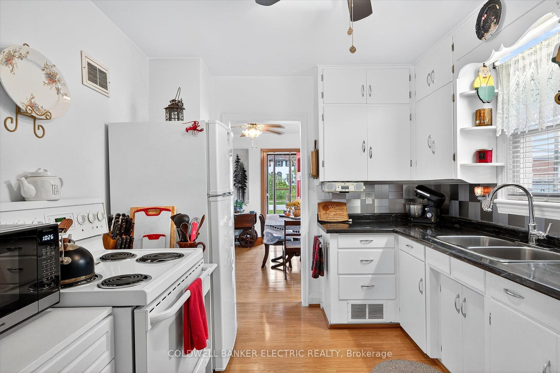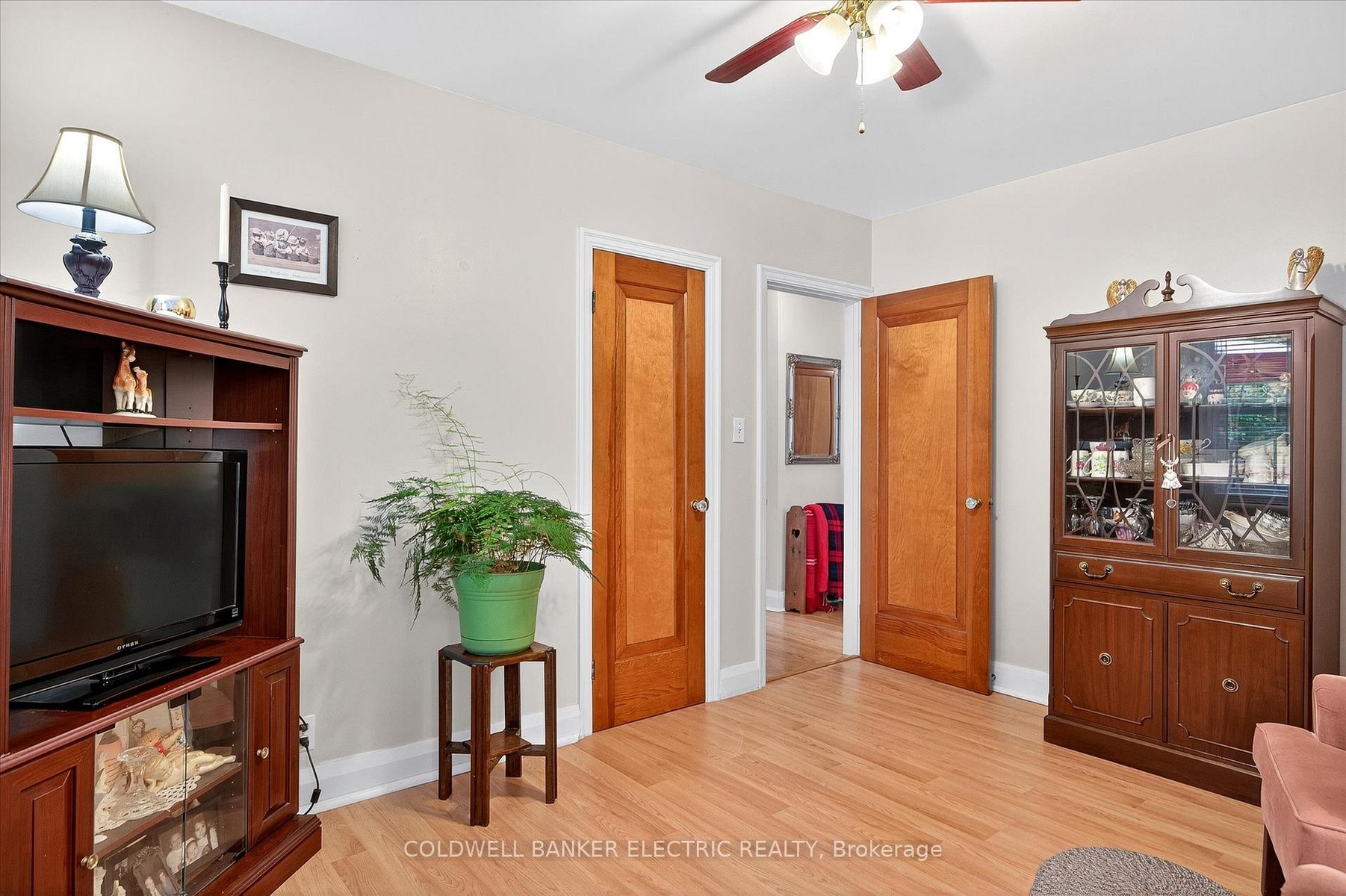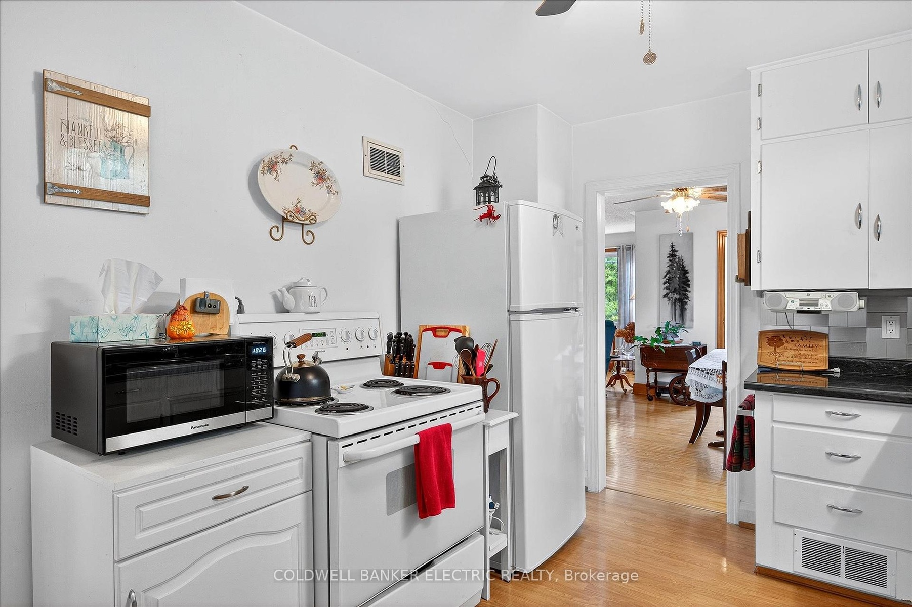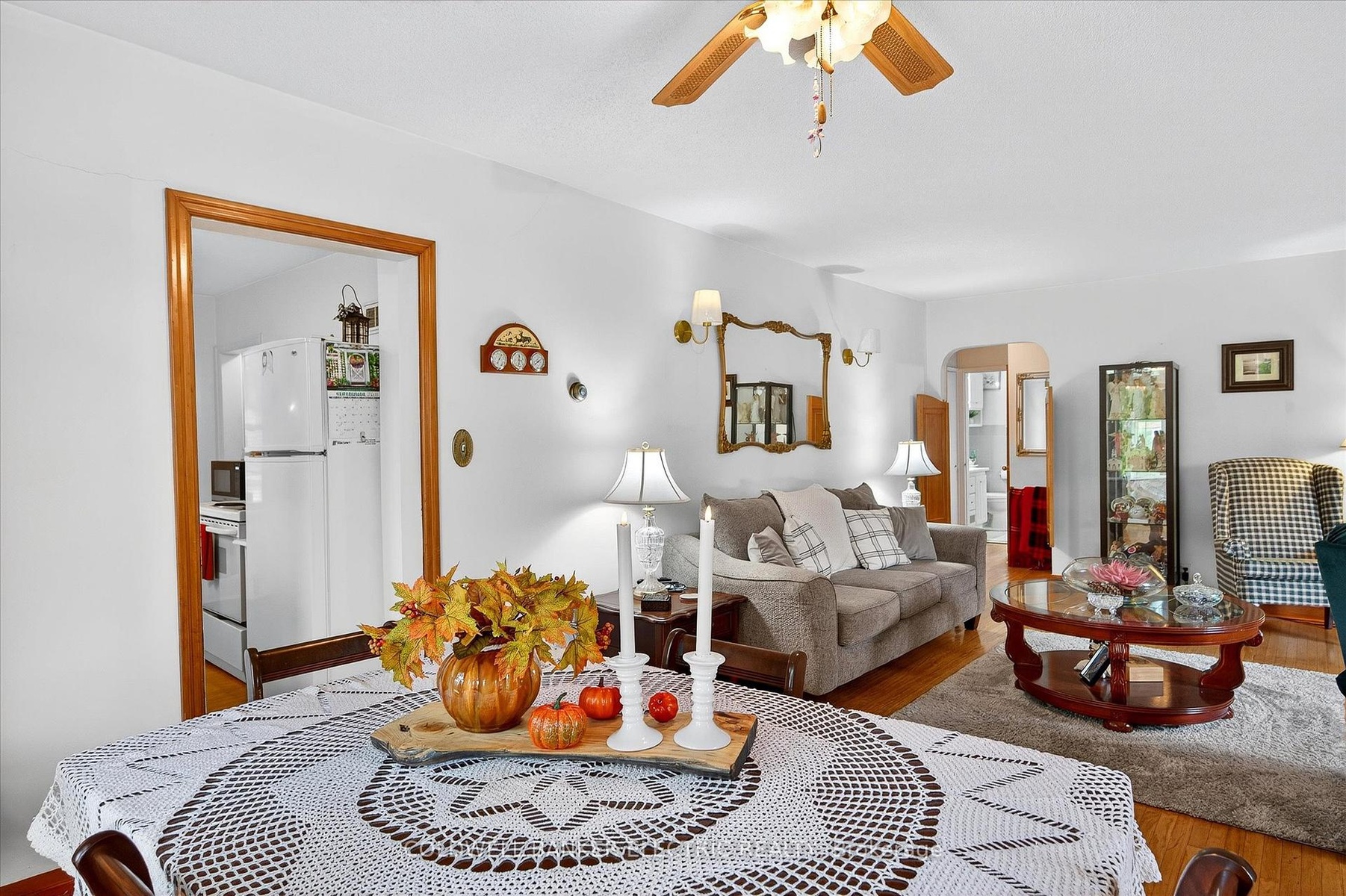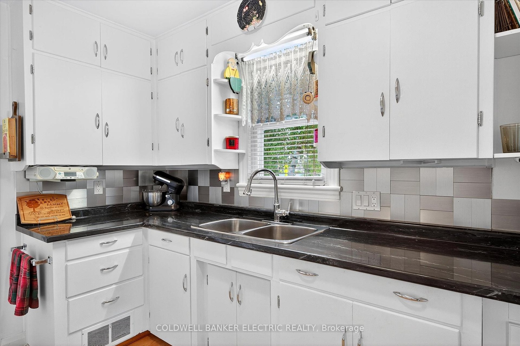 Nestled in a serene, water-adjacent community, this charming bungalow sits on a generous corner lot of approximately 95 feet by 170 feet. The property blends open space with natural beauty, featuring a tiered landscape that includes a large, flat area perfect for gatherings, as well as a wooded second tier for boat and utility trailer storage. This well-maintained bungalow boasts a low-maintenance exterior with a durable metal roof, vinyl siding, and vinyl windows. Inside, you'll find a cozy country kitchen, a comfortable living space with a dedicated dining area, two inviting bedrooms, and a versatile main-floor den or TV room. The basement provides ample storage, laundry facilities, and a convenient toilet beside the laundry tub. Just a short walk away, you'll find the Crowe River and nearby parks that offer endless opportunities for kayaking, fishing, and boating into Crowe Lake. You're also conveniently close to a sports center and the Marmora Pickleball Club, as well as local trails for ATVs and snowmobiling for some outdoor adventures .The property also includes a detached single-car garage with an opener, municipal water and sewer, natural gas heating and air conditioning. This property is ideal for first-time buyers or empty nesters seeking a peaceful, nature-filled lifestyle.