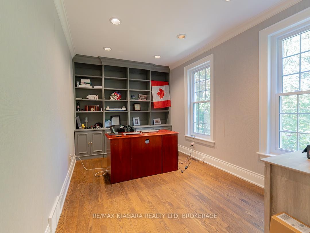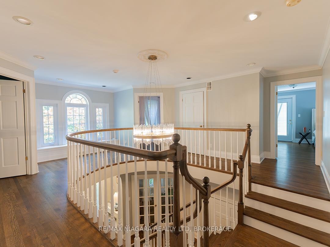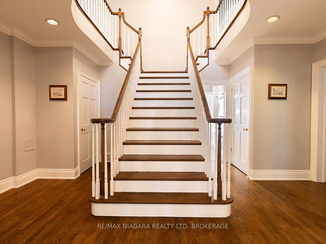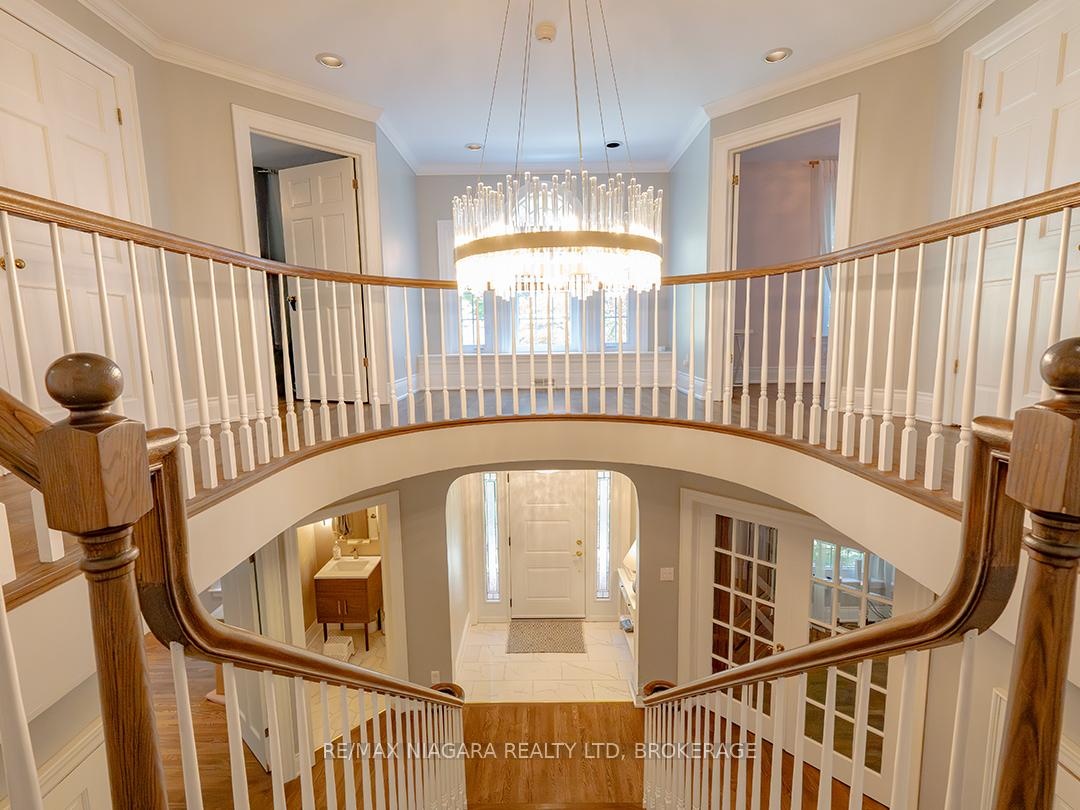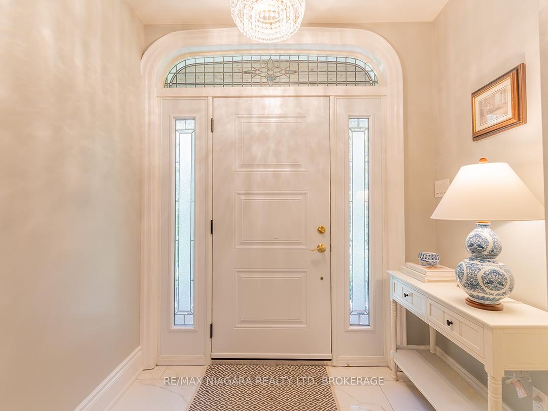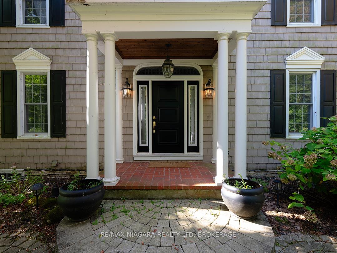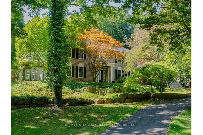DescriptionCamelot Hill Estate. Set on 1.2 acres of manicured grounds framed by mature trees, this custom-built Georgian Colonial offers over 3,700 square feet of timeless design and refined living space. Perched on a hillside overlooking winding Lakeshore Road West, this home has a dominant presence and is just outside of the lakeside town of Port Colborne.The columned entrance leads to a grand foyer that introduces a sweeping oak staircase and flows into formal living and dining rooms, each anchored by classic detailing. A main-floor office, sun-filled Florida room with French doors to the terrace, and a warm family room provide both formal and casual spaces. The kitchen, updated with new cabinets and flooring in 2022, blends tradition with modern function granite counters, high-end appliances, and an adjoining breakfast area overlooking the grounds.The upper level has 4-5 spacious bedrooms and 2.5 updated baths. Restored hardwood floors, two fireplaces, and an abundance of natural light reinforce the homes enduring character. The lower level is unfinished providing extra space for future finishing and expanding the living space of this grand home.Extensive updates include: new roof (2021), new windows and doors (2022), garage doors, lighting, and a new water system. A dedicated internet tower ensures reliable high-speed connectivity.The landscaped property is equally impressive with terraces, gardens, and a heated garden shed all creating spaces for gathering, relaxing or creating, while nearby lake access at Cedar Crest Road connects you to sandy Camelot Beach and the shoreline of Lake Erie.10187 Lakeshore Road is an unmatched, exceptional estate in a serene wooded setting and offers quick possession.Virtual Tour: https://youtu.be/uYZIiHkvwH8Amenities- Family Room
