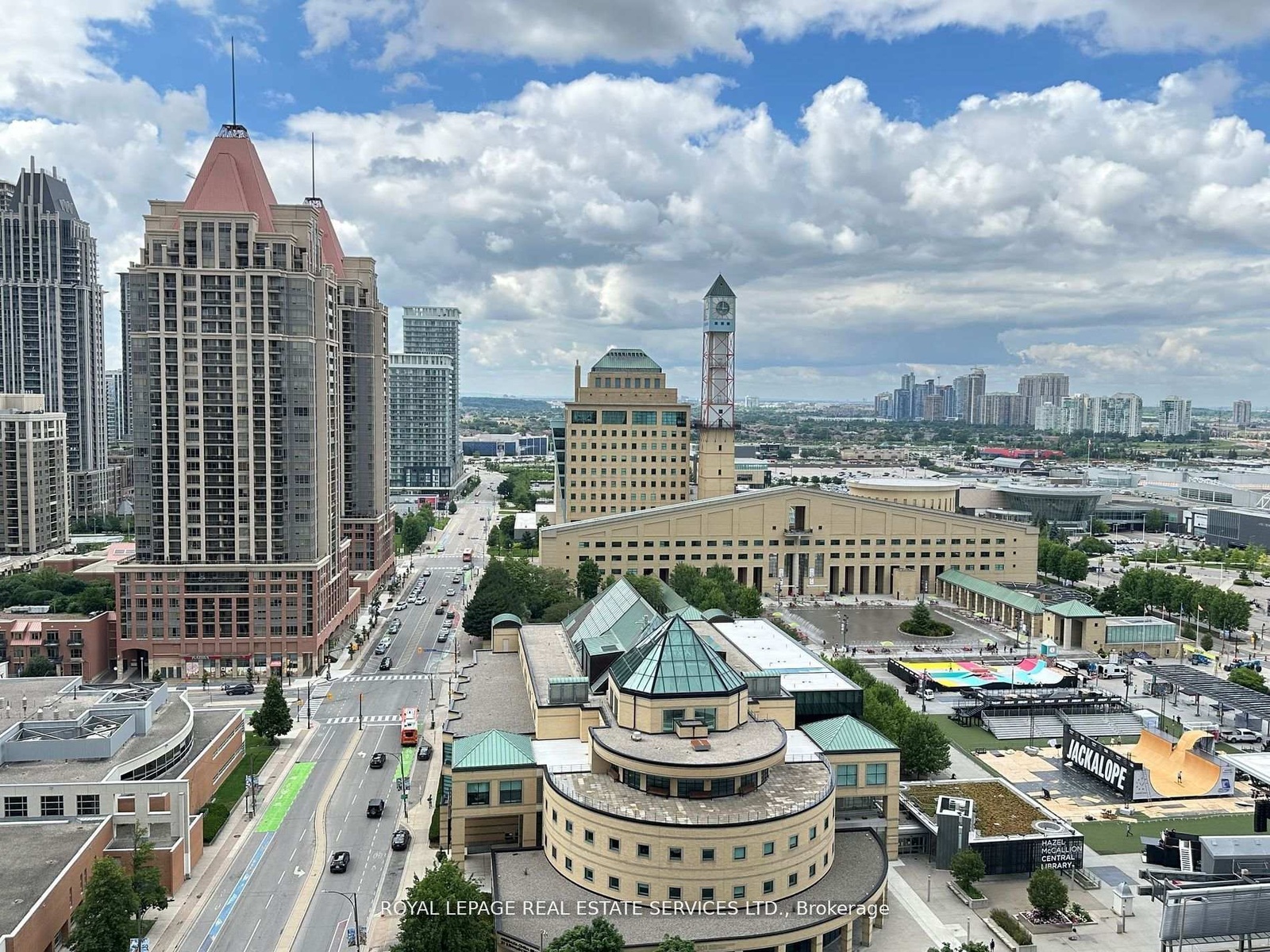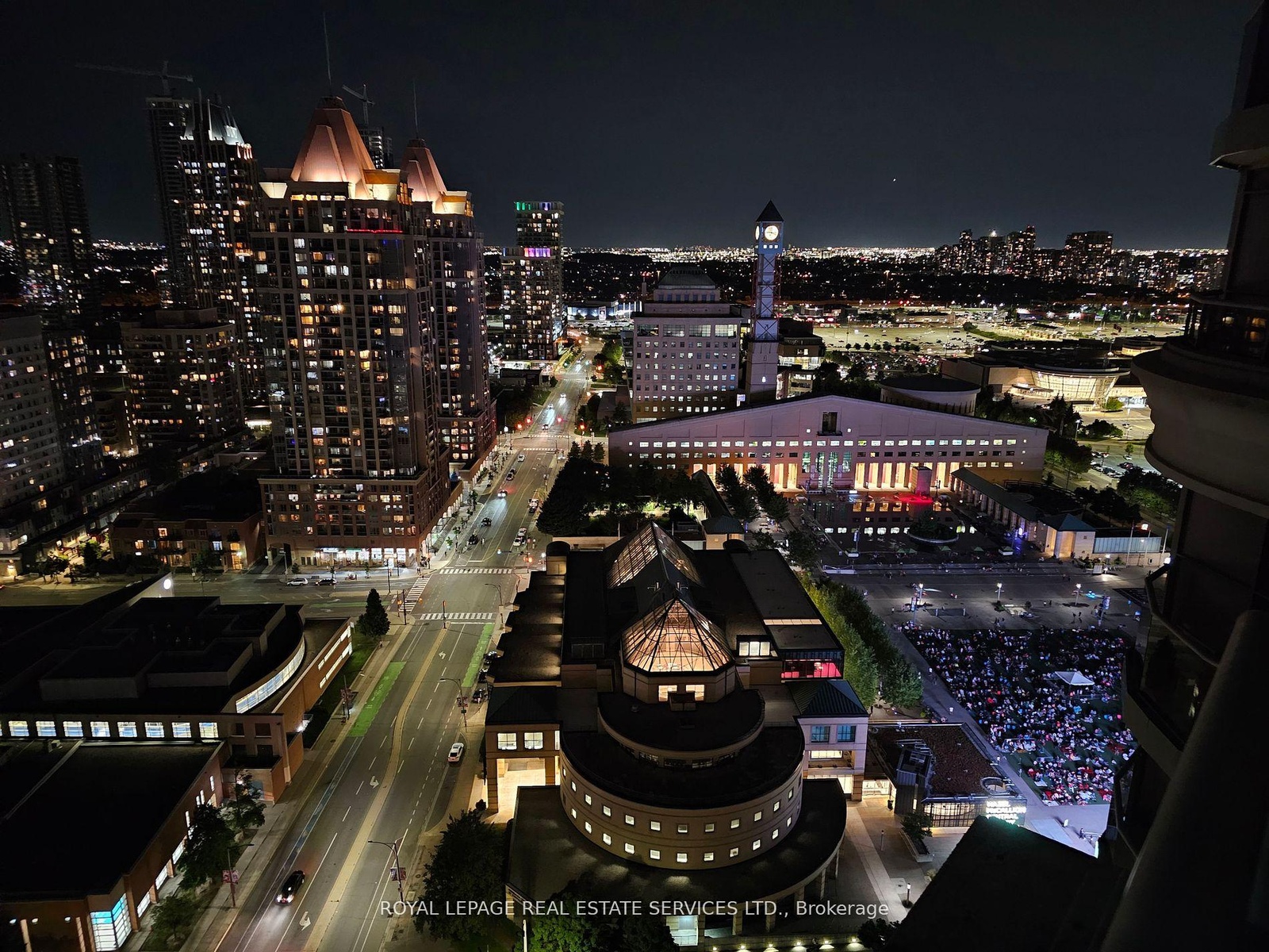 Live in the Heart of Mississauga at the Prestigious Tridel Grand Ovation! An absolute gem offering 2 spacious bedrooms, 2 full baths, plus a versatile den that can easily serve as a third bedroom or home office. Featuring a bright, open-concept layout, large bay windows, and breathtaking south, west, and north views overlooking City Centre and Celebration Square enjoy watching fireworks and live concerts right from your private balcony! The primary suite boasts a walk-in closet and luxurious ensuite bath, while the entire unit offers carpet-free living for a sleek, modern feel. Located in the most vibrant and convenient part of Mississauga, you're just steps from Square One Mall, Sheridan College, the YMCA, Living Arts Centre, restaurants, theatres, the transit hub, grocery stores, ice skating, and the Central Library. Plus, enjoy future connectivity with the upcoming Light Rail Transit (LRT) right at your doorstep! Tridel Grand Ovation combines luxury, location, and lifestyle a rare opportunity to live, work, and play in the center of it all.