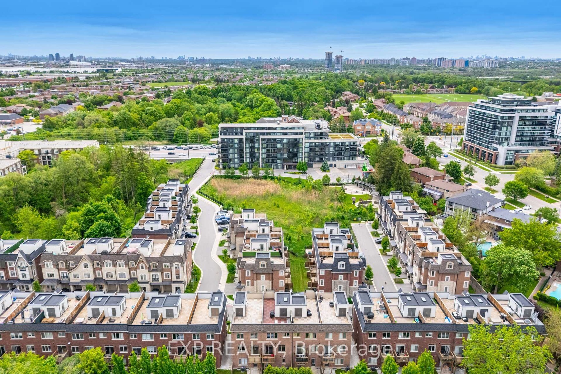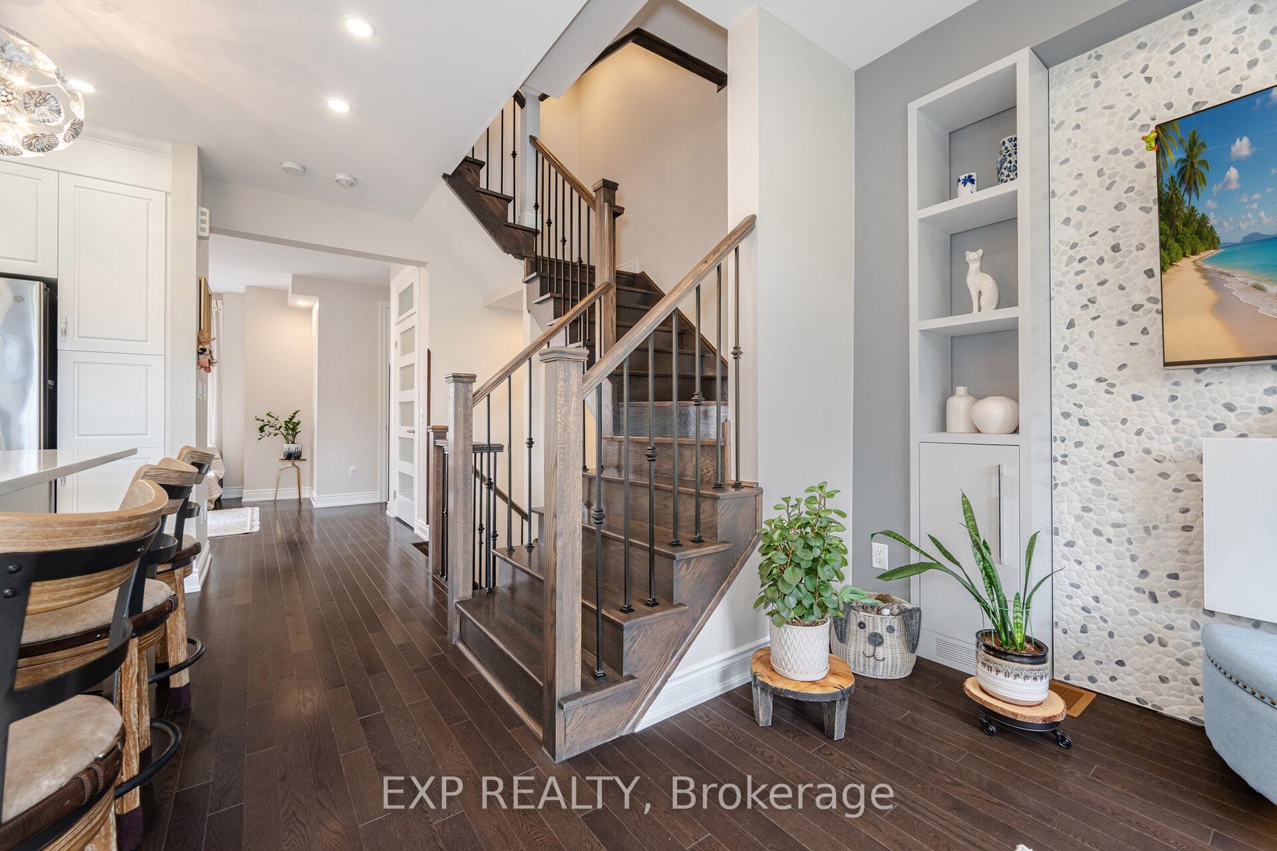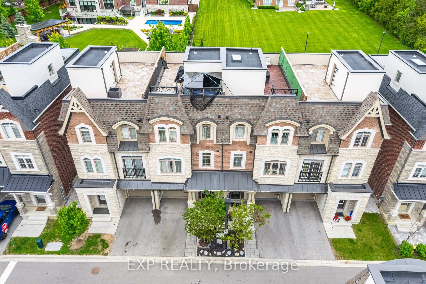 Welcome to 54 Ingleside Street in Vaughan. Gorgeous Freehold 3-storey brick townhome with finished basement and a rooftop terrace. Renovated and upgraded throughout. Key feature: an elevator for ease of access between all levels. The property is flooded with natural light. All windows feature quartz window sills. Stunning interior with custom accent walls, upgraded Pot lights and Gleaming hardwood floors. The spacious kitchen boasts stainless steel appliances, Silestone countertop, a centre island and extended kitchen cabinets. Stylish primary bedroom with a sliding barn door, 4-piece en-suite, and walk-in closet. The main floor bedroom has private access to the backyard. All bedrooms have their own ensuite. Enjoy the approx 500 sq ft rooftop terrace for relaxing or entertaining. Gas outlets on the balcony and rooftop terrace. Custom shelving and cabinetry throughout. Upgraded Custom Main Entrance Door with Modern Wrought Iron Glass. Well-maintained property with a pride of ownership. Centrally located near many restaurants, shopping, HWY 7/407, parks and trails. $260 Maintenance fee.