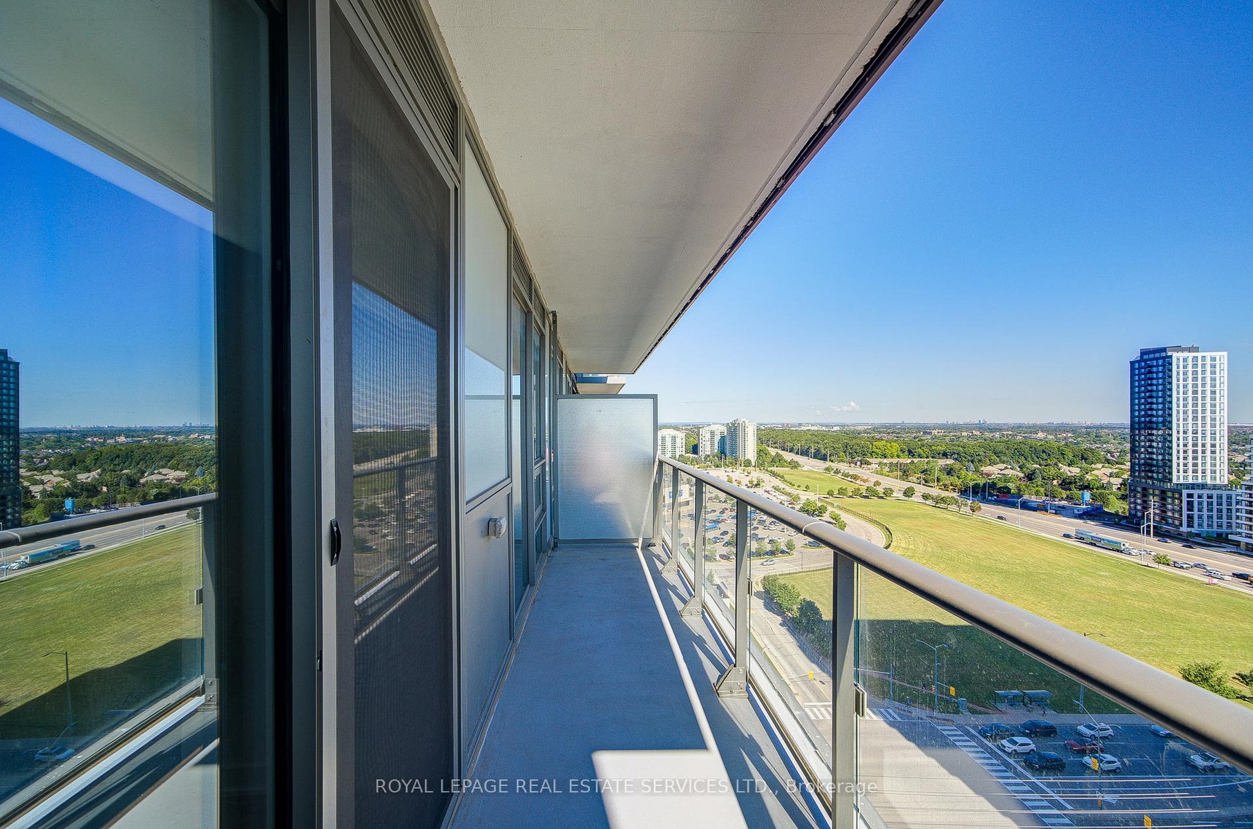 An immaculate 3-year new condo unit 2 Bedrooms + Den and 2 Full Baths in the vibrant heart of Central Erin Mills!! This quality-built unit offering a truly functional and efficient layout with a split bedrooms and washrooms plan for added privacy. It boasts floor-to-ceiling windows and 9 smooth ceilings throughout, filling the space with an abundance of natural light. The open-concept Living & Dining rooms provide a seamless flow and walk out to a large balcony, perfect for relaxing. The modern Kitchen is a highlight, featuring a Center Island and ample cabinetry, designed to elevate your living experience. The primary Bedroom includes a full ensuite bathroom, while the 2nd Bedroom is also generously sized. The versatile Den, large enough to be a bedroom, is ideal for guests or a home office. The unit is finished with 7 1/2" wide plank laminate flooring & porcelain bathroom floor tiles and wall tiles. Residents will enjoy an impressive building amenity, including: concierge, guest suite, games rm, gym, party room, rooftop outdoor pool, terrace, lounge, BBQ's, fitness club, yoga studio, study lounge, pet wash + more! This location truly is a walker's paradise, just steps from Erin Mills Town Centre, offering endless shops and dining options. The community is rich in arts and culture, with a diverse range of theatres, galleries, music venues, festivals, events, and local farmers markets. Walking distance to top-ranked John Fraser School District and St. Aloysius Gonzaga High School, a community center, Credit Valley Hospital, and various medical facilities. Close to U of T Mississauga, the Go Bus Terminal, and Highways 403 and 407. This unit offers the perfect blend of Convenience and Comfort in a lovely and safe neighborhood!!