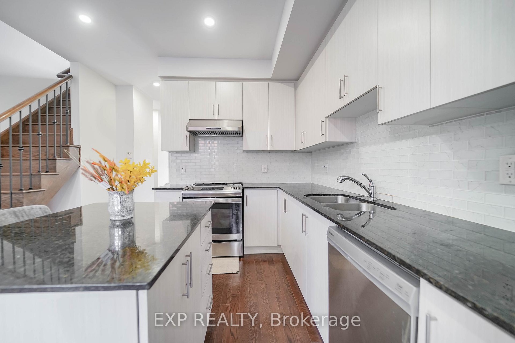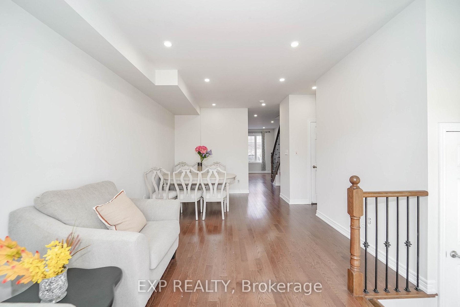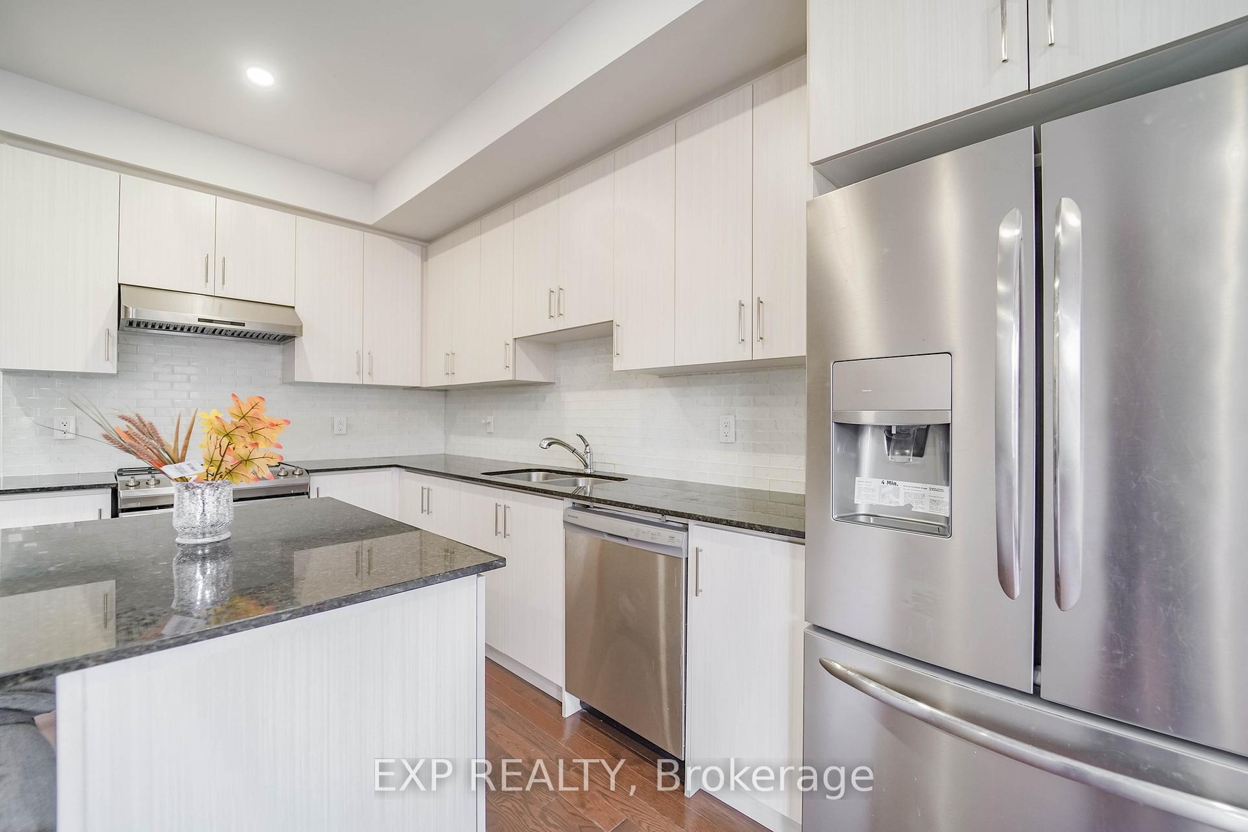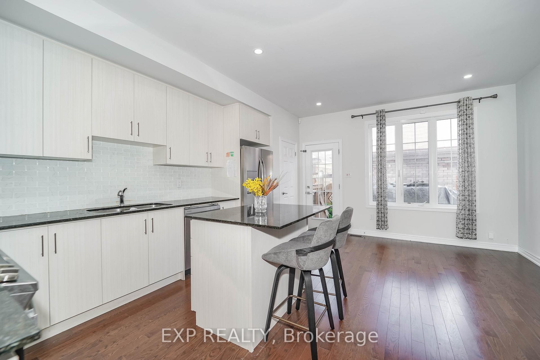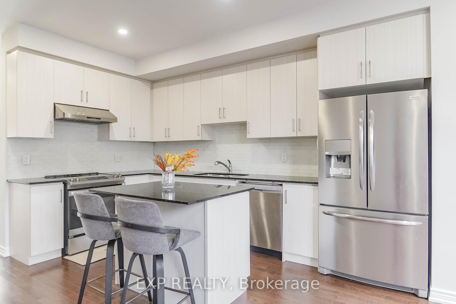 This beautifully townhouse is perfectly situated in a quiet, high-demand neighborhood. Featuring 3 bedrooms and 4.5 bathrooms, this home offers a bright, functional layout ideal for modern family living. The main floor boasts soaring 9-foot ceilings, hardwood flooring, pot lights throughout, and an open-concept kitchen with a striking quartz countertop, center island with LED accent lighting and gas stove designed for both style and functionality. a stained oak staircase leads to the second level, where you will find a warm and inviting family room, a convenient laundry room with a built-in laundry chute, and a spacious primary suite. The third floor offers two additional bedrooms, each with its own private ensuite bathroom and walk-in closet, perfect for family members or guests. The basement also features 9-foot ceilings and large windows, offering a spacious , unfinished space ready for your personal touch. Conveniently located near community centers, top-ranked schools, and Hwy 407. A rare opportunity to own a thoughtfully designed home in one of the areas most desirable communities. Freehold and no potl