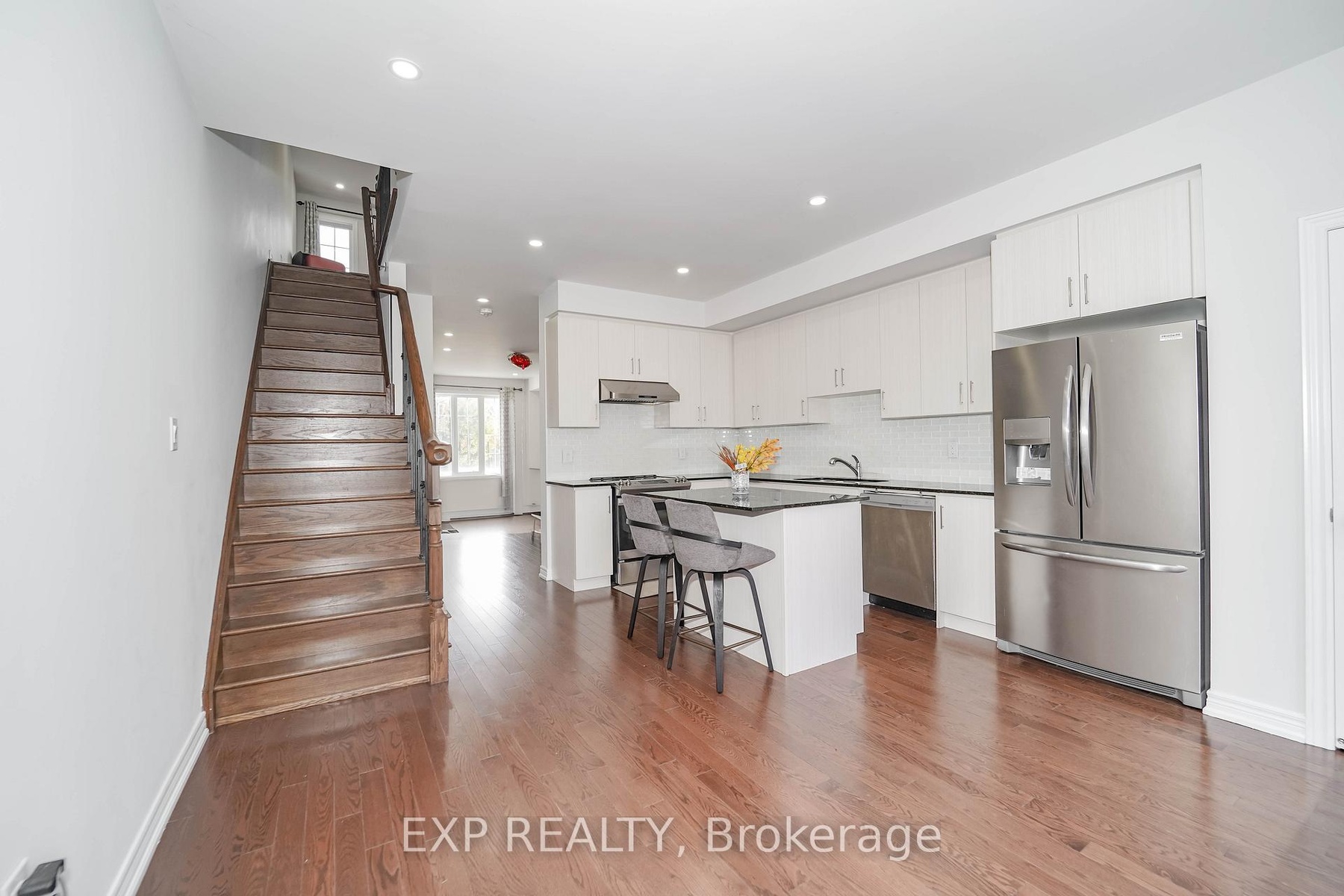 DescriptionThis beautifully townhouse is perfectly situated in a quiet, high-demand neighborhood. Featuring 3 bedrooms and 4.5 bathrooms, this home offers a bright, functional layout ideal for modern family living. The main floor boasts soaring 9-foot ceilings, hardwood flooring, pot lights throughout, and an open-concept kitchen with a striking quartz countertop, center island with LED accent lighting and gas stove designed for both style and functionality. a stained oak staircase leads to the second level, where you will find a warm and inviting family room, a convenient laundry room with a built-in laundry chute, and a spacious primary suite. The third floor offers two additional bedrooms, each with its own private ensuite bathroom and walk-in closet, perfect for family members or guests. The basement also features 9-foot ceilings and large windows, offering a spacious , unfinished space ready for your personal touch. Conveniently located near community centers, top-ranked schools, and Hwy 407. A rare opportunity to own a thoughtfully designed home in one of the areas most desirable communities. Freehold and no potl