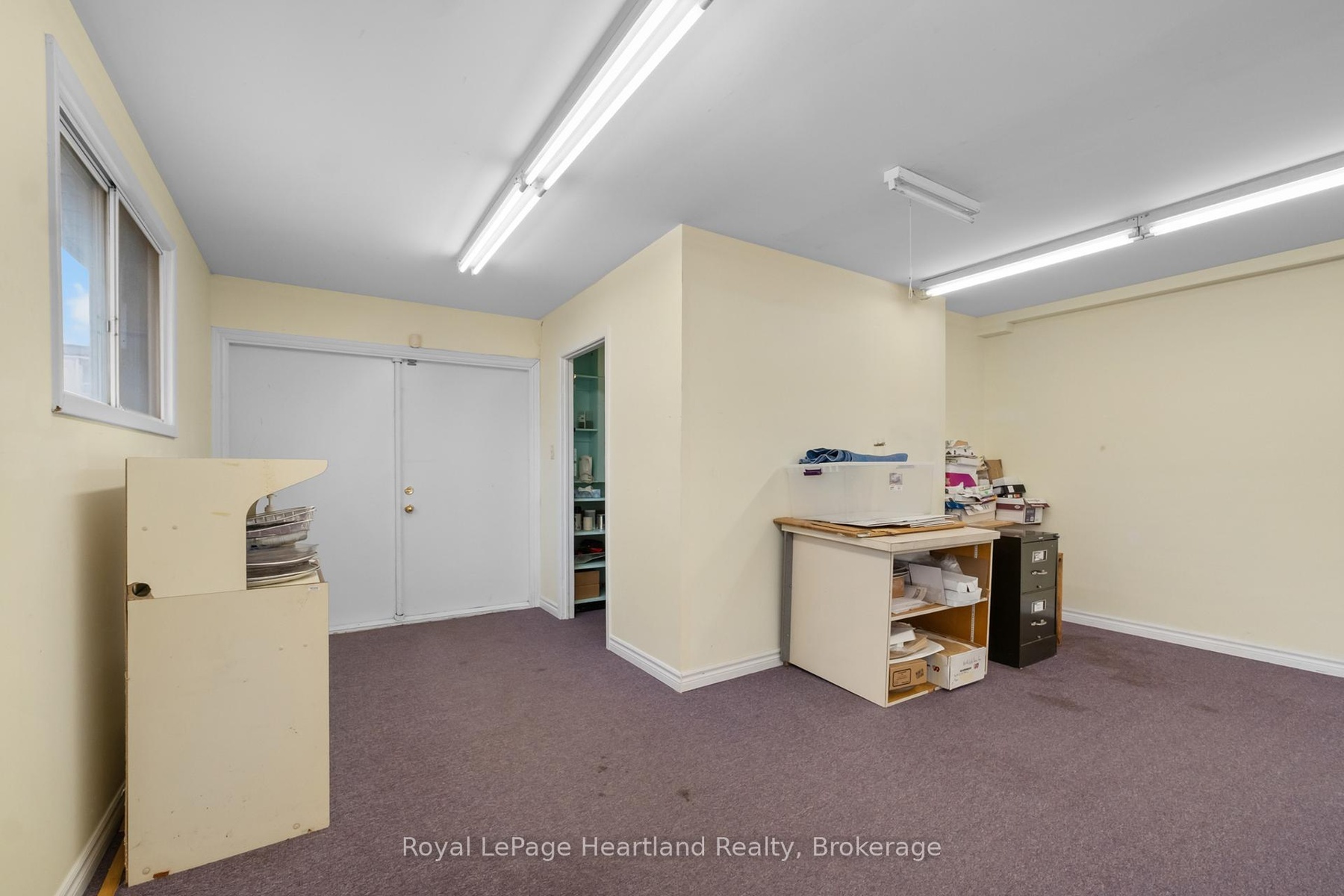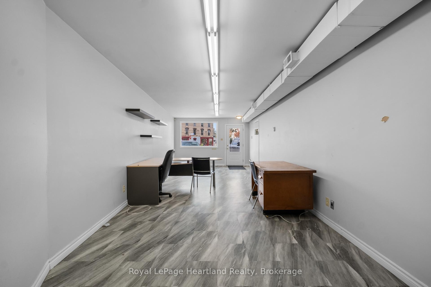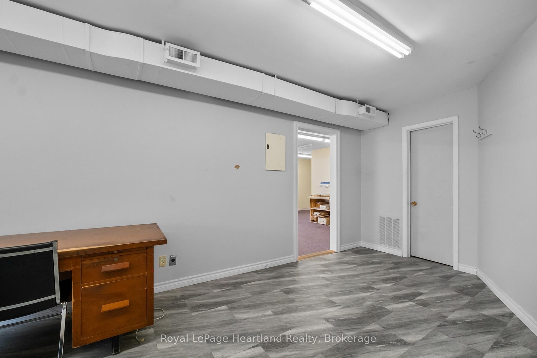 NEW BUSINESS POTENTIAL! This is your chance to own a versatile, bright commercial space in the heart of Goderich, this property is more than just space it's an opportunity to become part of Goderich's thriving downtown revival with new infrastructure, housing developments, and the town's 200th anniversary celebrations on the horizon in 2027. This location ensures steady foot traffic and a strong presence in Goderich's commercial core. Rarely does a property with this flexibility and prime location become available. Step into the bright 1,200 sq ft. that is arranged into two flexible spaces (East side approx. 850 sq ft and West side approx 350 sq ft), each with its own unique footprint enabling two businesses to come together under one roof (2 hydro meters), and enhanced by three distinct entrances/exits for flow and visibility (incl a double shipping/receiving door on grade). Zoned C5 (Mixed Use Core Area Commercial), the space is ideal for numerous business ventures: retail storefronts, professional offices, tech space, health or wellness services for Goderich's aging demographic, creative studios, or even a shared/multi-unit setup. Whether you're an entrepreneur launching a new concept and could benefit from sublet income on the other side, or you're an investor seeking rental income, the flexible layout offers configurations to suit your vision. Flat roof membrane replacement in 2011. West side has shallow crawl space, while the east side is slab on grade. Don't miss out on this rare opportunity to secure a prime downtown location with great visibility and potential. Reach out to see the space in person!