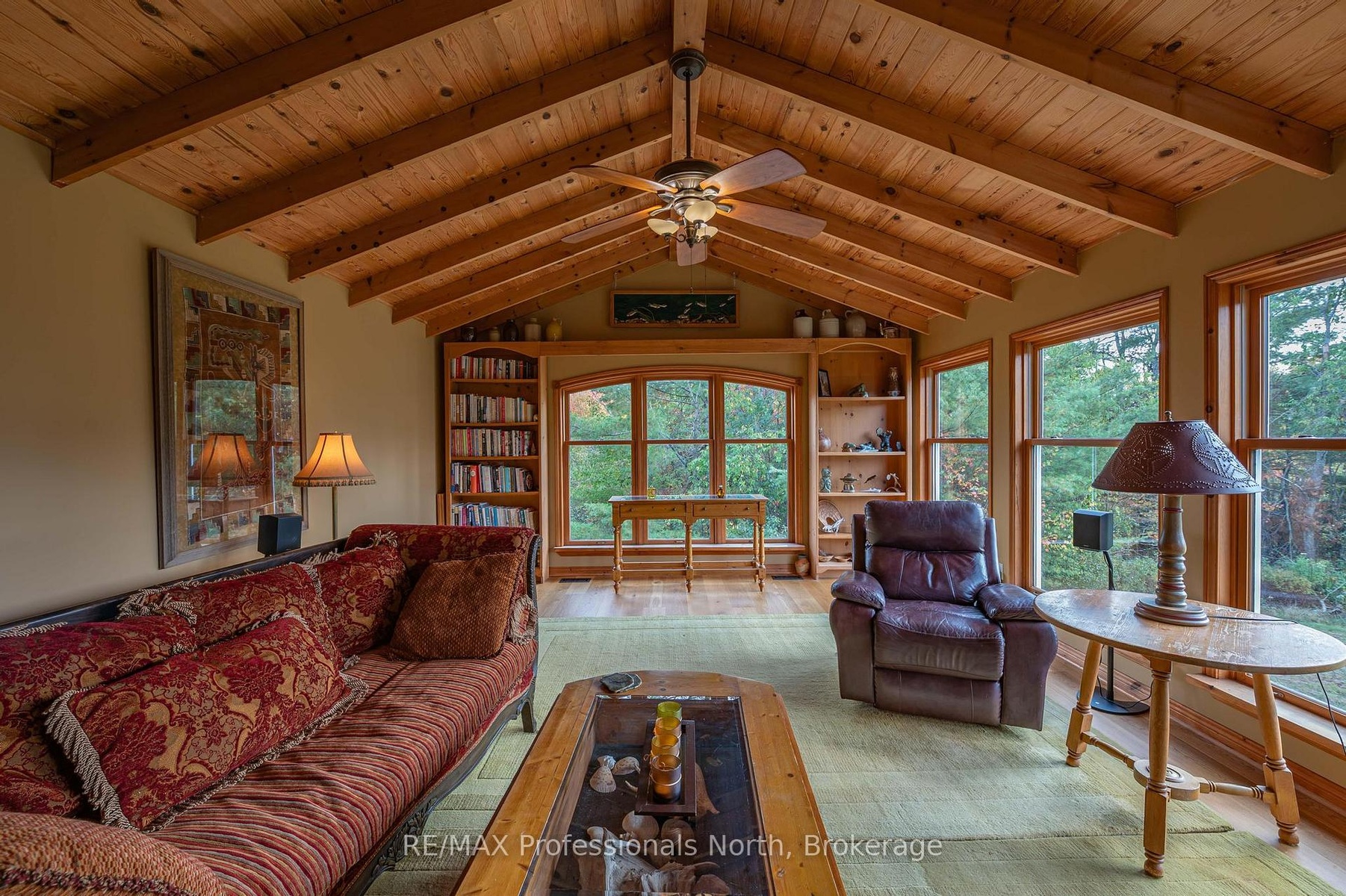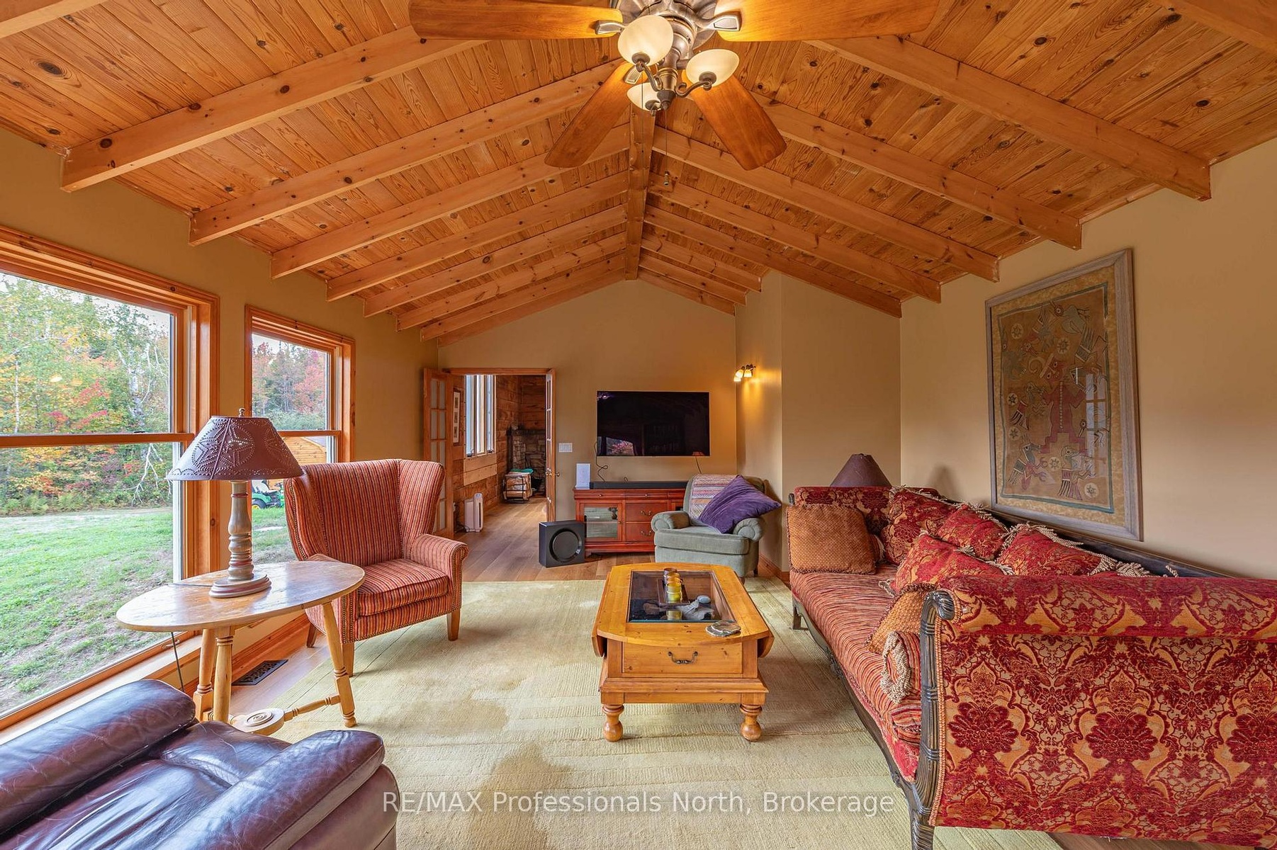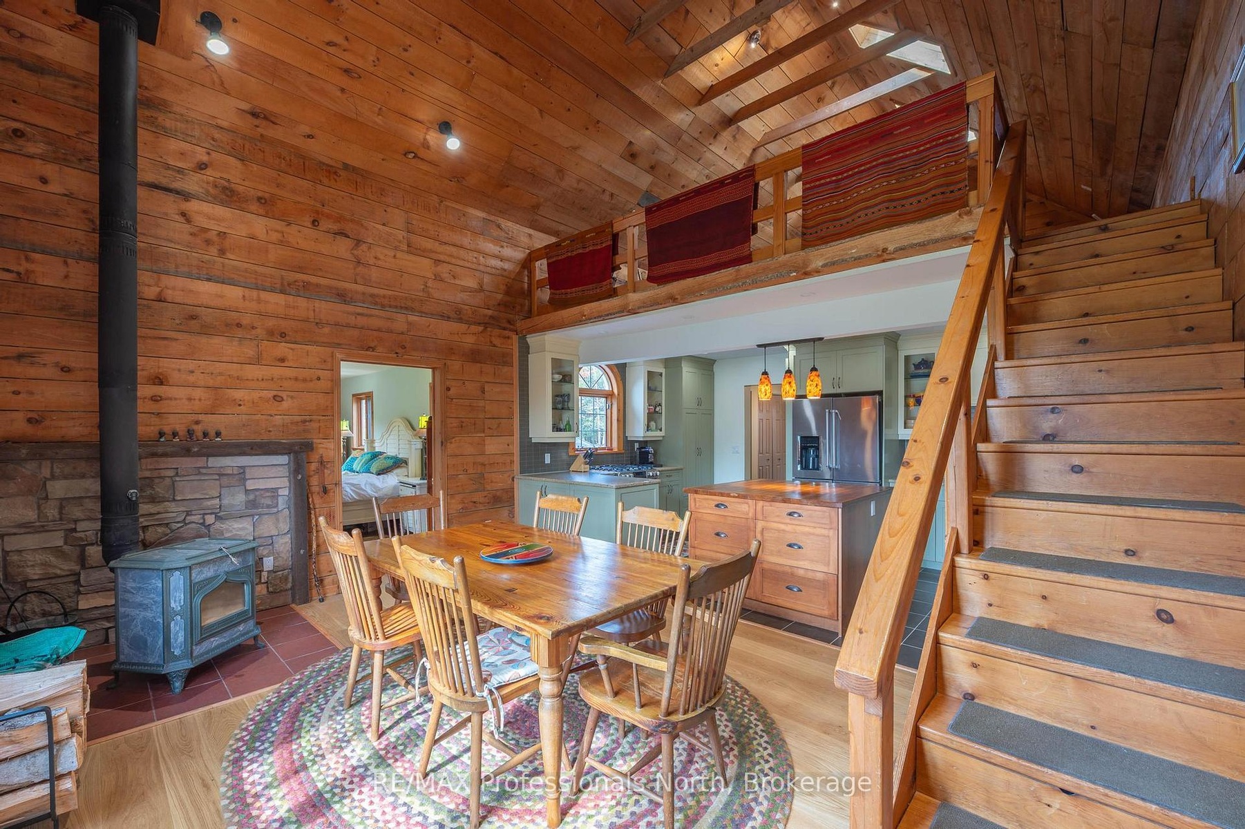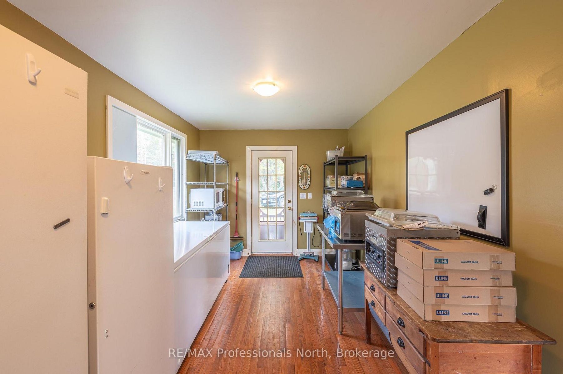 Welcome to your private oasis nestled on 100 acres of serene countryside, only a short drive from Minden. A standout feature of this property is the separate building housing a public health approved commercial kitchen equipped with high quality, commercial grade appliances. This space is ideal for launching or expanding a culinary business such as was operated by the current owner. The kitchen has been the heart of a thriving business and is ready for its next chapter, whether you are a caterer, baker, food processor, or aspiring chef. The space offers flexibility and potential for a wide range of food related ventures or can be adapted for other home based business uses. The updated 2 bedroom home with a versatile loft and 1 full bathroom offers the perfect blend of rustic charm and modern comfort. Not to mention that the living and bedroom areas are very spacious. Step inside to find engineered hardwood floors, an updated well pump, pressure tank, and heat line, plus a new patio door and select windows to brighten your space. Stay cool in the summer with the newer air conditioner and enjoy peace of mind year round with a Generac generator that powers both the home and the detached garage, including the commercial kitchen. Additional updates include new roofing on the smaller end addition (2024) and aluminum added at deck ends to prevent wood rot. This home has been well cared for and thoughtfully upgraded for lasting comfort. Beside this property is 100 acres of Crown land. There is an abundance of wildlife at your doorstep as well as snowmobile and ATV trails. An acre of the property has also been fenced in to allow for your four legged friends. Turnkey and ready to go, this home and facility is a rare opportunity for anyone looking to combine country living with entrepreneurial ambition. Whether you're seeking a peaceful homestead, a weekend retreat or a business friendly rural property, this unique offering has it all.
