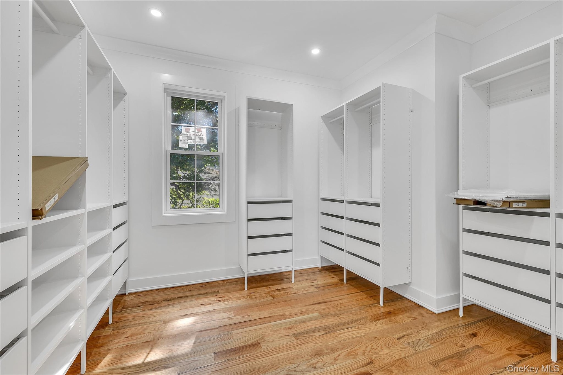 - Spare room with light wood-type flooring, recessed lighting, and crown molding