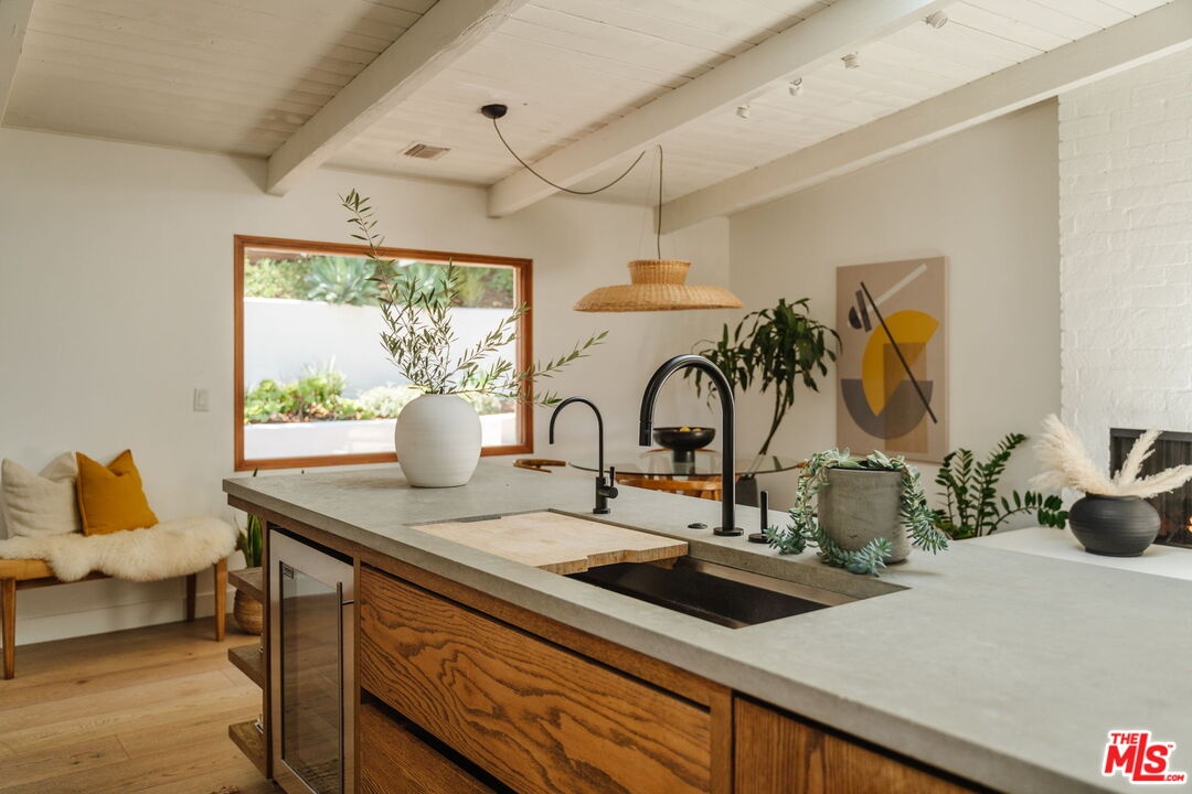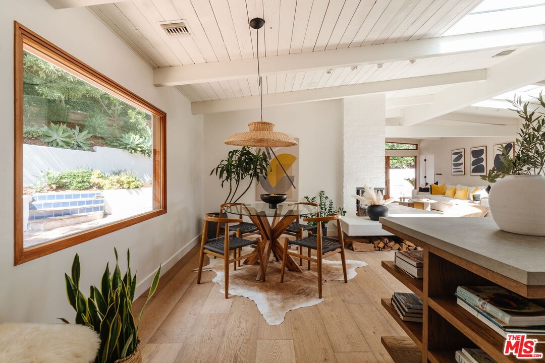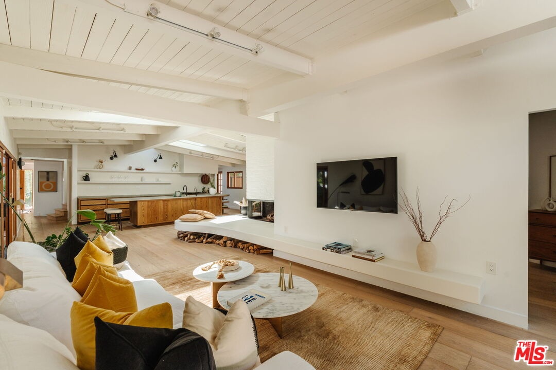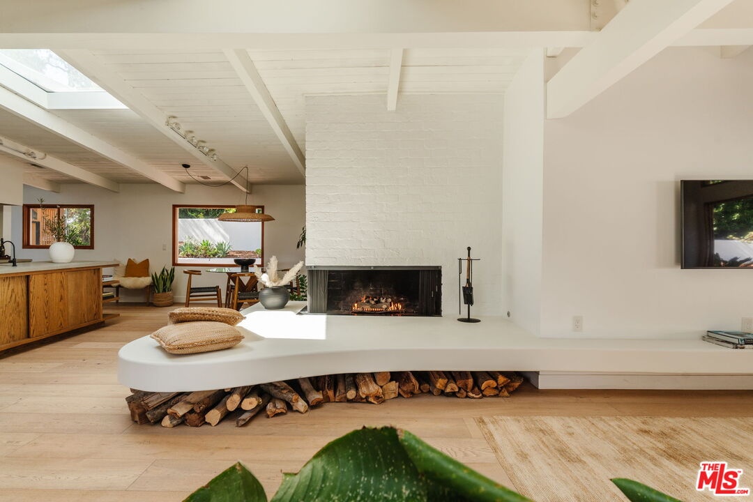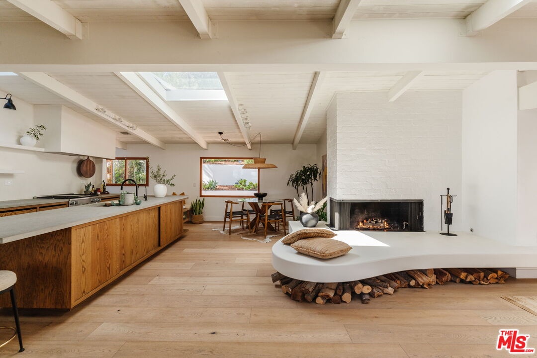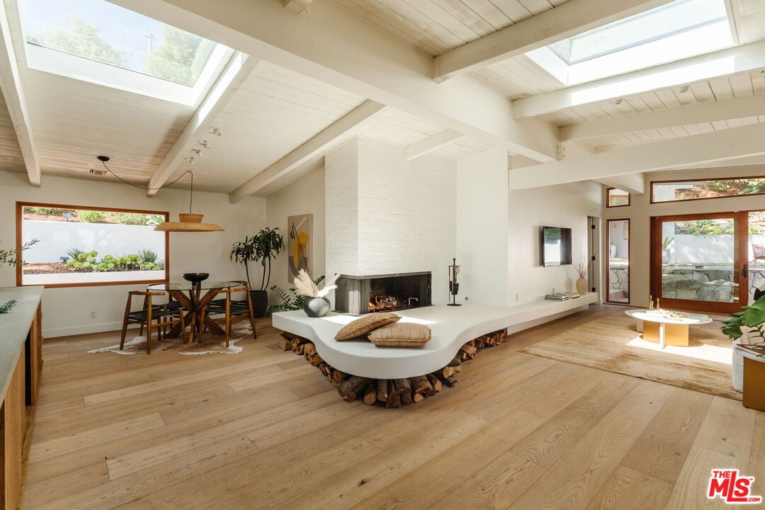 Tucked away on a peaceful tear-drop street in the Hollywood Hills, 2145 Sunset Crest isn't just a home, it's a retreat. From the moment you arrive, the world feels quieter here, more private, as though the city has slipped just far enough away to give you space to breathe. Step inside, and sunlight floods the open floor plan, pouring through skylights and expansive glass doors that blur the line between indoors and out. The textures immediately draw you in, Roman clay walls that radiate warmth, French white oak floors that ground the space, and exposed beams that whisper of timeless mid-century design. At the heart of it all, a striking peninsula fireplace anchors the living room, inviting late-night conversations and slow mornings with coffee. The chef's kitchen is where stories are shared and meals come to life, an oversized limestone island ready for friends to gather around, premium appliances that make cooking effortless, and a hidden walk-in pantry to keep it all beautifully uncluttered. Slide open the glass doors, and suddenly you're dining al fresco on the side patio, framed by views of the mountains glowing in the evening light. Out back, your private oasis awaits. A sparkling pool reflects the sky above, a cedar hot tub promises to melt the day away, and a wood-fired pizza oven turns every night into a gathering. It's the kind of backyard that begs for celebrations yet feels like your own private sanctuary.When the day is done, retreat upstairs to the primary suite, where a fireplace sets a romantic tone and a spa-like bathroom pampers with dual sinks, a freestanding soaking tub, and a glass-enclosed shower. Each of the additional bedrooms and bonus spaces, whether an office, pool house, or guest retreat, offers a quiet corner to recharge or create.And while it feels worlds away, you're still moments from it all: the energy of the Sunset Strip, the trails of Fryman & Runyon Canyons, the charm of Studio City, and the scene in West Hollywood. Even Wonderland Elementary, one of LA's most beloved schools, is just around the corner.2145 Sunset Crest isn't just a house in the hills, it's where life slows down, where design inspires, and where every day feels like a getaway.