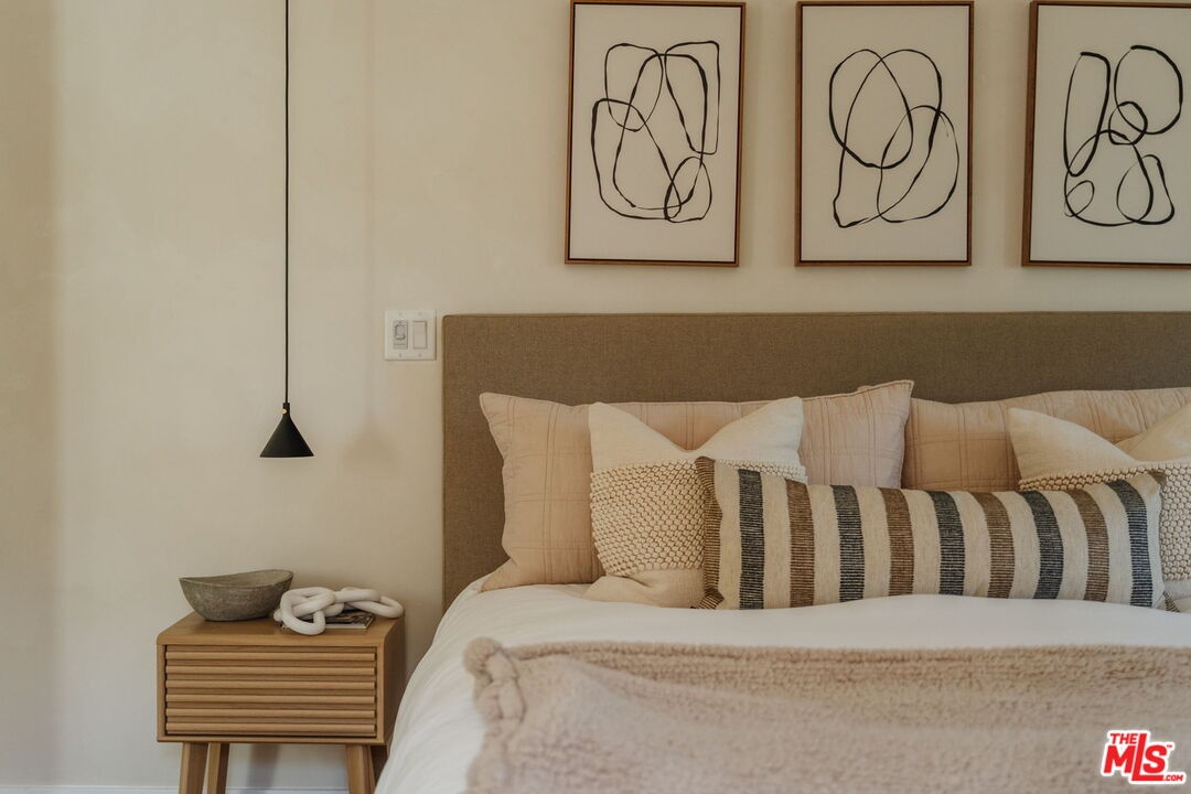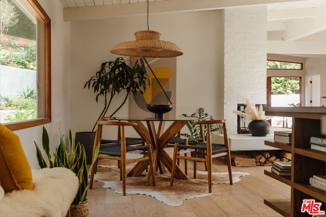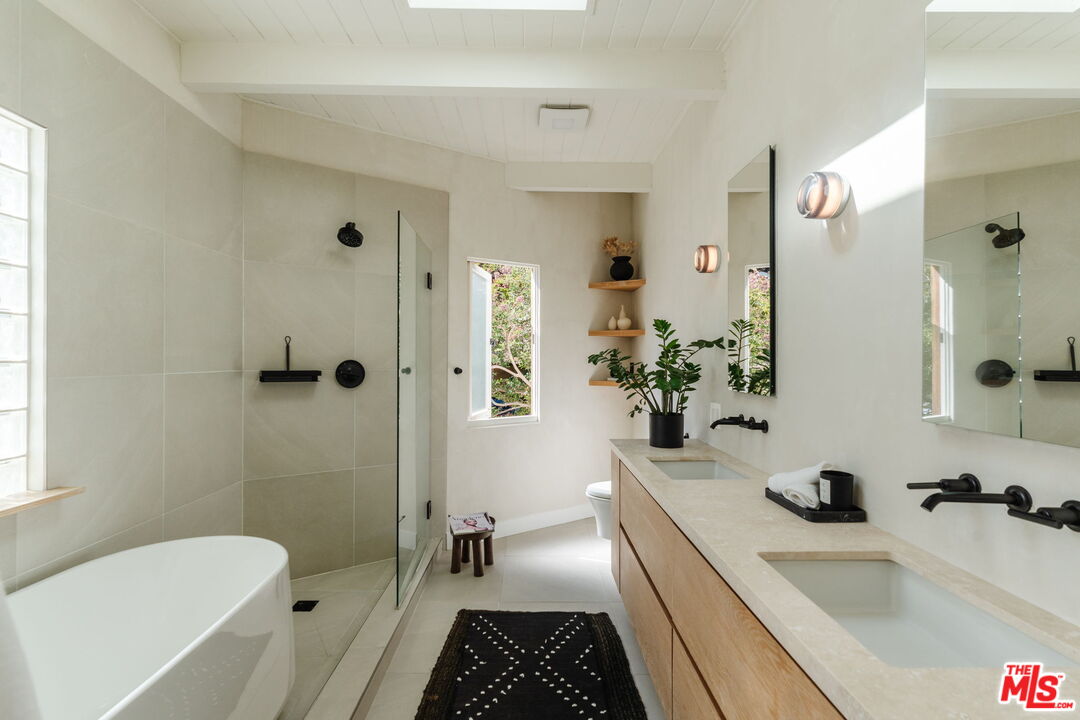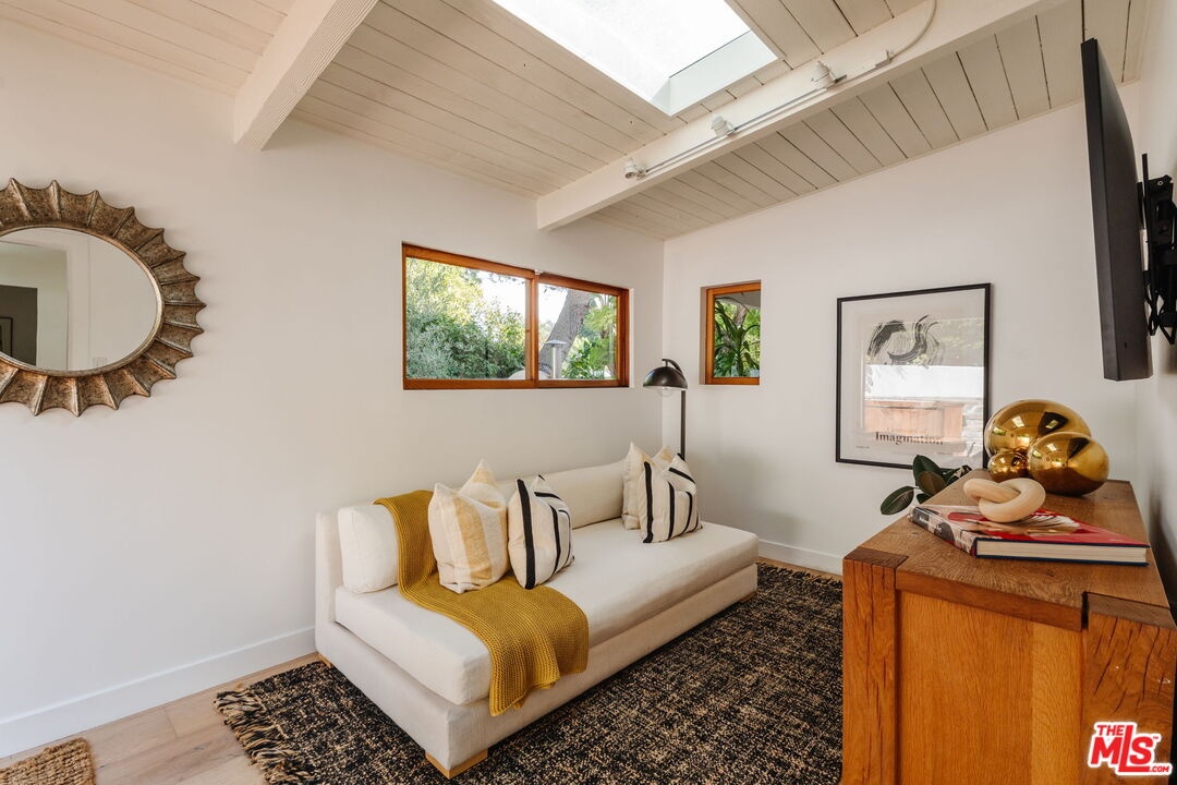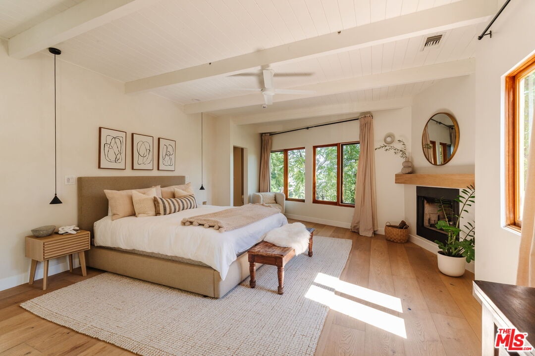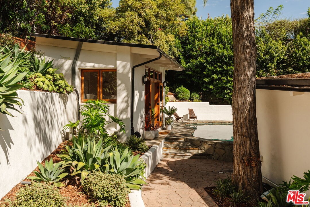 Tucked away on a peaceful tear-drop street in the Hollywood Hills, 2145 Sunset Crest isn't just a home, it's a retreat. From the moment you arrive, the world feels quieter here, more private, as though the city has slipped just far enough away to give you space to breathe. Step inside, and sunlight floods the open floor plan, pouring through skylights and expansive glass doors that blur the line between indoors and out. The textures immediately draw you in, Roman clay walls that radiate warmth, French white oak floors that ground the space, and exposed beams that whisper of timeless mid-century design. At the heart of it all, a striking peninsula fireplace anchors the living room, inviting late-night conversations and slow mornings with coffee. The chef's kitchen is where stories are shared and meals come to life, an oversized limestone island ready for friends to gather around, premium appliances that make cooking effortless, and a hidden walk-in pantry to keep it all beautifully uncluttered. Slide open the glass doors, and suddenly you're dining al fresco on the side patio, framed by views of the mountains glowing in the evening light. Out back, your private oasis awaits. A sparkling pool reflects the sky above, a cedar hot tub promises to melt the day away, and a wood-fired pizza oven turns every night into a gathering. It's the kind of backyard that begs for celebrations yet feels like your own private sanctuary.When the day is done, retreat upstairs to the primary suite, where a fireplace sets a romantic tone and a spa-like bathroom pampers with dual sinks, a freestanding soaking tub, and a glass-enclosed shower. Each of the additional bedrooms and bonus spaces, whether an office, pool house, or guest retreat, offers a quiet corner to recharge or create.And while it feels worlds away, you're still moments from it all: the energy of the Sunset Strip, the trails of Fryman & Runyon Canyons, the charm of Studio City, and the scene in West Hollywood. Even Wonderland Elementary, one of LA's most beloved schools, is just around the corner.2145 Sunset Crest isn't just a house in the hills, it's where life slows down, where design inspires, and where every day feels like a getaway.