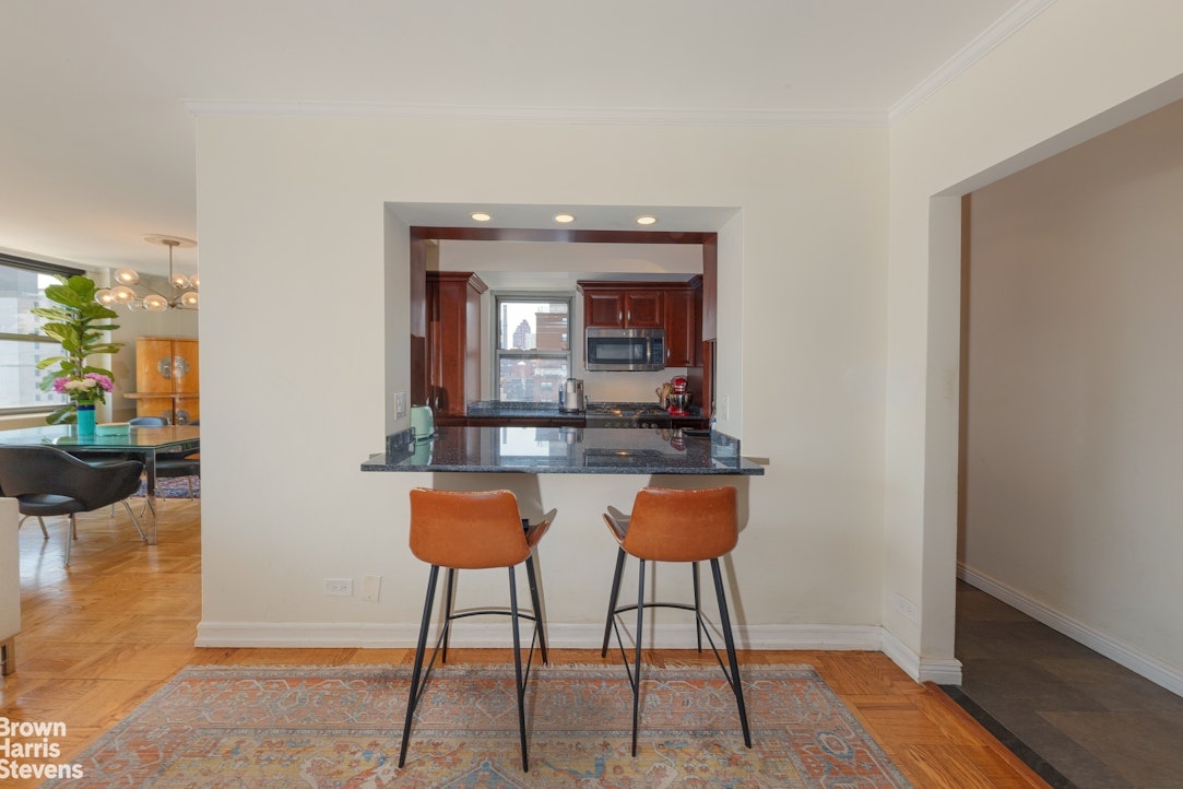 You will appreciate this exceptionally large Jr. 4 one bedroom, 1 1/2 half bath (approx. 1,200 sq ft) which easily converts to a 2 bedroom if needed. The light and panoramic views facing southeast from this high floor, corner apartment are truly spectacular. This apartment features totally renovated baths and windowed kitchen with granite counter tops, stainless-steel high-end appliances, oak cabinetry, and a breakfast bar. The bedroom is oversized with a wall of closets and an en suite bath. 500 E. 83rd St. is a beautiful full service and well-maintained co-op on the upper east side which offers a 24-hour doorman, a concierge, central a/c and heating, beautiful hardwood floors throughout, and a live-in resident manager. Other amenities include a full-service state-of-the-art health club, indoor swimming pool, pilates studio, sauna, locker room, yoga room, landscaped roof deck, attended indoor garage exclusively for residents, storage room, bicycle room, and laundry room. The building is conveniently located a block away from Carl Schurz Park, and the East River Promenade. This perfect location is surrounded by endless supermarkets, pharmacies, shopping, cafes, restaurants, bars, superb dining. Close to the Q Train on 83rd/2nd, 4, 5, 6 trains, and cross town buses. Pet friendly, pied-a'-terre, co-purchasing, gifting, and guarantors allowed. Non-smoking building.
