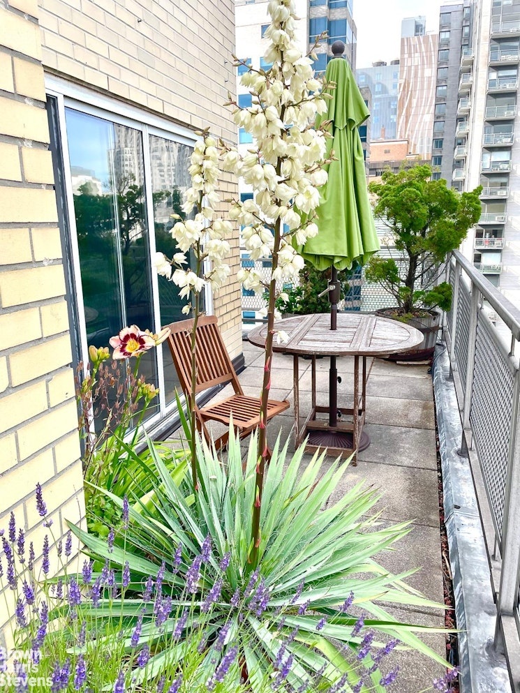 beautifully landscaped roof deck with attractive furniture. It is conveniently