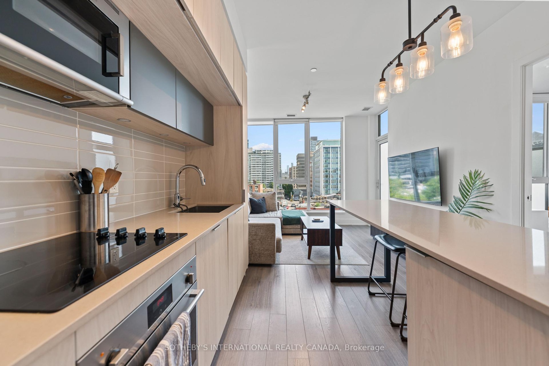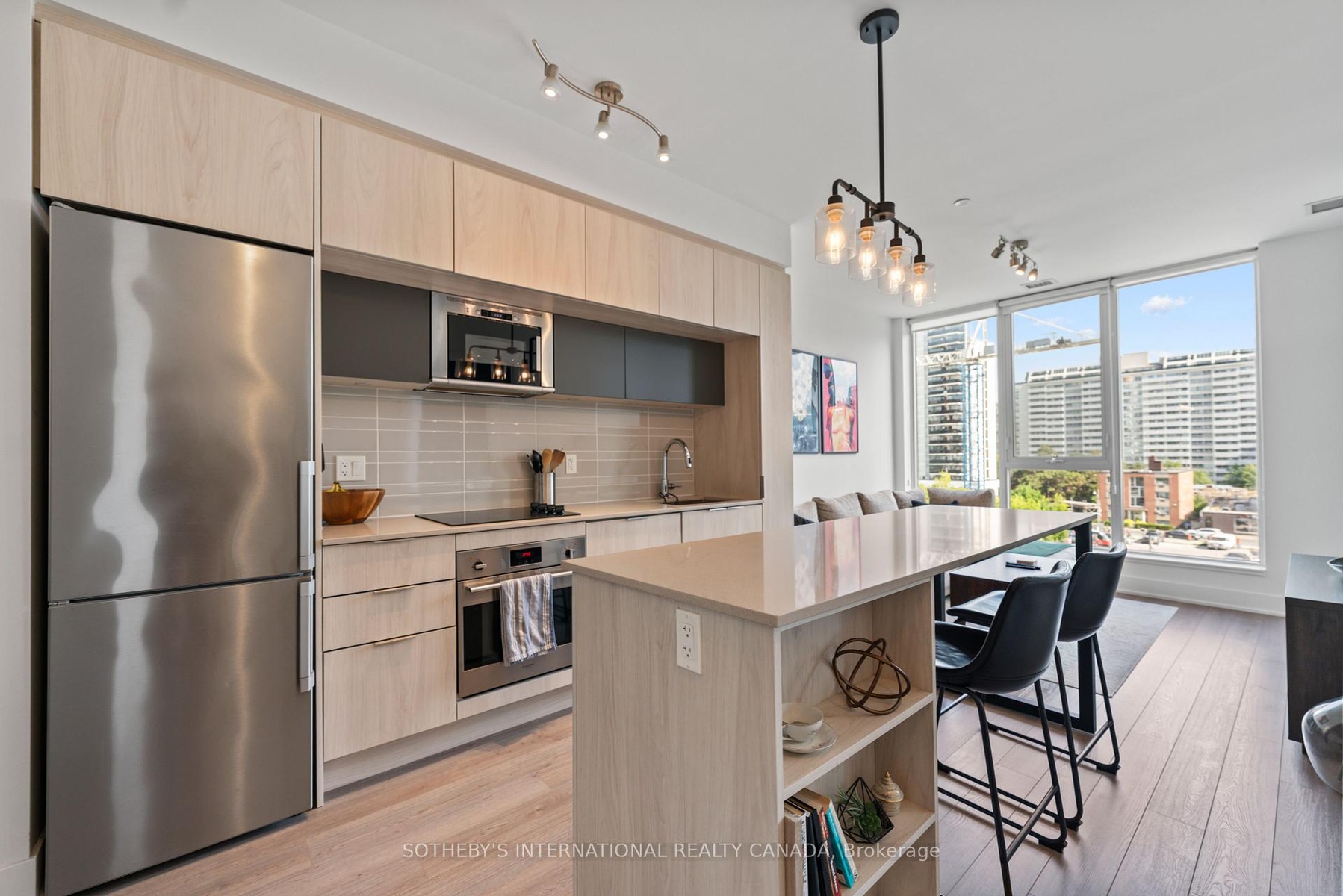 Welcome to urban living at its finest in this rarely offered boutique condo by Mattamy Homes in the heart of Davisville Village. This bright and beautifully designed suite features 1 bedroom plus a large den with 2 full bathrooms and approximately 620 sq ft of thoughtfully laid-out living space. Enjoy spectacular south-facing views through expansive windows that fill the unit with natural light. The modern kitchen is finished with upgraded quartz countertops, sleek cabinetry, and stainless steel appliances, seamlessly connecting to the open-concept living and dining area, perfect for relaxing or entertaining guests. The generously sized den offers flexible use as a home office, guest room, or additional lounge space, while both bathrooms feature contemporary spa-inspired fixtures for added comfort. Located in a low-rise, rarely offered Mattamy-built building, this condo includes an owned/private locker with potential to rent a parking space if desired. Just steps to Davisville TTC Subway, shops, restaurants, parks, schools, and with easy access to the DVP, this is midtown living at its most convenient. Don't miss your opportunity to call this stylish and functional Davisville gem your new home.