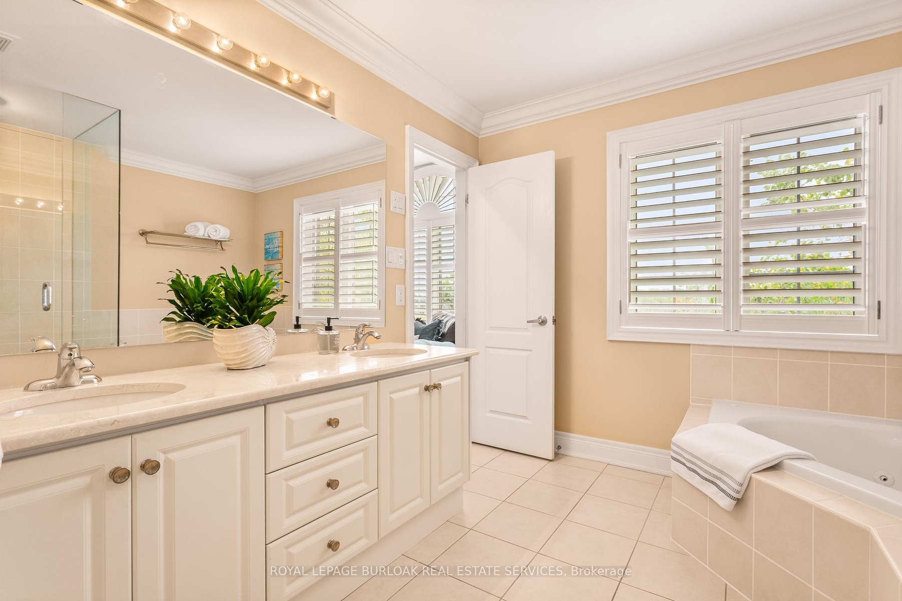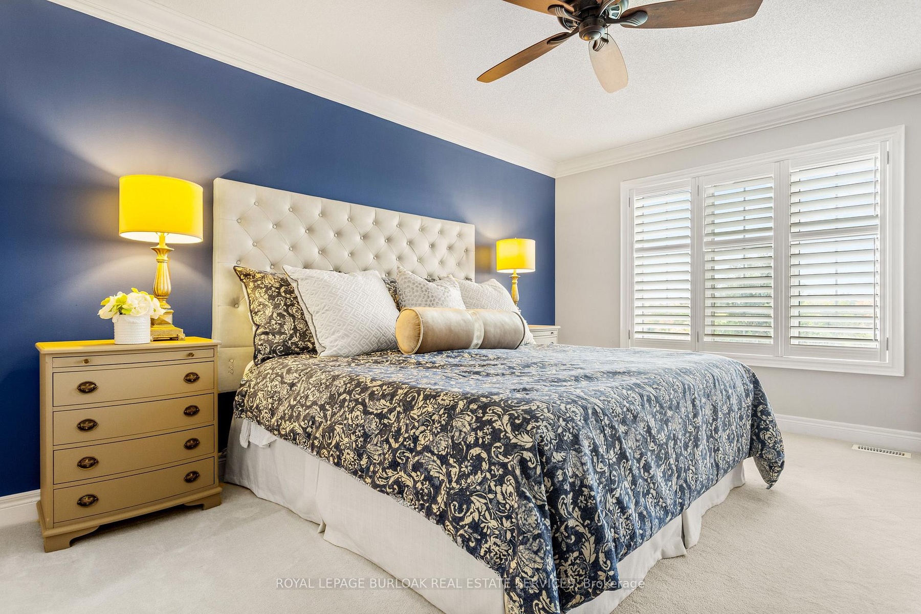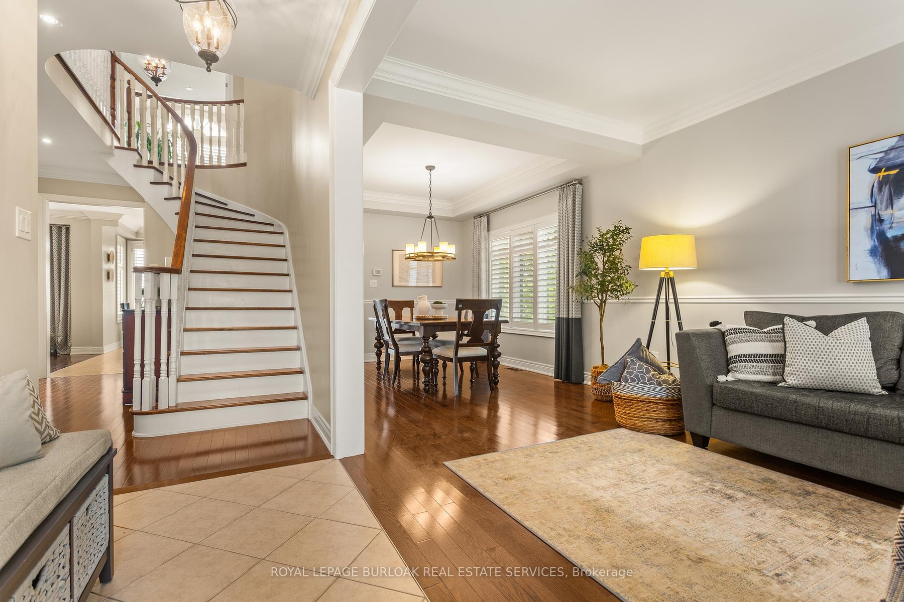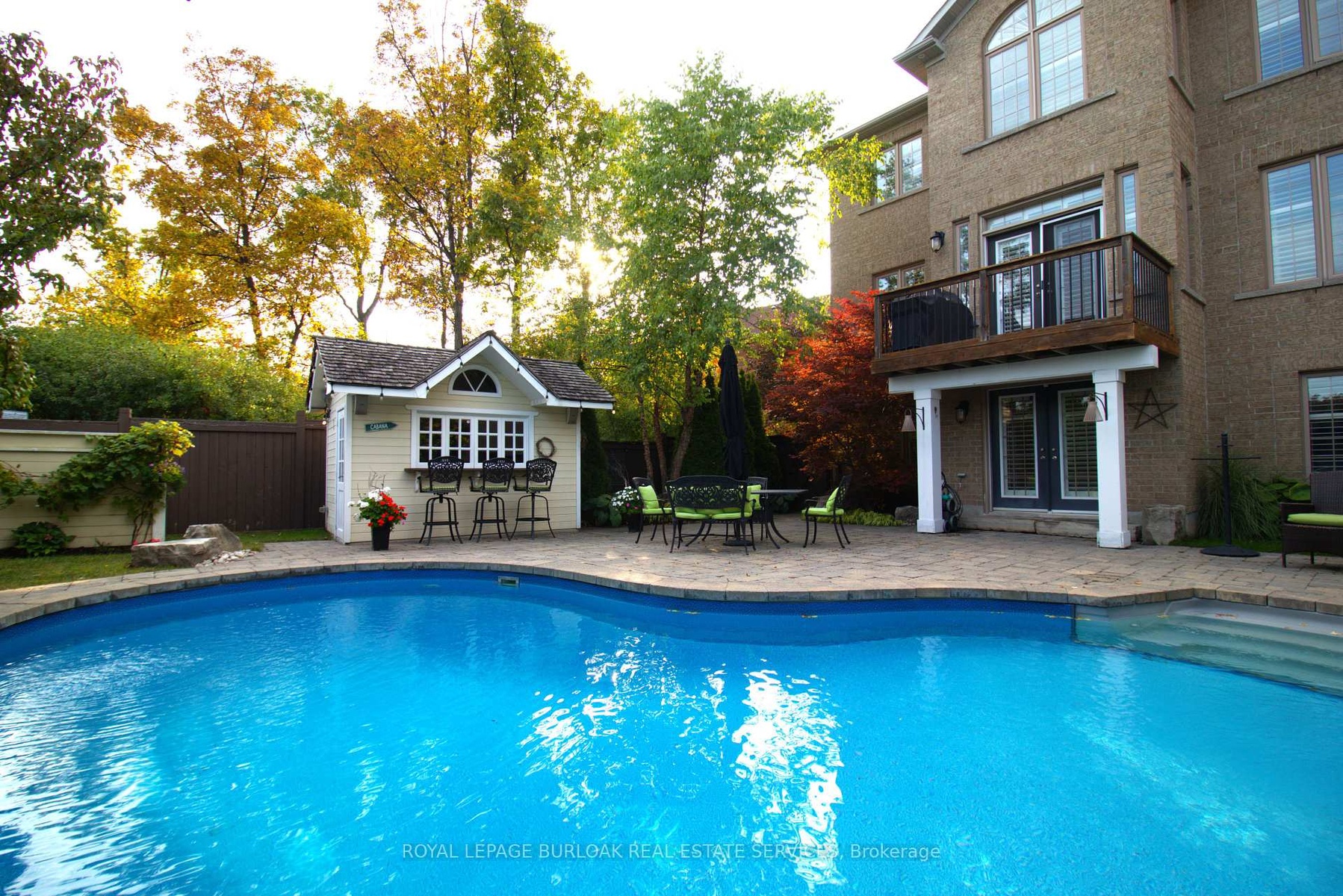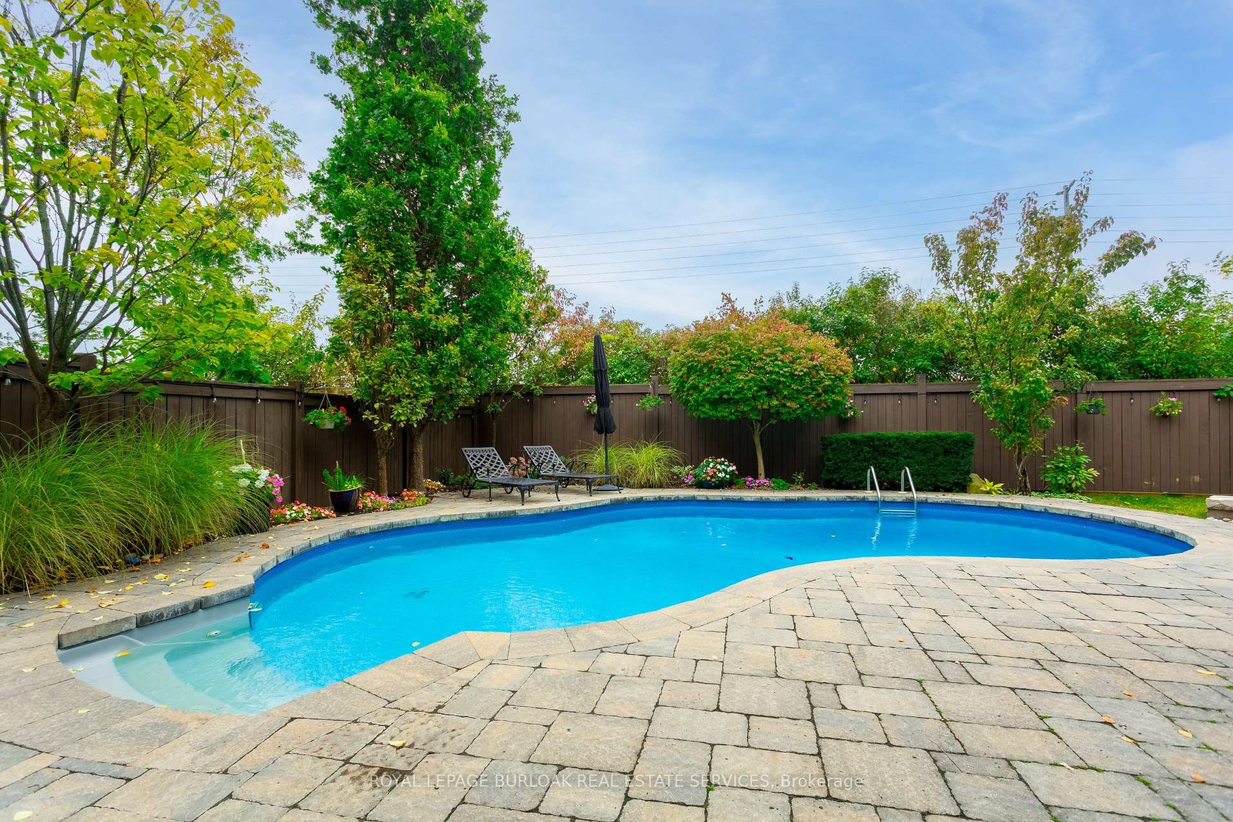 No need to choose between the perfect home and the perfect neighbourhood - this stunning Oakville gem offers both! Step onto the covered porch with custom stonework and an updated Garada garage door. Inside, gleaming hardwood floors lead to elegant living and dining rooms. The open-concept kitchen features granite counters, a large island, and a spacious breakfast area with double doors to a balcony overlooking the gorgeous backyard. The adjacent family room with gas fireplace keeps you connected while entertaining. Upstairs, you'll find 4 spacious bedrooms each with custom closet organizes, and the primary bedroom, includes a sitting area, walk-in closet and a large ensuite with jetted tub, glass shower and private lavatory. The bright walk-out basement includes a fifth bedroom, 3-piece bath, theatre area wired for sound, and ample storage. Outside, enjoy a heated saltwater pool, custom stone patio, and cabana with sound system and TV perfect for hosting. Backing onto green space with no rear or west neighbours, you'll love the privacy and sunshine. Located near trails, Bronte Creek Provincial Park, top-rated schools, and easy access to the 407/QEW. Too many updates to list here, are you convinced you need to see this home?