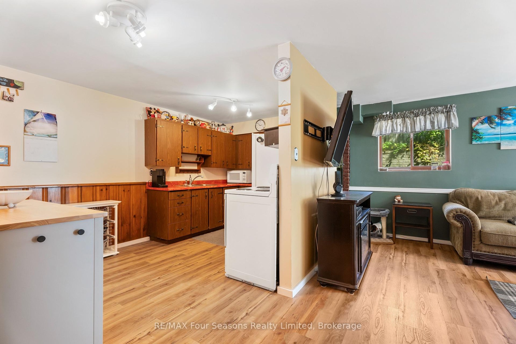 DescriptionWelcome to this beautifully updated bungalow nestled in the heart of Gravenhurst, just a short stroll from Gull Lake Park and the downtown core. This home seamlessly combines modern upgrades with the flexibility of multi-generational living or rental income potential in a quiet, family-friendly neighbourhood. The main level features 4 bedrooms and 1 bathroom, with a renovated custom kitchen & dining area (2022). Enjoy the bright and open layout with updated windows, pot lights, flooring, paint, electrical panel and more - mostly completed in the last 4 years. The fully finished walk-out basement offers incredible versatility with 2 additional bedrooms, 1 bathroom, a second kitchen, and a private entrance. Outside, you'll find a generous level lot with room to relax or entertain, all within walking distance to parks, schools, shops, and restaurants. Whether you're looking for a family home with room to grow or a possible investment property with income potential, this Gravenhurst gem is a must-see!Amenities- Accessory Apartment