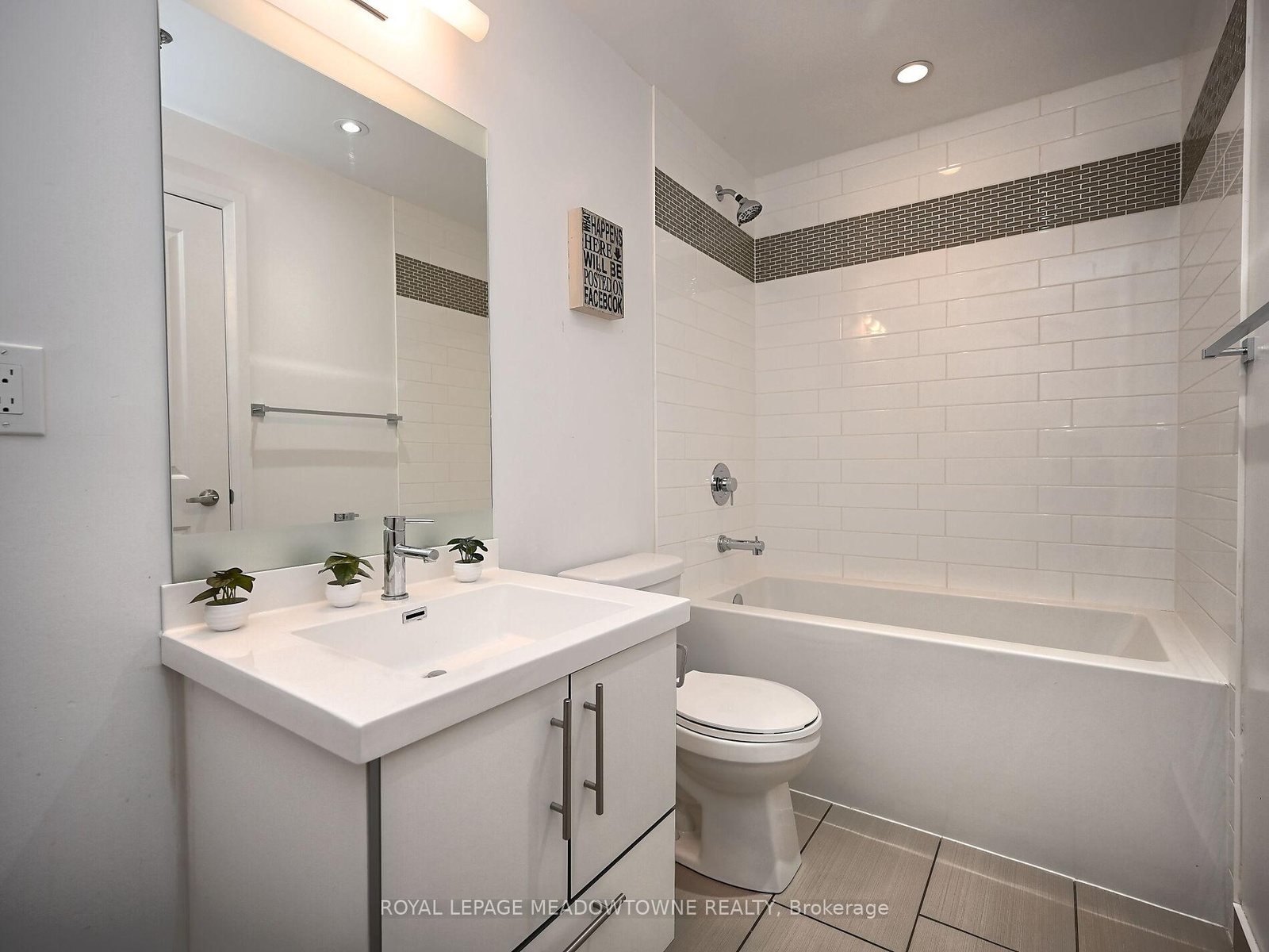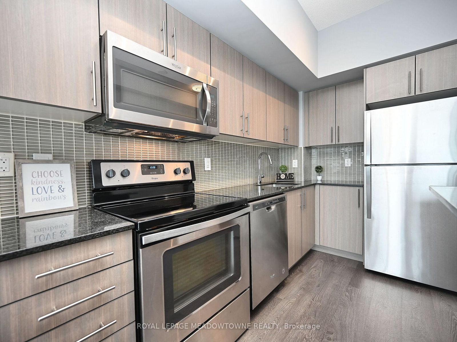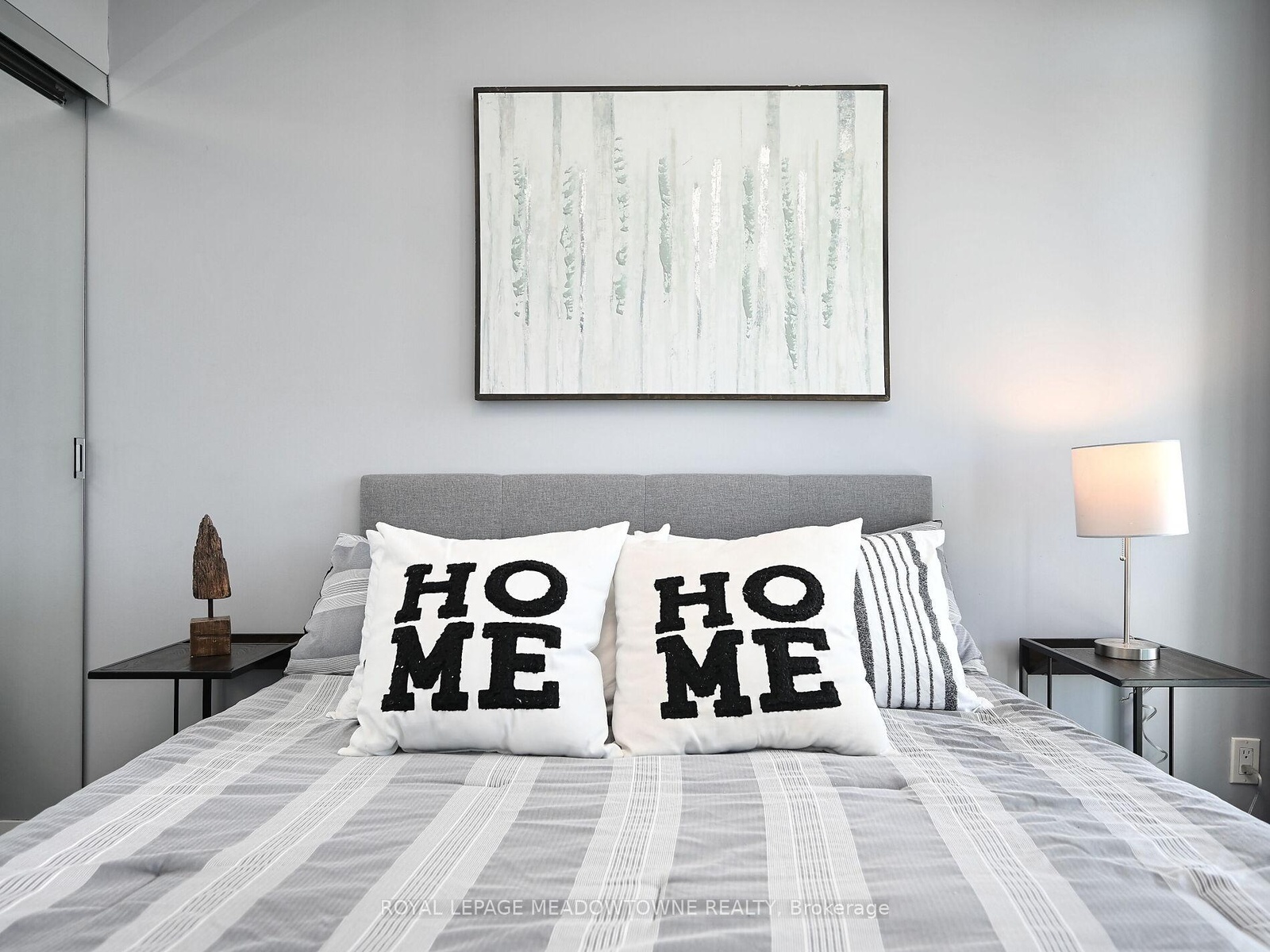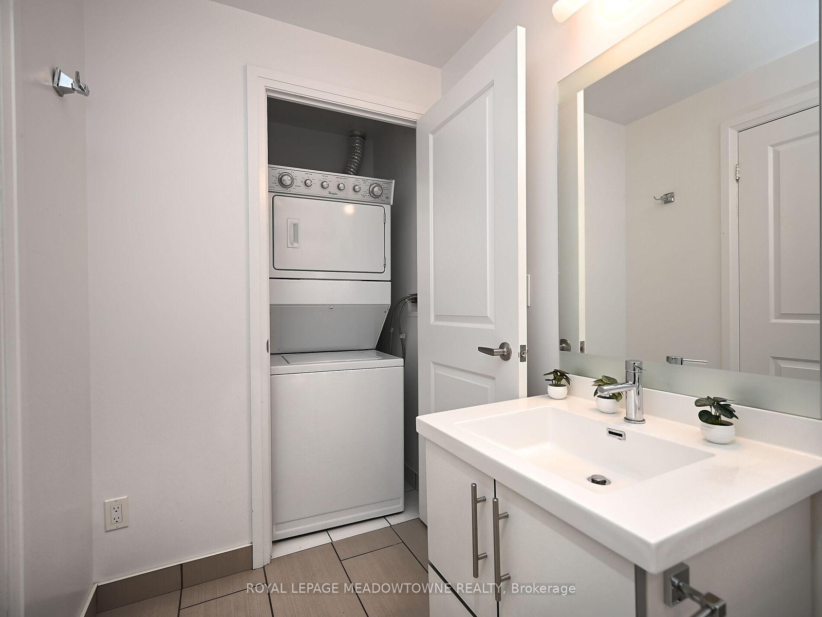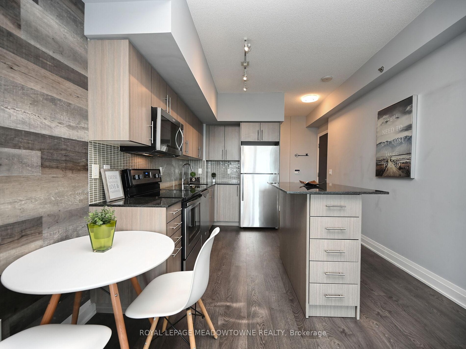 Discover this exquisitely home in a prime Oakville location, blending modern style with ultimate convenience. This charming 1 suite at Rain Condos offers the perfect blend of style, spectacular unobstructed lake views, comfort, and convenience, with high ceilings and floor-to-ceiling windows, Step inside to an open-concept design filled with natural light, showcasing a gourmet kitchen with quartz counters and high-end finishes. This is the Largest 1Bedroom Model. Features 9' Ceilings, 2 Balconies W/Lakeviews. Tons Of Upgrades: Dimmer Switches, Engineered Laminate Flr, Custom Built Mobile Island & Granite Counters, Upgraded Bathroom Vanity, Designer Tile Around Bathtub, Custom Motorized Light Filter Blinds, Frameless Mirrored Sliding Closet Doors In Bdrm, Designer Wall Treatment In Living Rm. Enjoy unparalleled access to top schools, charming shops, fine dining and waterfront parks. With the GO station and major highways just moments away, this property offers the perfect blend of luxury, practicality and vibrant Oakville living. Amazing location - steps into the Trendy Kerr Street Village! Priced to sell.