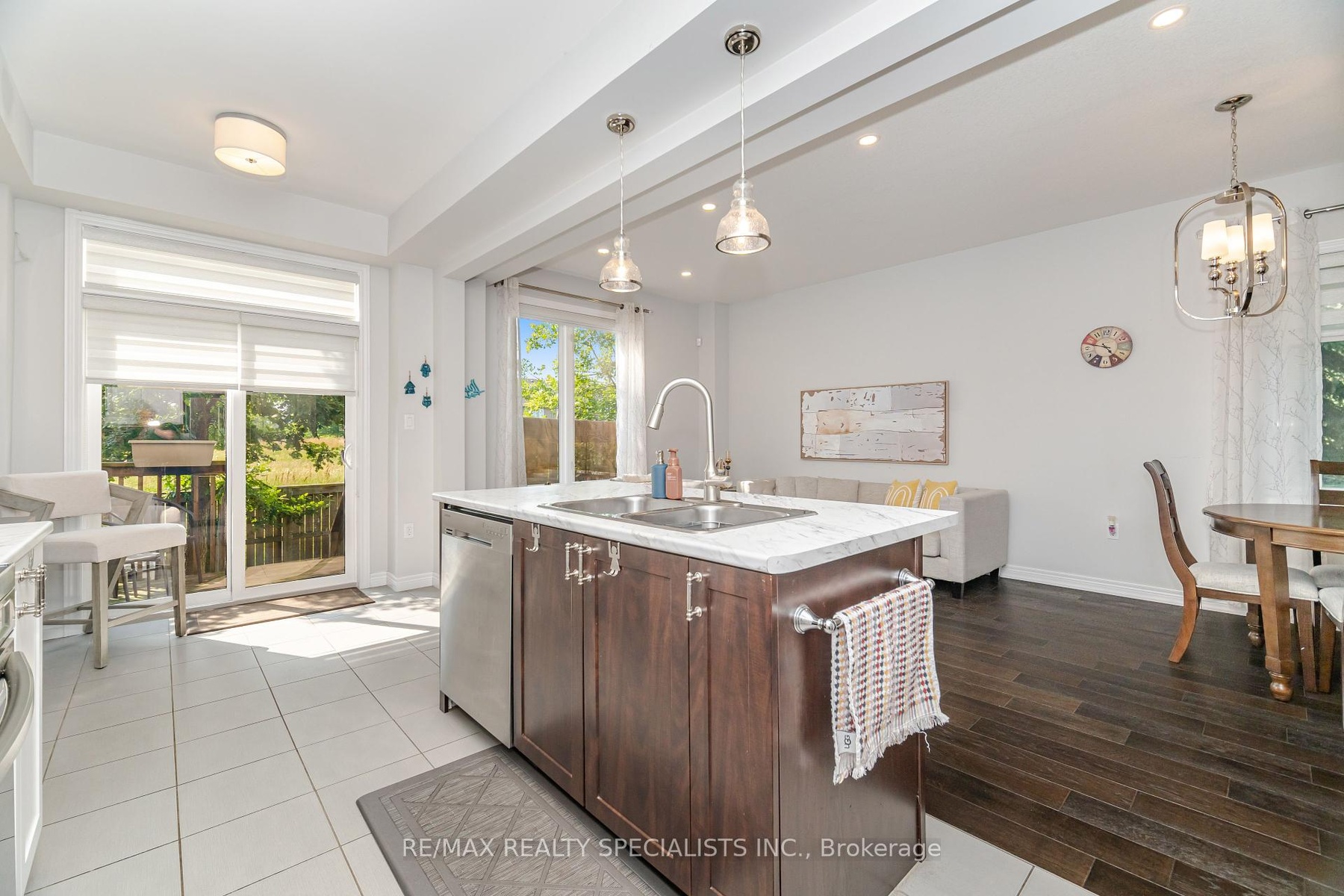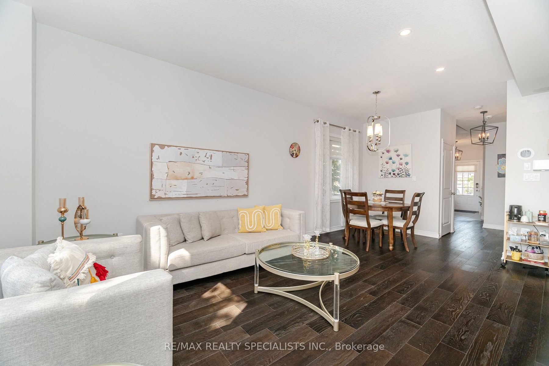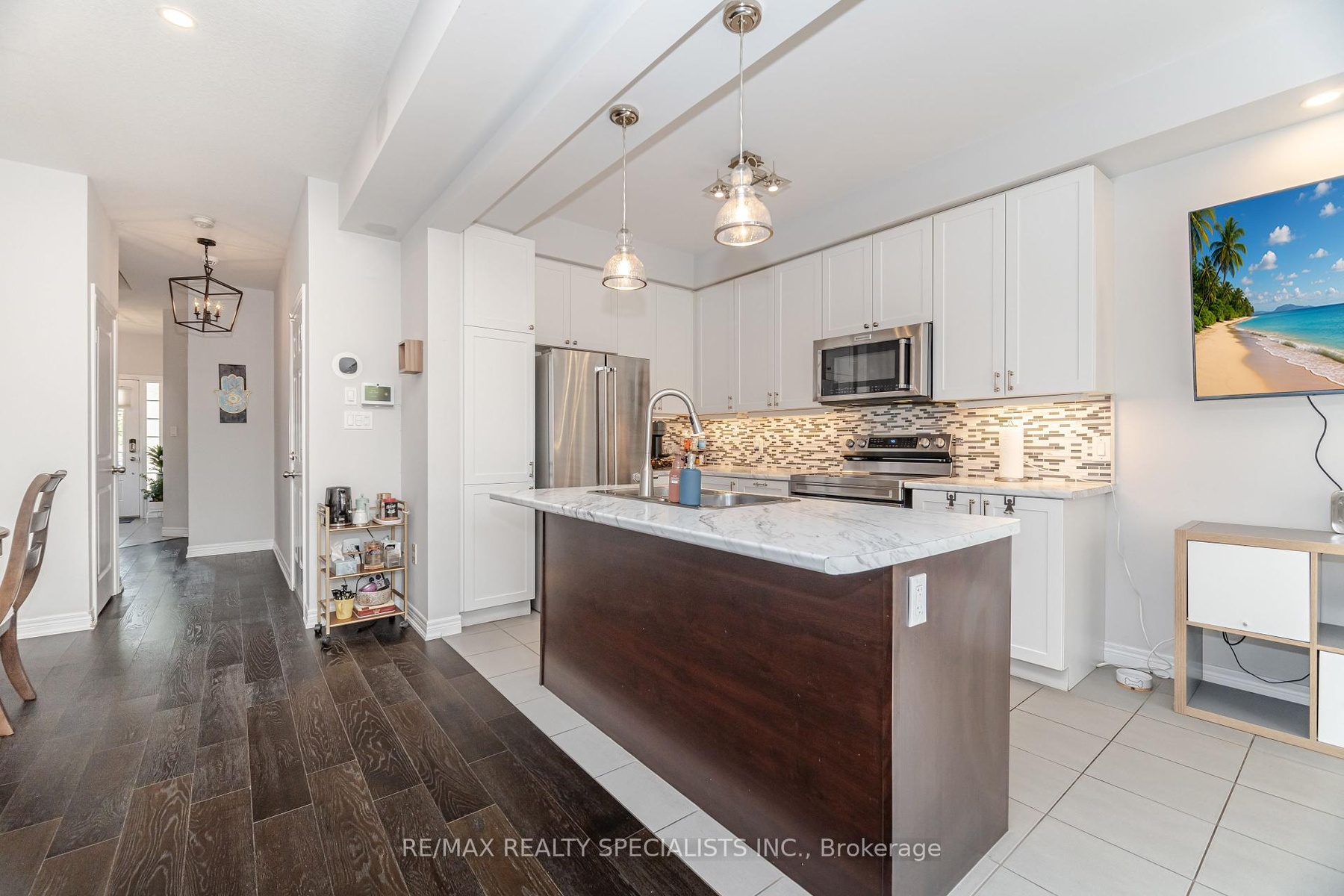 Welcome to this Beautifully Appointed END UNIT TOWNEHOUSE with Stylish, Sophisticated Finishes. Over 2100 sqft of Living space.The open-concept main level features gleaming hardwood floors and an abundance of windows that fill the space with natural light. The modern kitchen boasts a large island with a breakfast bar - perfect for casual dining or entertaining. S/S Appliances, Backsplash. Upstairs, you'll find three spacious bedrooms with New Laminate Flooring plus a versatile loft/den, including a luxurious primary suite with a spa-like ensuite and a generous walk-in closet. Enjoy the convenience of second-floor laundry.New Quartz Washrooms Counter Top. Bathtub Sildedoors. Legal Finish Basemet(summer 2022) Offers 3 pcs washroom, modern Kitched with counter top Stove and Large space that can be your gym and your working space that is full of natural light comes from Lagre legal windows. Situated on a large, pie-shaped lot with a back patio off the kitchen, A nice Paracola - ideal for relaxing and watching stunning evening sunsets.Close to McMater University and Mohawk Colledge. Walking distance to shopping, schools and parks, minutes to COSTCO, COSTCO GAS STATION and many more!! Monthly road maintenance fee: $116.50.This Townehouse is 10/10 fully loaded do not miss the opportionity to own it.
