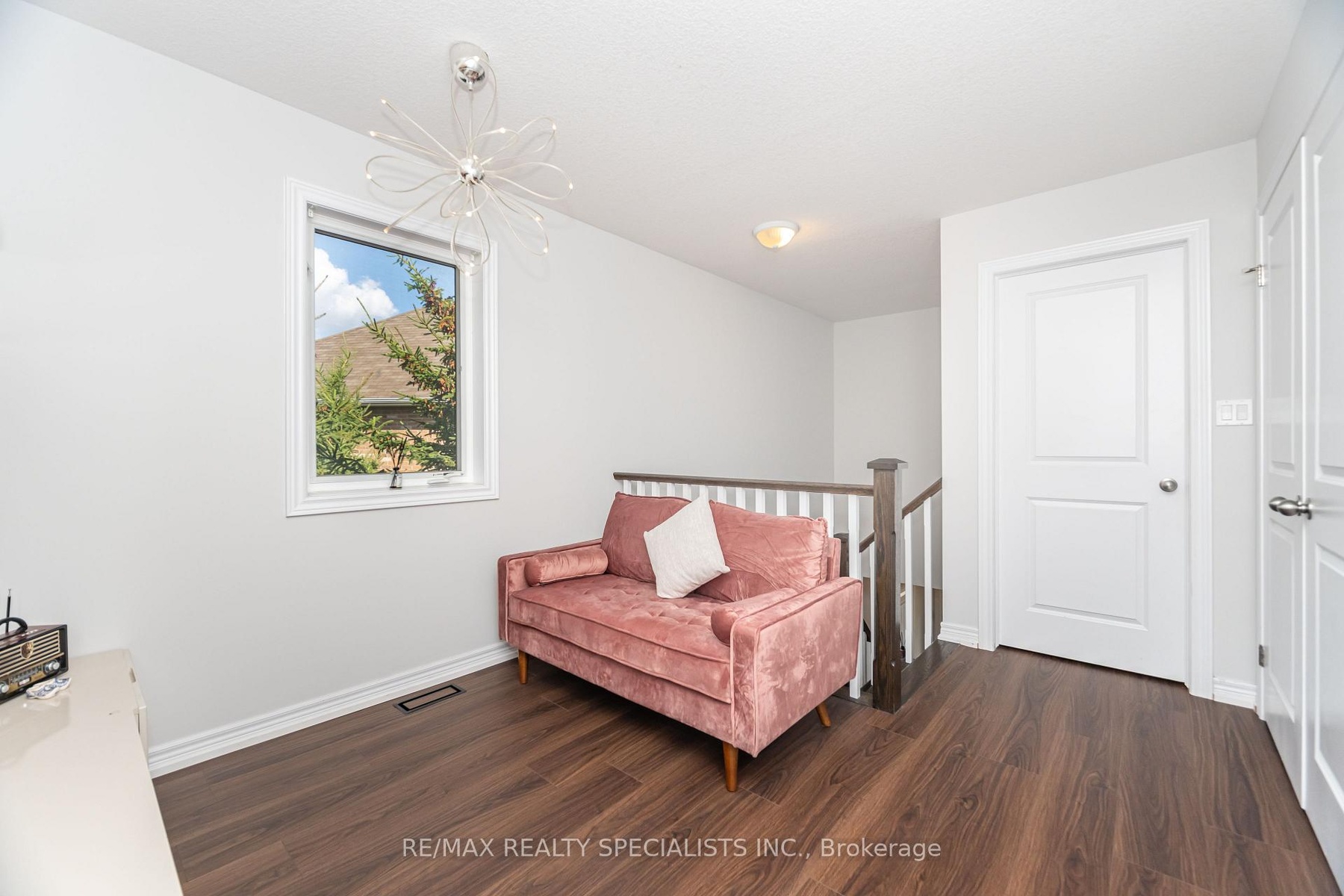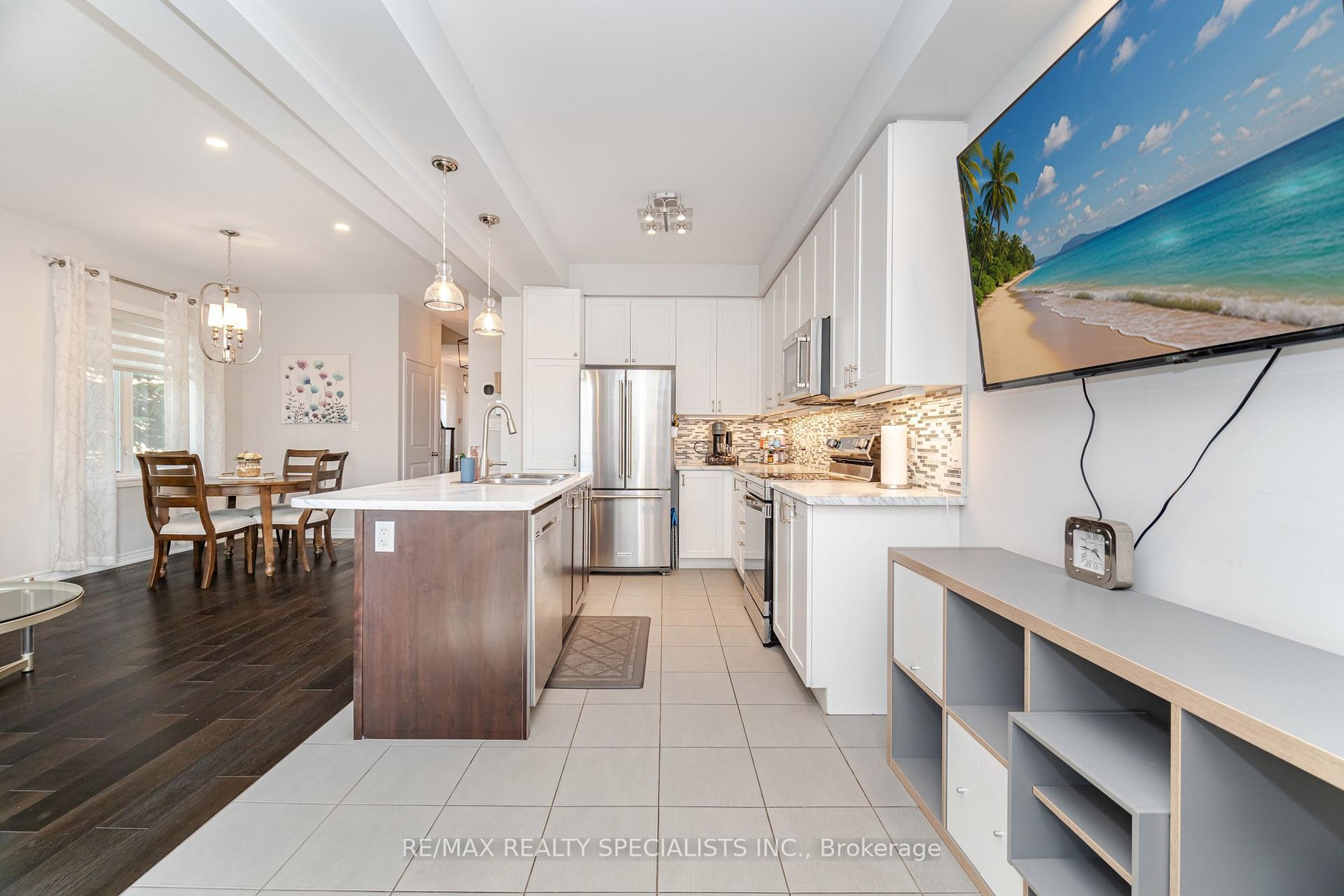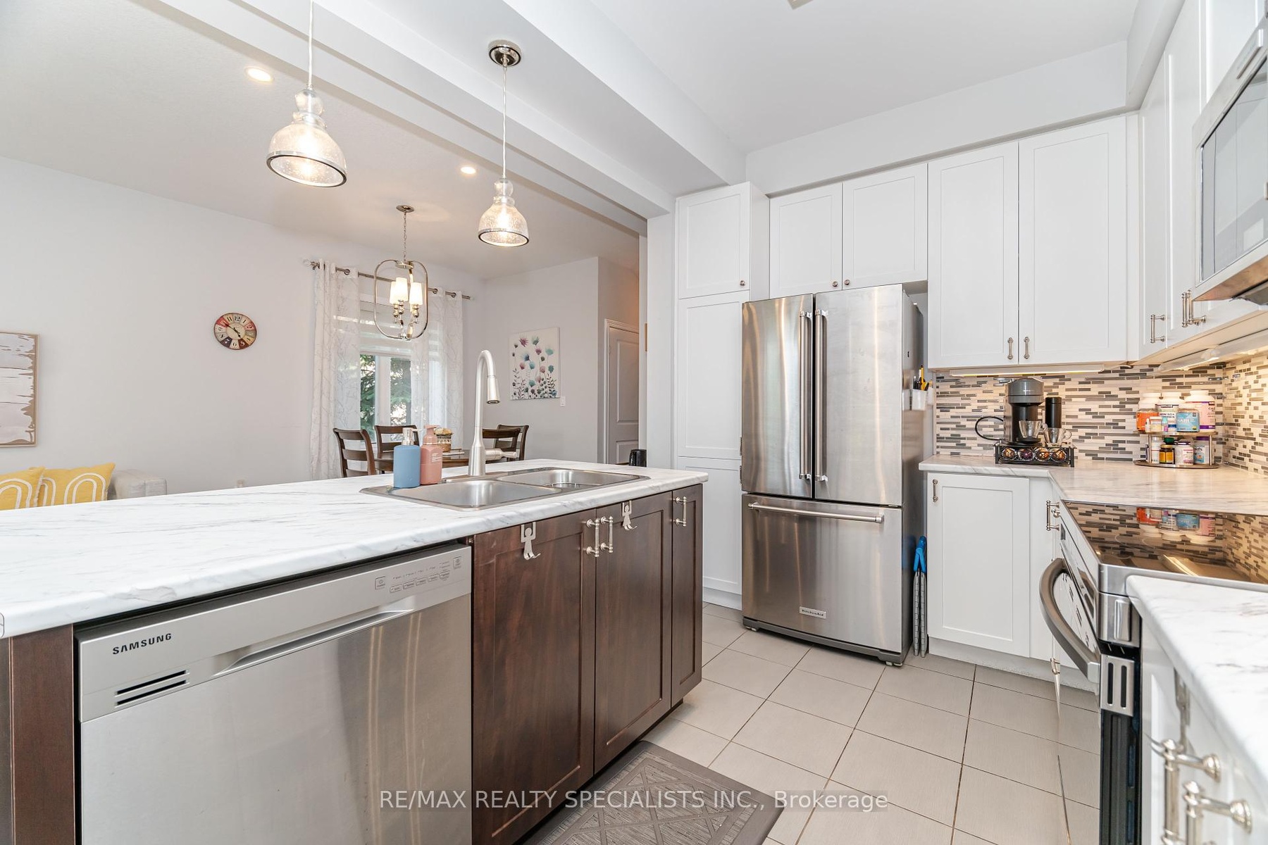 Welcome to this Beautifully Appointed END UNIT TOWNEHOUSE with Stylish, Sophisticated Finishes. Over 2100 sqft of Living space.The open-concept main level features gleaming hardwood floors and an abundance of windows that fill the space with natural light. The modern kitchen boasts a large island with a breakfast bar - perfect for casual dining or entertaining. S/S Appliances, Backsplash. Upstairs, you'll find three spacious bedrooms with New Laminate Flooring plus a versatile loft/den, including a luxurious primary suite with a spa-like ensuite and a generous walk-in closet. Enjoy the convenience of second-floor laundry.New Quartz Washrooms Counter Top. Bathtub Sildedoors. Legal Finish Basemet(summer 2022) Offers 3 pcs washroom, modern Kitched with counter top Stove and Large space that can be your gym and your working space that is full of natural light comes from Lagre legal windows. Situated on a large, pie-shaped lot with a back patio off the kitchen, A nice Paracola - ideal for relaxing and watching stunning evening sunsets.Close to McMater University and Mohawk Colledge. Walking distance to shopping, schools and parks, minutes to COSTCO, COSTCO GAS STATION and many more!! Monthly road maintenance fee: $116.50.This Townehouse is 10/10 fully loaded do not miss the opportionity to own it.