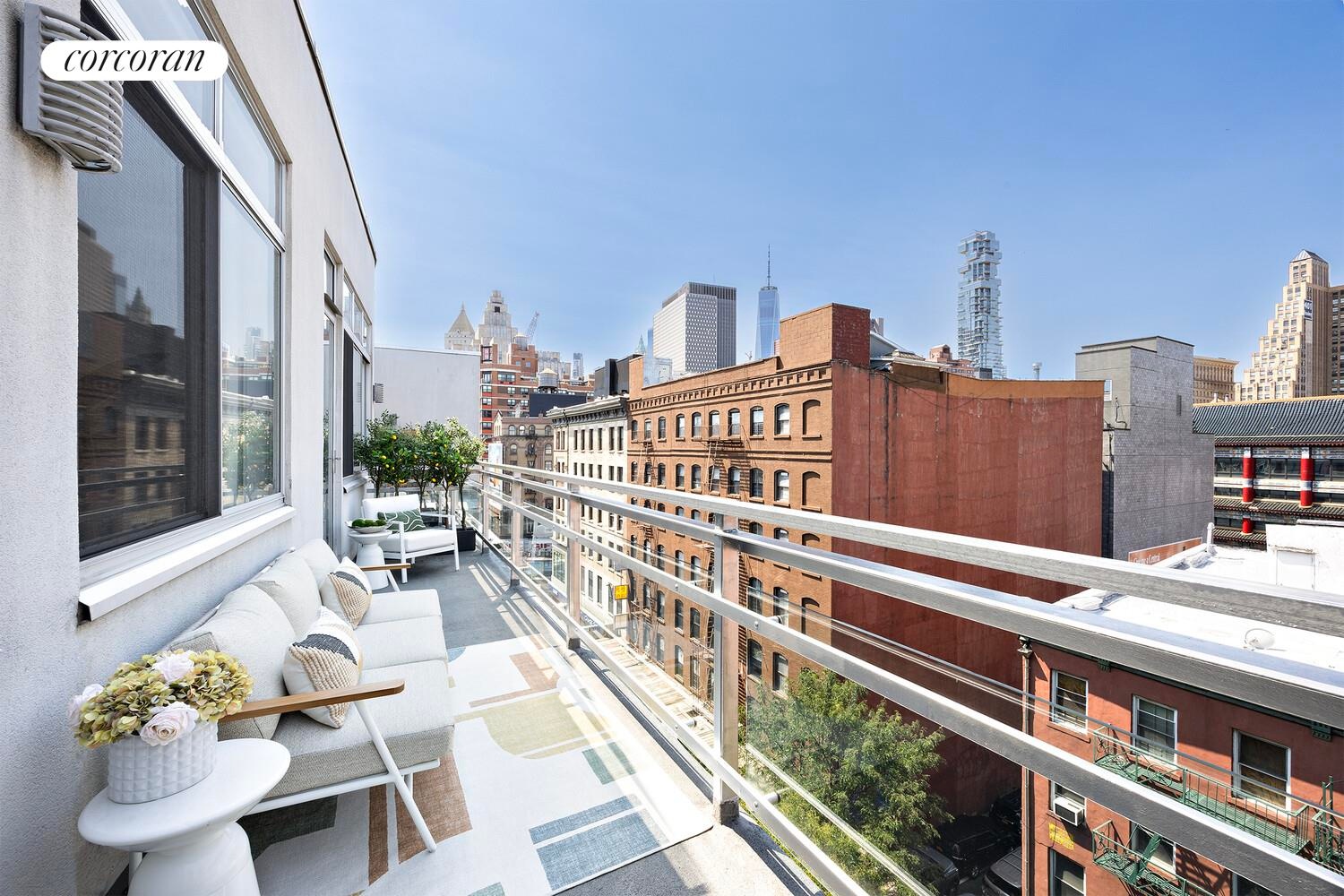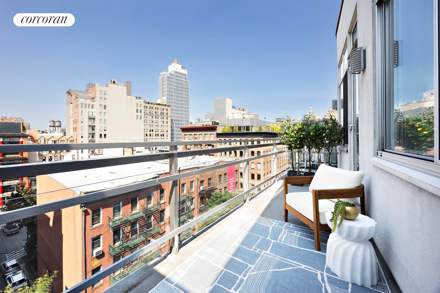 Nestled in the crossroads of SoHo, Nolita, and Tribeca, enjoy effortless convenience in this sprawling three-bedroom, three-and-a-half-bathroom penthouse with private outdoor space.