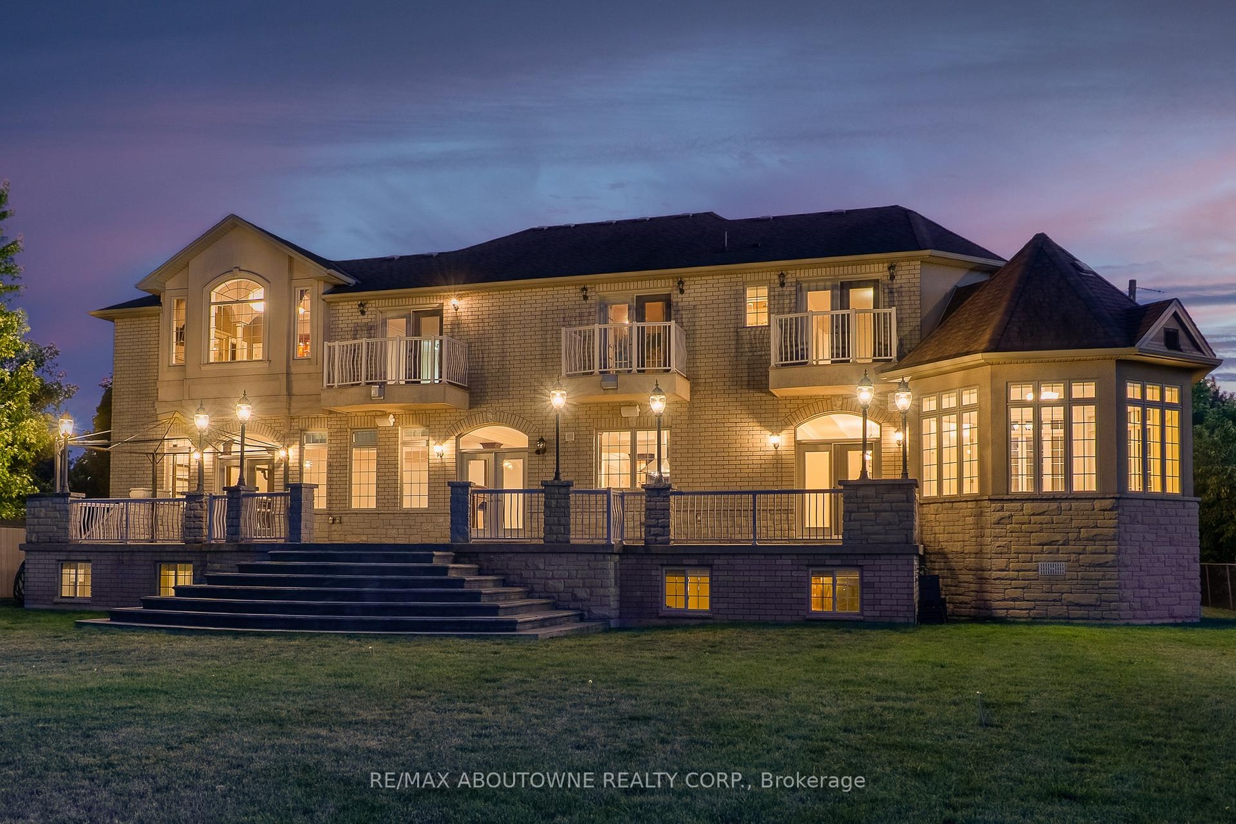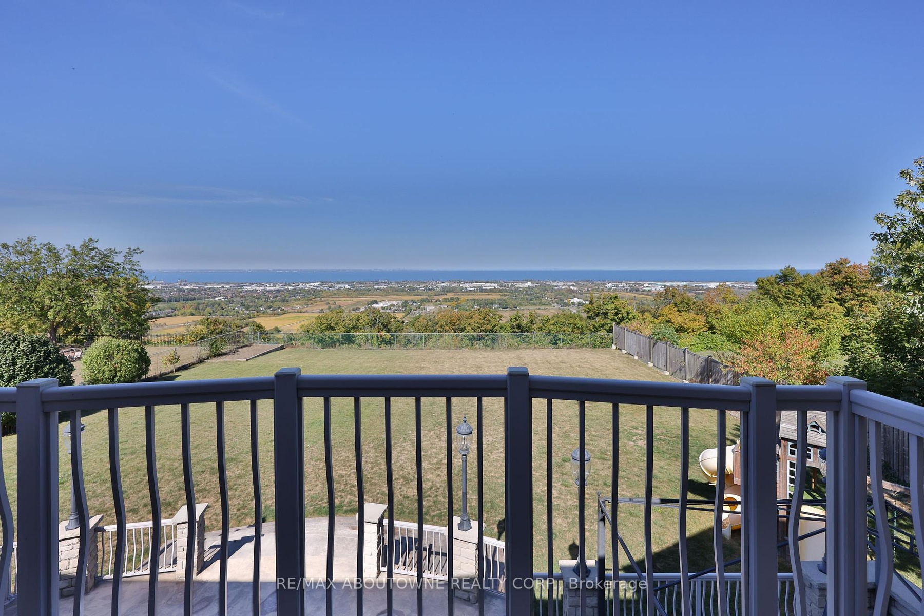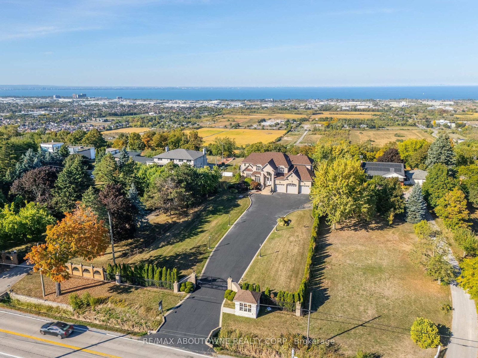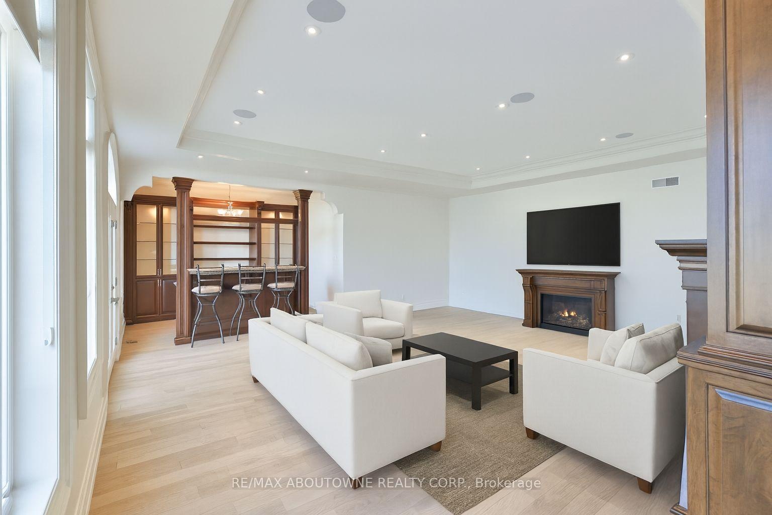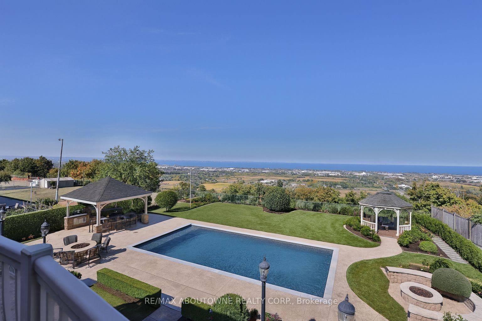 Welcome to 803 Ridge Road an extraordinary custom-built residence set on a pristine 0.81 acre lot with breathtaking vistas of Lake Ontario and the Toronto skyline. Spanning nearly 9,000 sq.ft. of finished living space, this home masterfully combines timeless craftsmanship with modern luxury.Step into the grand foyer with 19 ceilings and an elegant oak and wrought-iron staircase. The expansive living and great rooms feature multiple fireplaces, soaring ceilings, and walls of windows that flood the home with natural light. A double-sided fireplace connects the great room to the breakfast area and kitchen area. A custom gourmet kitchen is a chefs dream, appointed with CAPITAL, Viking, and Electrolux appliances, built-in cabinetry, a spacious pantry, and a walk-out to the patio. A formal oversized dining room connected to the ventilated solarium ideal for a cigar lounge or private retreat and wet bar make this level perfect for entertaining. The primary suite is a true sanctuary with its own fireplace, private balcony overlooking the lake, a massive walk-in closet, and a spa-like 6-piece ensuite. Every bedroom offers its own ensuite, and two additional bedrooms enjoys a balcony with panoramic lake views. A cozy family room overlooking the front yard completes this level, providing a quiet retreat for evenings at home. The fully finished lower level was designed for both leisure and wellness. It includes two bedrooms plus full bathroom, a home theatre, a fitness room, and recreation room, a dumbwaiter for convenience and a wine cellar. Ample storage rooms make it as functional as it is luxurious. This is a rare offering a lakeview luxury estate with every amenity imaginable, minutes to Burlington, Oakville, and quick highway access.
