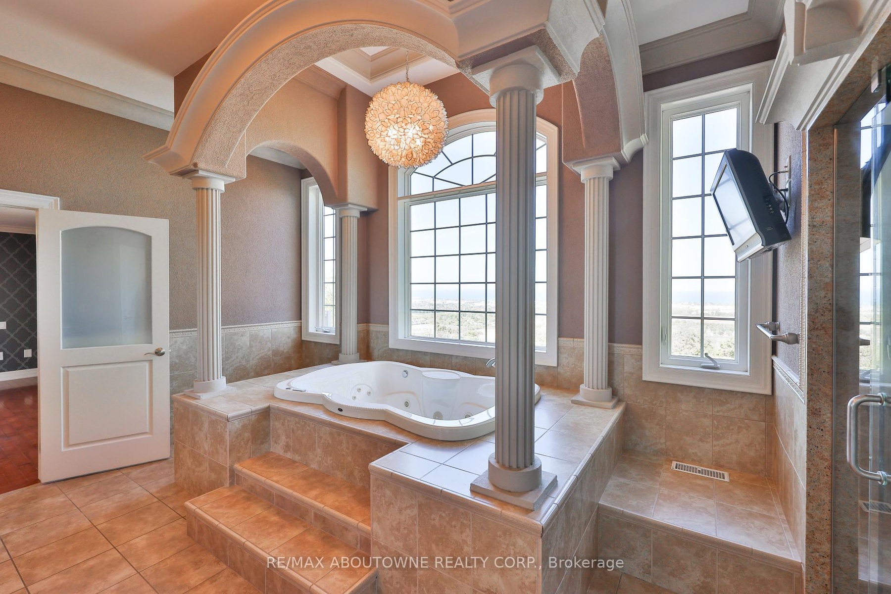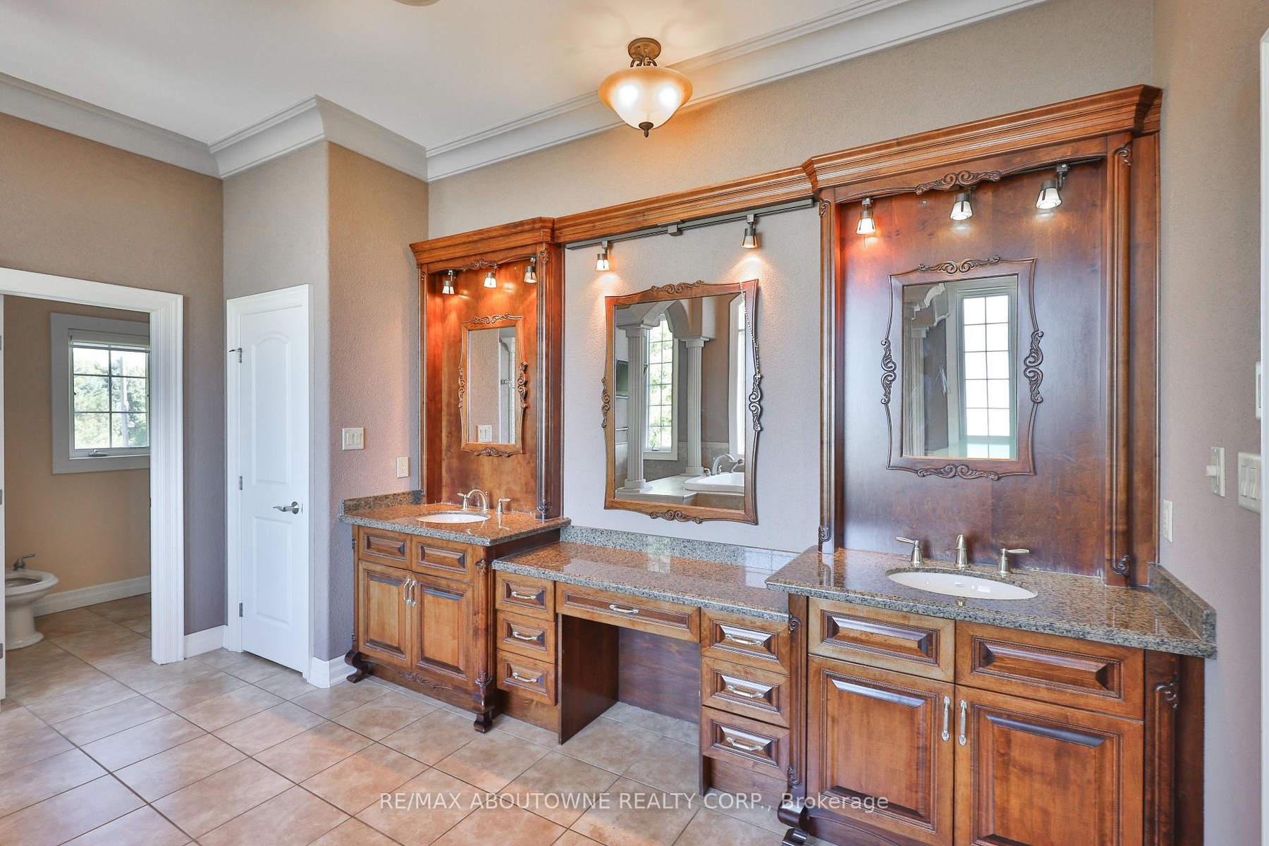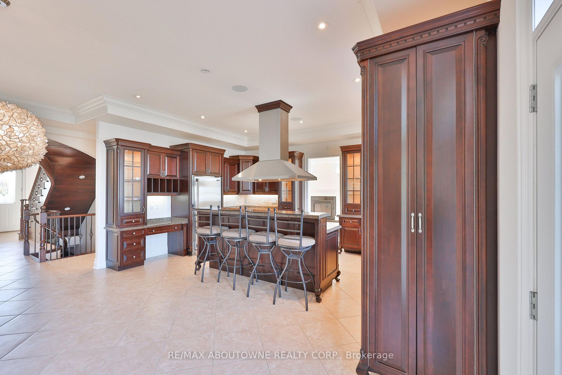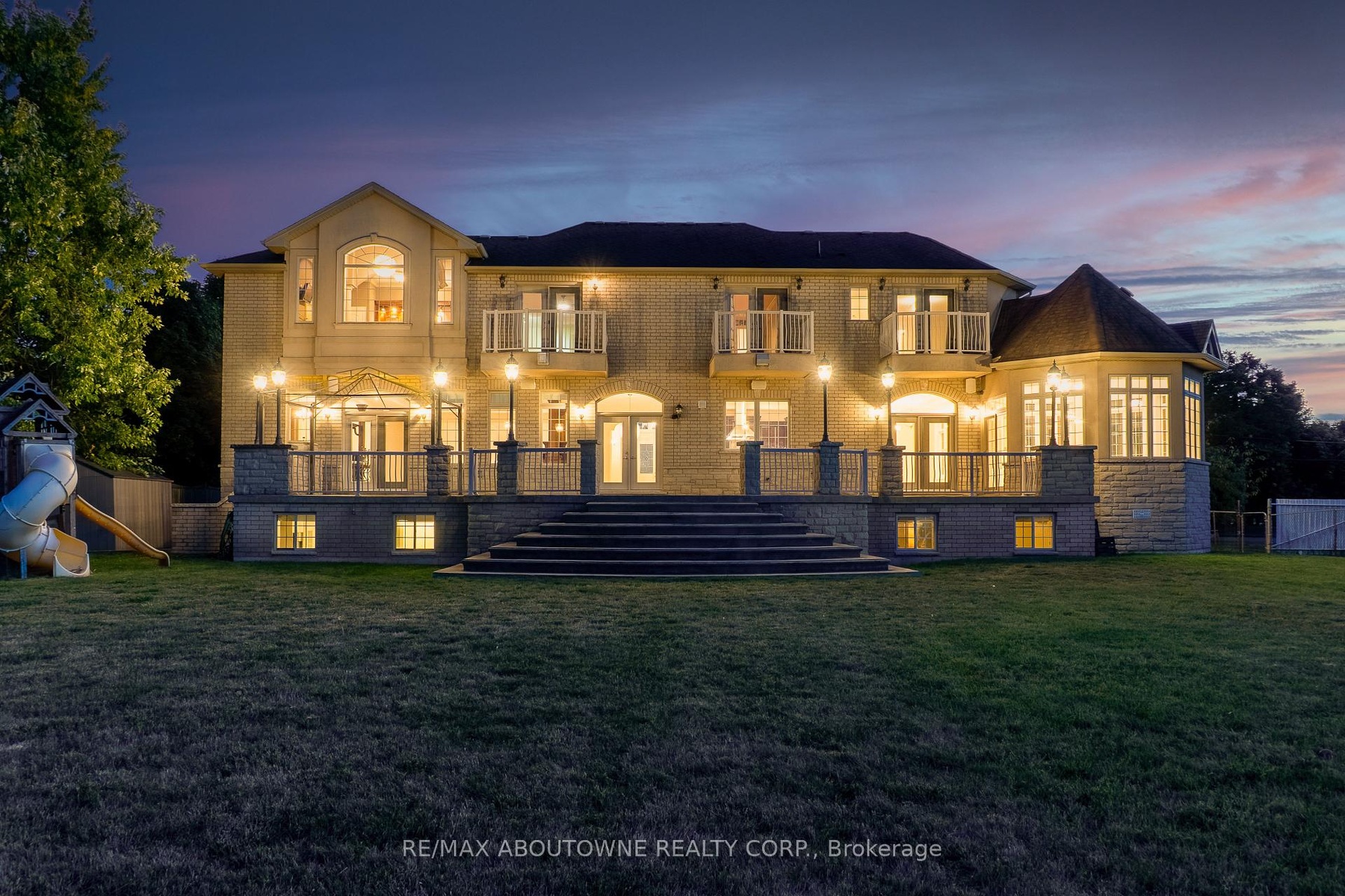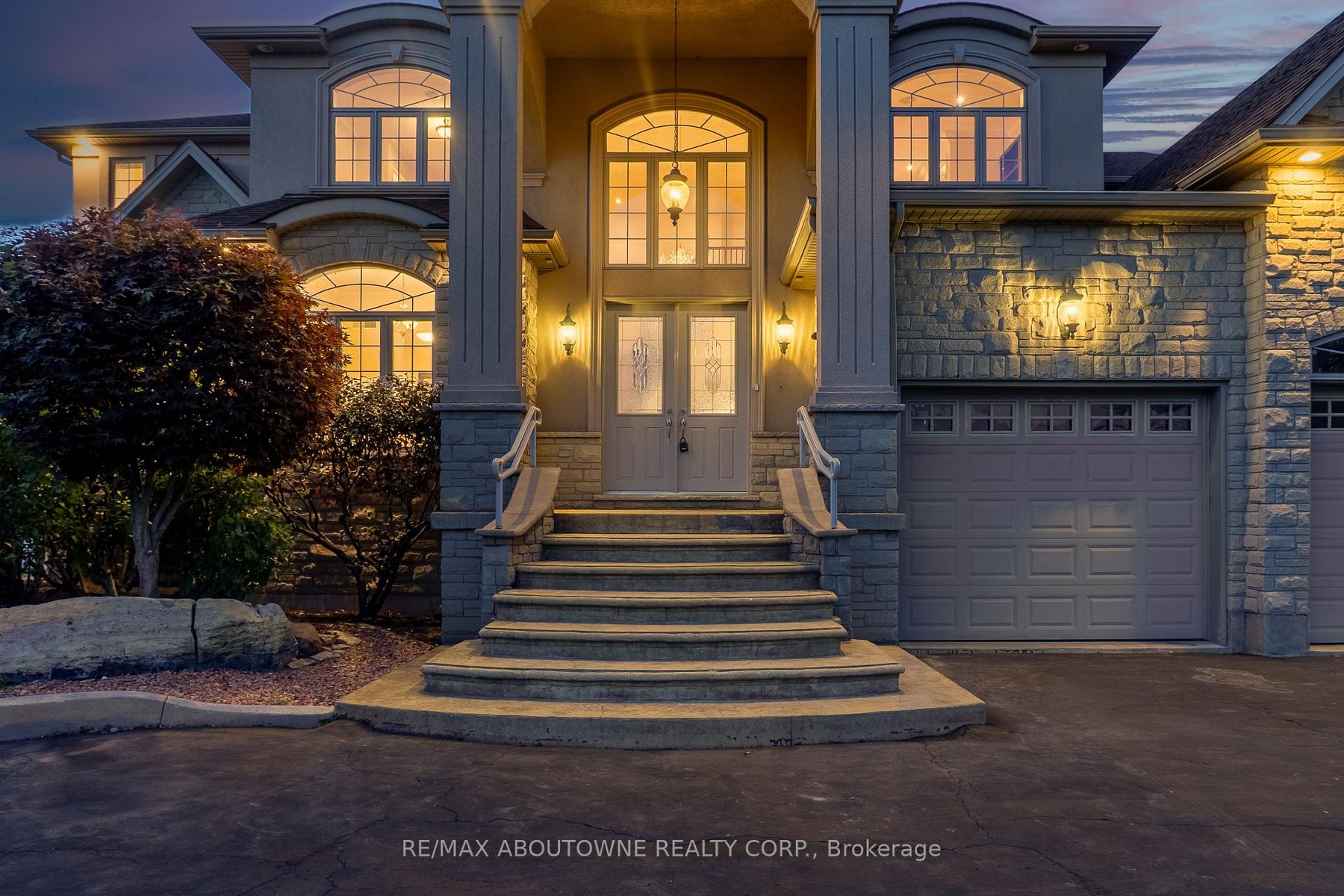 Welcome to 803 Ridge Road an extraordinary custom-built residence set on a pristine 0.81 acre lot with breathtaking vistas of Lake Ontario and the Toronto skyline. Spanning nearly 9,000 sq.ft. of finished living space, this home masterfully combines timeless craftsmanship with modern luxury.Step into the grand foyer with 19 ceilings and an elegant oak and wrought-iron staircase. The expansive living and great rooms feature multiple fireplaces, soaring ceilings, and walls of windows that flood the home with natural light. A double-sided fireplace connects the great room to the breakfast area and kitchen area. A custom gourmet kitchen is a chefs dream, appointed with CAPITAL, Viking, and Electrolux appliances, built-in cabinetry, a spacious pantry, and a walk-out to the patio. A formal oversized dining room connected to the ventilated solarium ideal for a cigar lounge or private retreat and wet bar make this level perfect for entertaining. The primary suite is a true sanctuary with its own fireplace, private balcony overlooking the lake, a massive walk-in closet, and a spa-like 6-piece ensuite. Every bedroom offers its own ensuite, and two additional bedrooms enjoys a balcony with panoramic lake views. A cozy family room overlooking the front yard completes this level, providing a quiet retreat for evenings at home. The fully finished lower level was designed for both leisure and wellness. It includes two bedrooms plus full bathroom, a home theatre, a fitness room, and recreation room, a dumbwaiter for convenience and a wine cellar. Ample storage rooms make it as functional as it is luxurious. This is a rare offering a lakeview luxury estate with every amenity imaginable, minutes to Burlington, Oakville, and quick highway access.