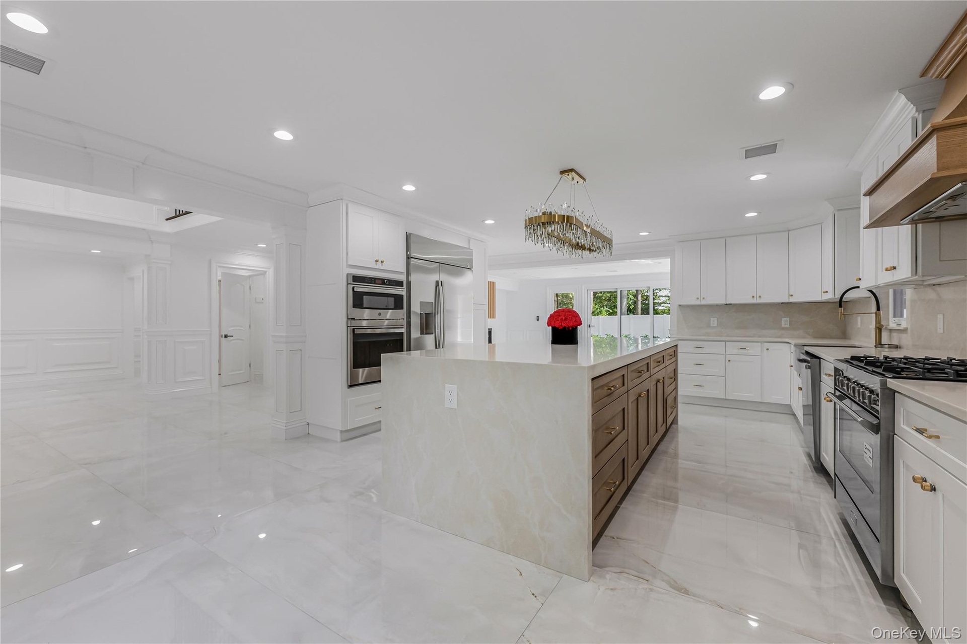 Welcome to 15 Southwick Ct. Located on a quiet and private block in Plainview, this home gives you the space, style, and comfort you've been looking for.?This stunning 5 beds, 5.5 baths home has been completely redone from top to bottom, keeping the original foundation but offering everything you’d expect from a brand-new build. Walk into a bright and open two-story entryway and enjoy the high ceilings on both the main floor and basement. The kitchen is a dream, with quartz countertops, custom cabinets, and top-quality appliances, and opens to a cozy family room with a fireplace. There's also a formal dining room, living room, and a first floor bedroom, perfect for visitors or extended family.The primary bedroom suite is your own private escape, with a huge bathroom that has a soaking tub, large glass shower, double sinks, and walk-in closet with built-ins. Every other bedroom is roomy, with great closet space too. In addition, the house has 2 laundry rooms to make it convenient for the whole family.