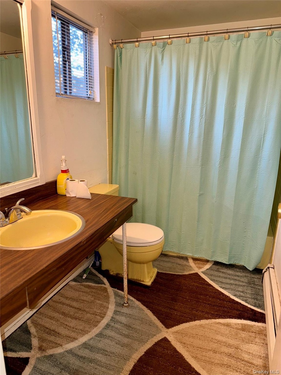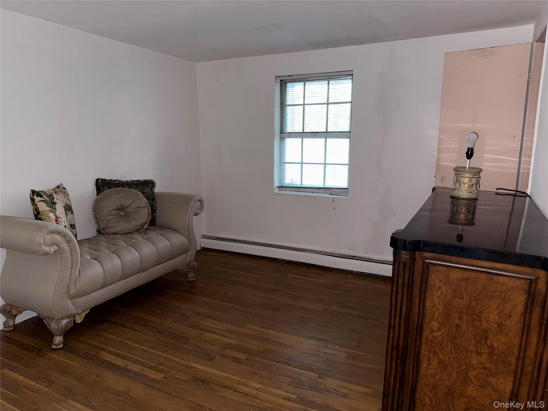 - Sitting room featuring dark wood-style floors and a baseboard radiator