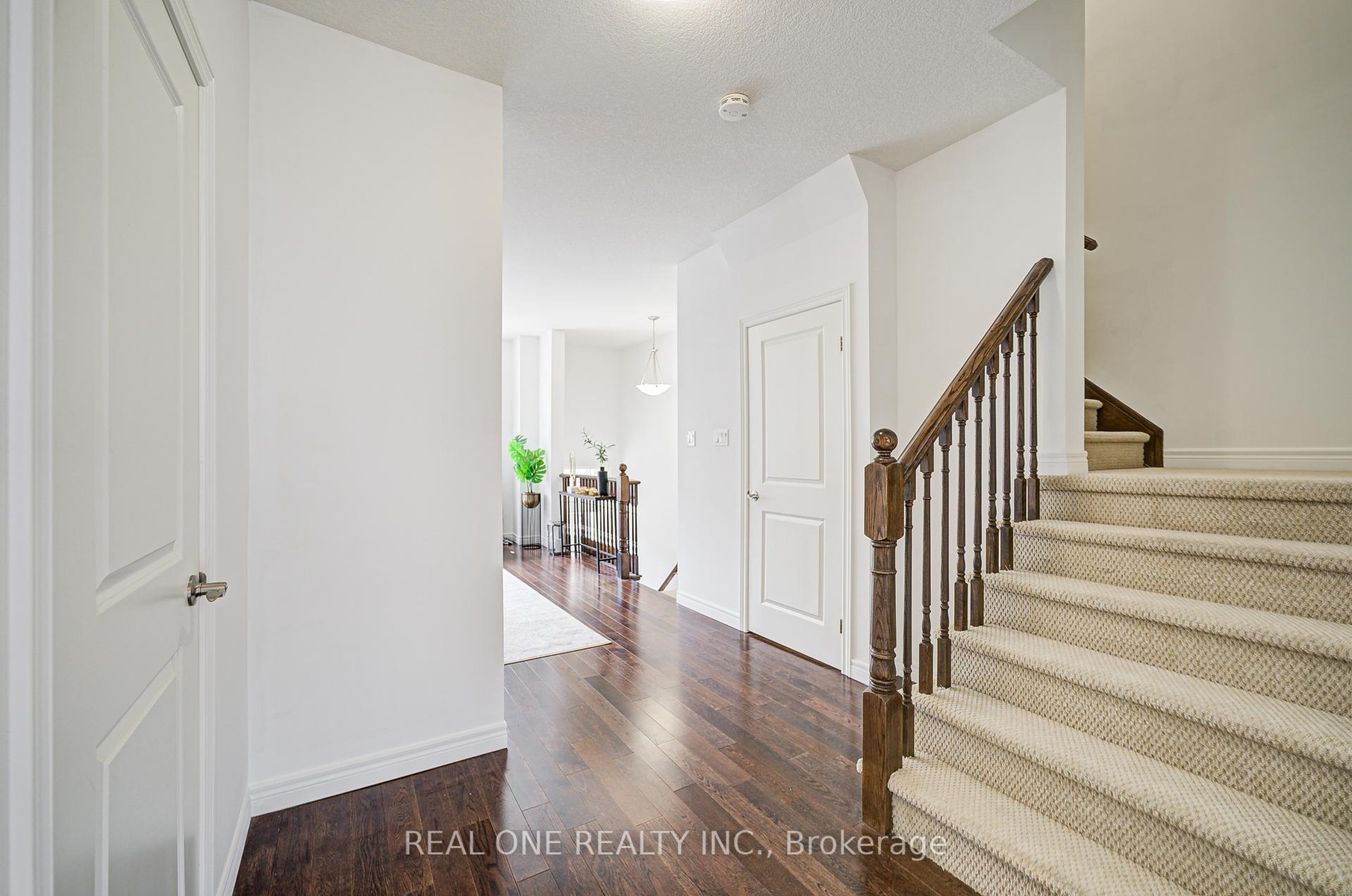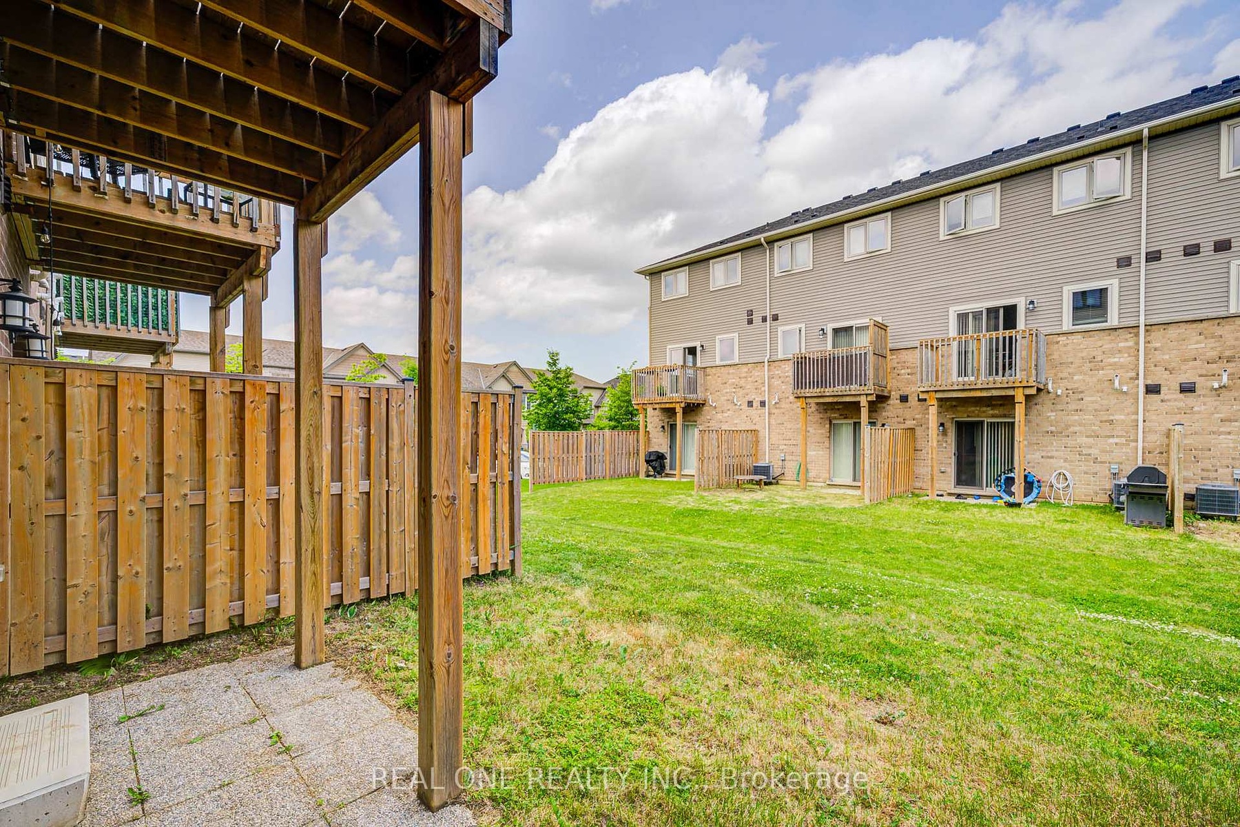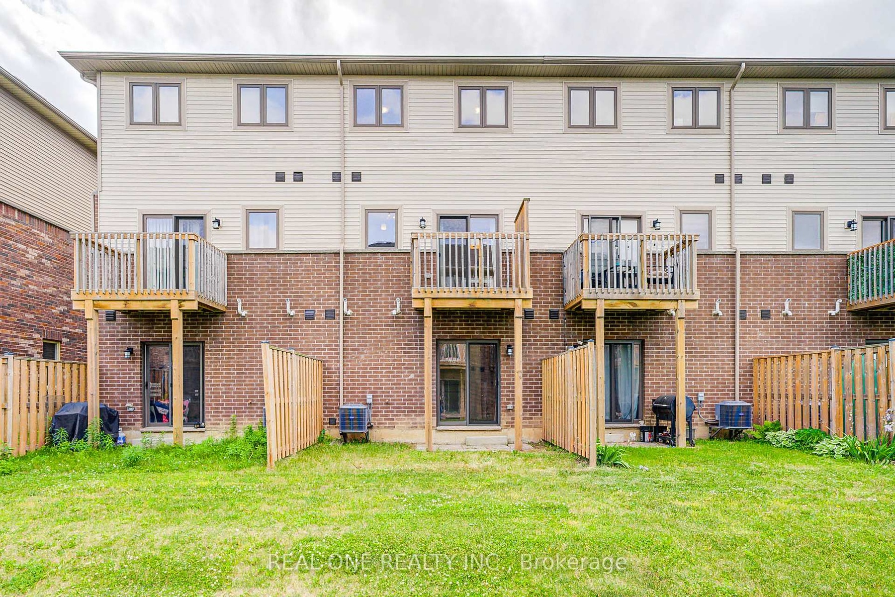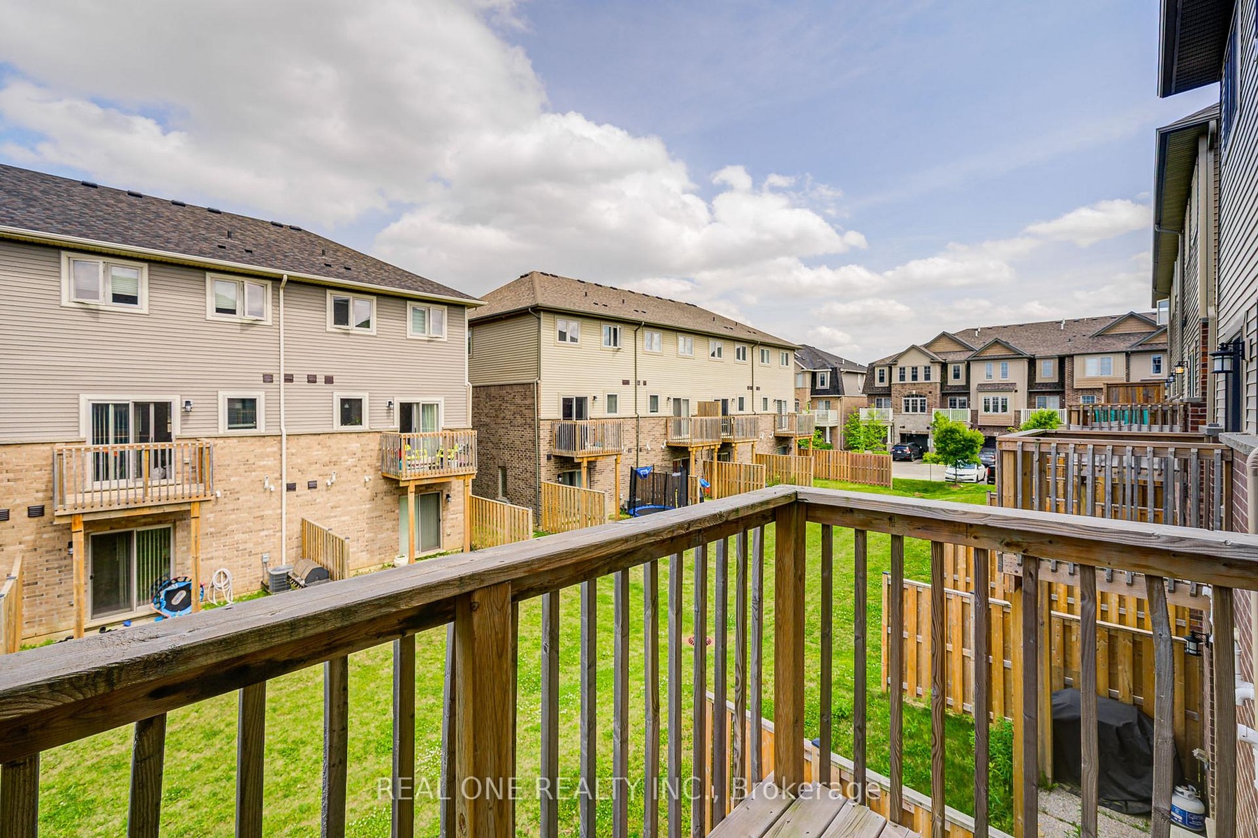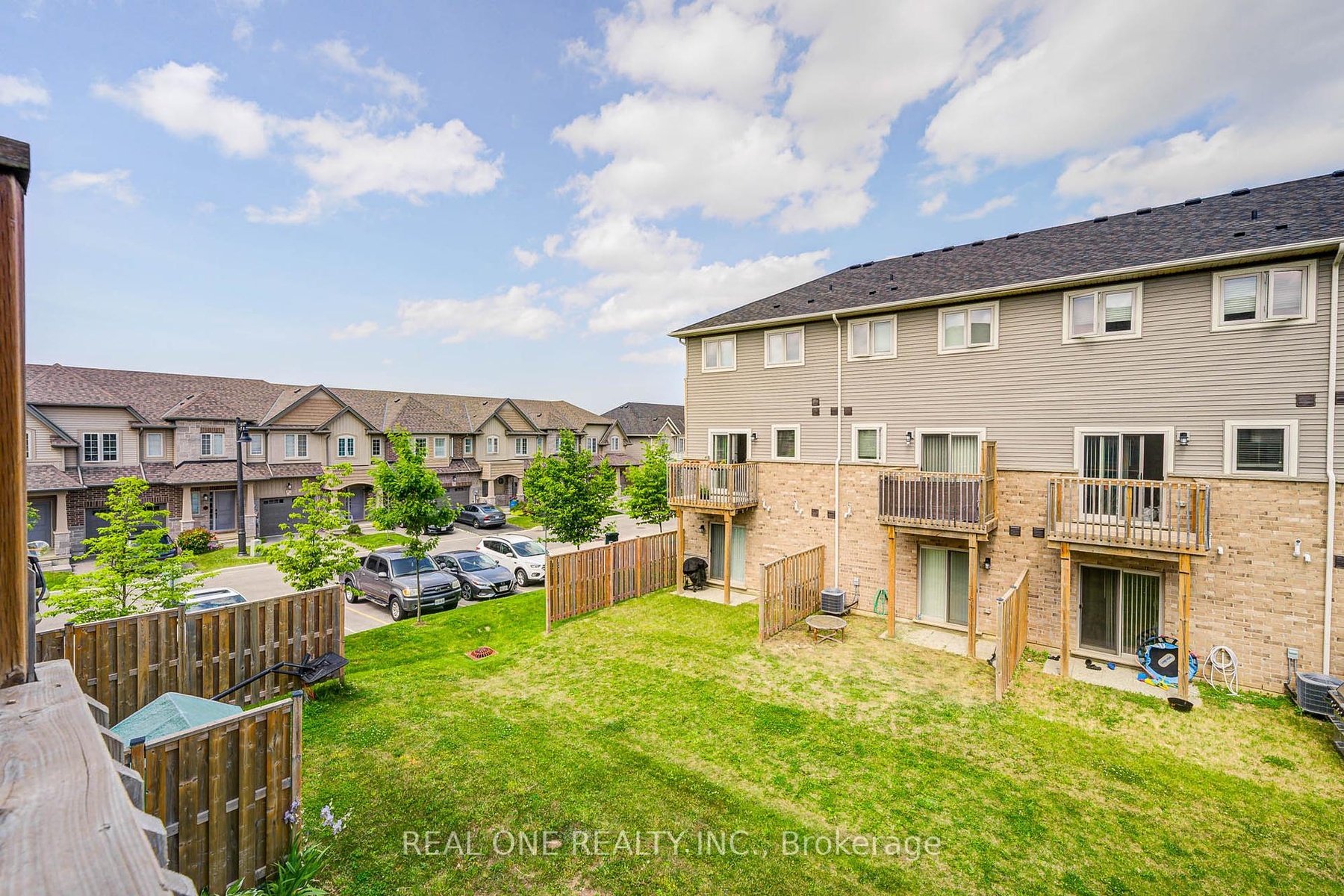 Welcome to this beautiful 3-bedroom, 2.5-bathroom freehold townhome built by Marz Homes, ideally located in the highly desirable Ancaster Meadowlands community. Spanning three levels, this sun-filled west-facing home features 9 ft ceiling, an open-concept living area w/ abundant natural light, contemporary eat-in kitchen with dark stained hardwood cabinets, stainless steel appliances, and a spacious dining room with walkout to a private balcony-perfect for enjoying your morning coffee.The primary suite offers a luxurious 4-piece ensuite and a generous walk-in closet. Two additional bedrooms share a well-appointed 4-piece bathroom. The ground-level walkout basement includes a versatile den ideal for a home office or children's playroom with direct access to the backyard.Enjoy the convenience of walking to Tiffany Hills Elementary School, a nearby neighborhood park, and being just minutes from Costco, shopping plazas, highways, and McMaster University. tenant to pay utilities.landlord to pay hot water tank rental. Available Immediately.