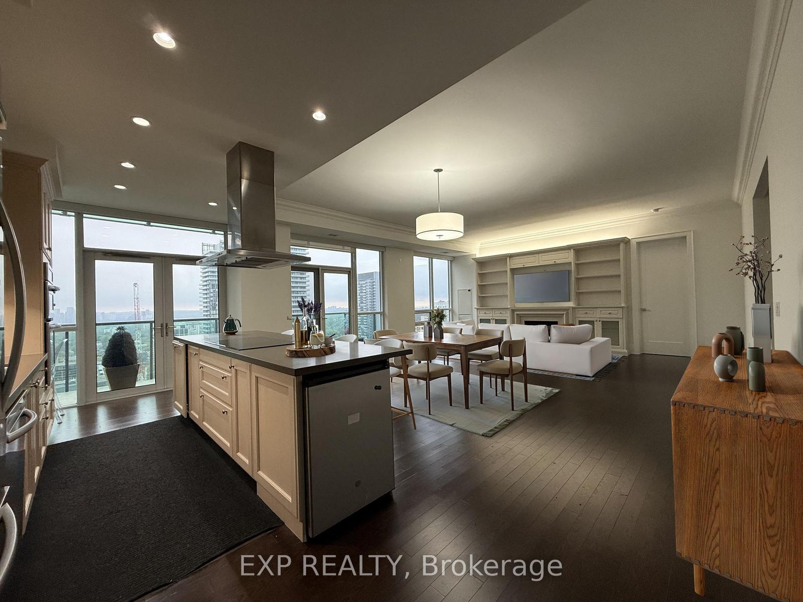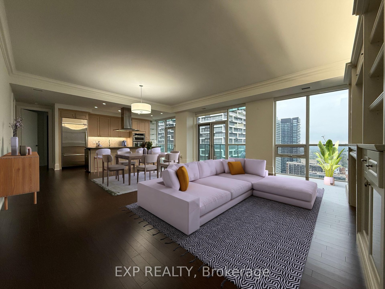 Welcome to Republic 2 by Tridel, one of Toronto's most renowned condo developers. This spectacular 2-bedroom + den, 3-bath suite showcases unobstructed southeast views of the Toronto skyline. Designed with an open-concept layout and floor-to-ceiling windows, it offers nearly 1,700 sq. ft. of bright, airy living space with soaring 10-ft ceilings. An oversized open balcony extends the living space outdoors, while the spacious den with a built-in Murphy bed easily serves as a third bedroom with generous built-in storage. The suite also features a custom gourmet kitchen w/spacious centre island, a full-size laundry room with a sink, and the exclusivity of having only six suites on the 23rd floor. All this, just steps from a top-ranked high school, TTC transit, grocery stores, major supermarkets, acclaimed restaurants, theatres, bars, and the vibrant lifestyle amenities of Yonge & Eglinton. **Remote blackout blinds in bedrooms, translucent blinds in living areas, premium parking spot in front of elevator, three cabanas with BBQs (one year-round), spa with sauna, gym, function and theatre rooms, ample visitor parking, and two guest suites.**