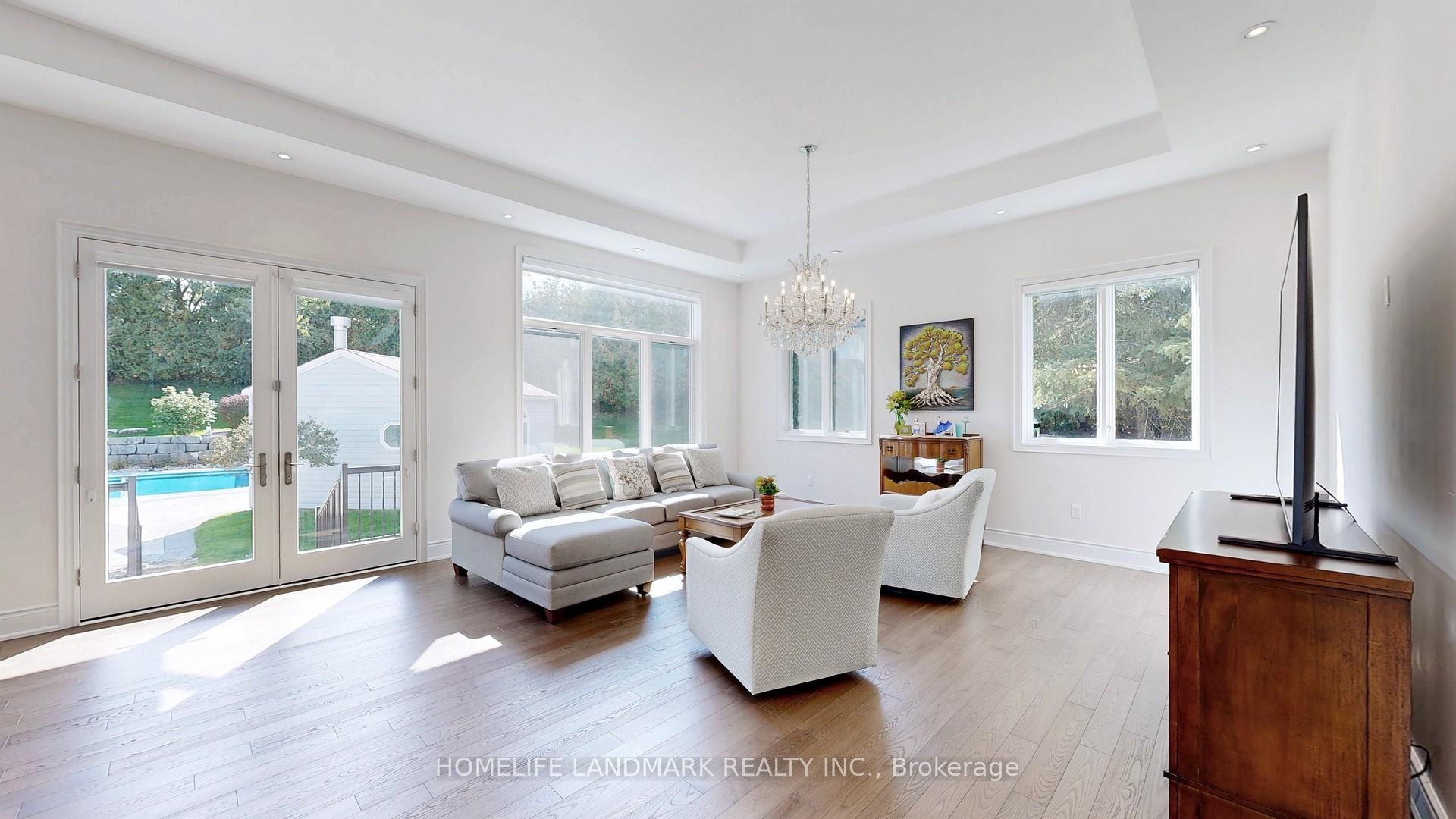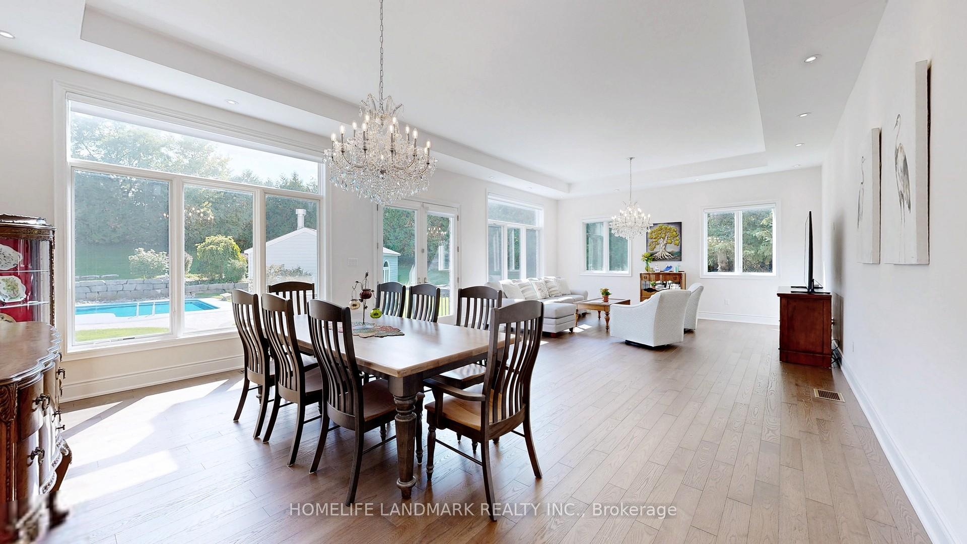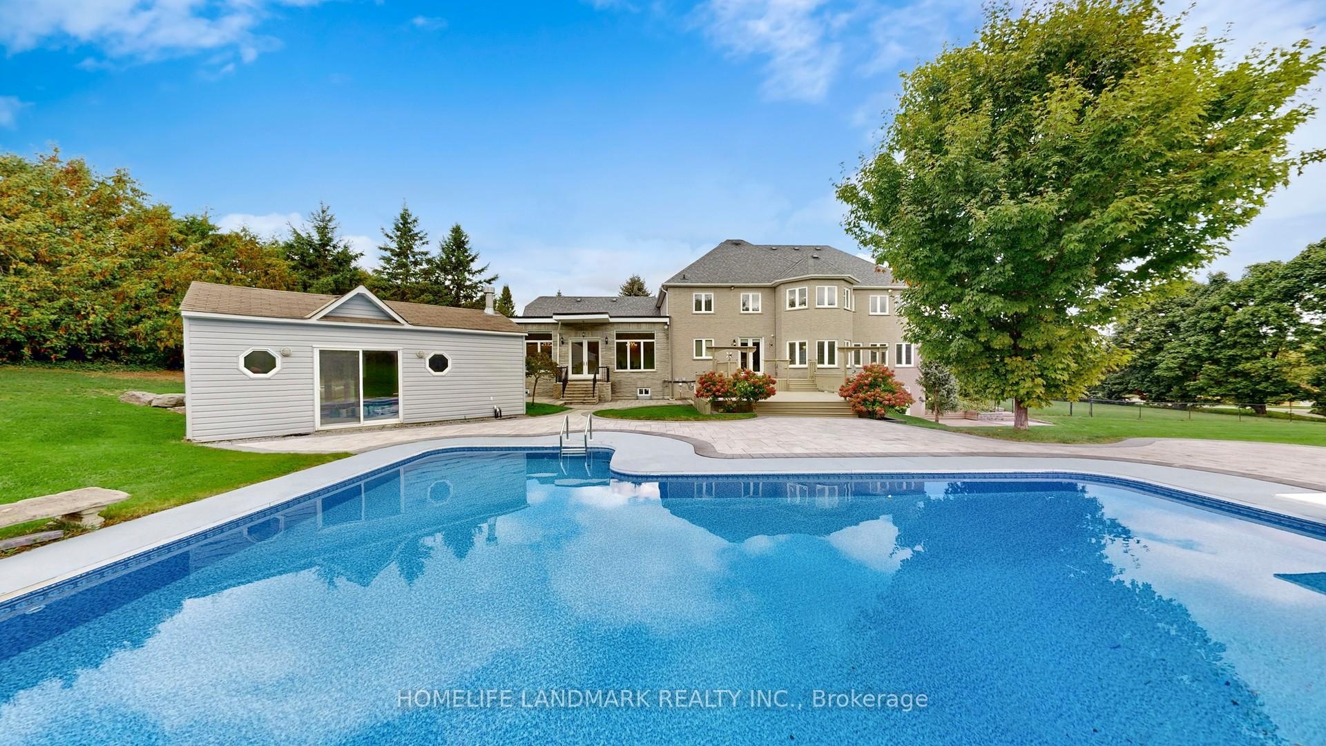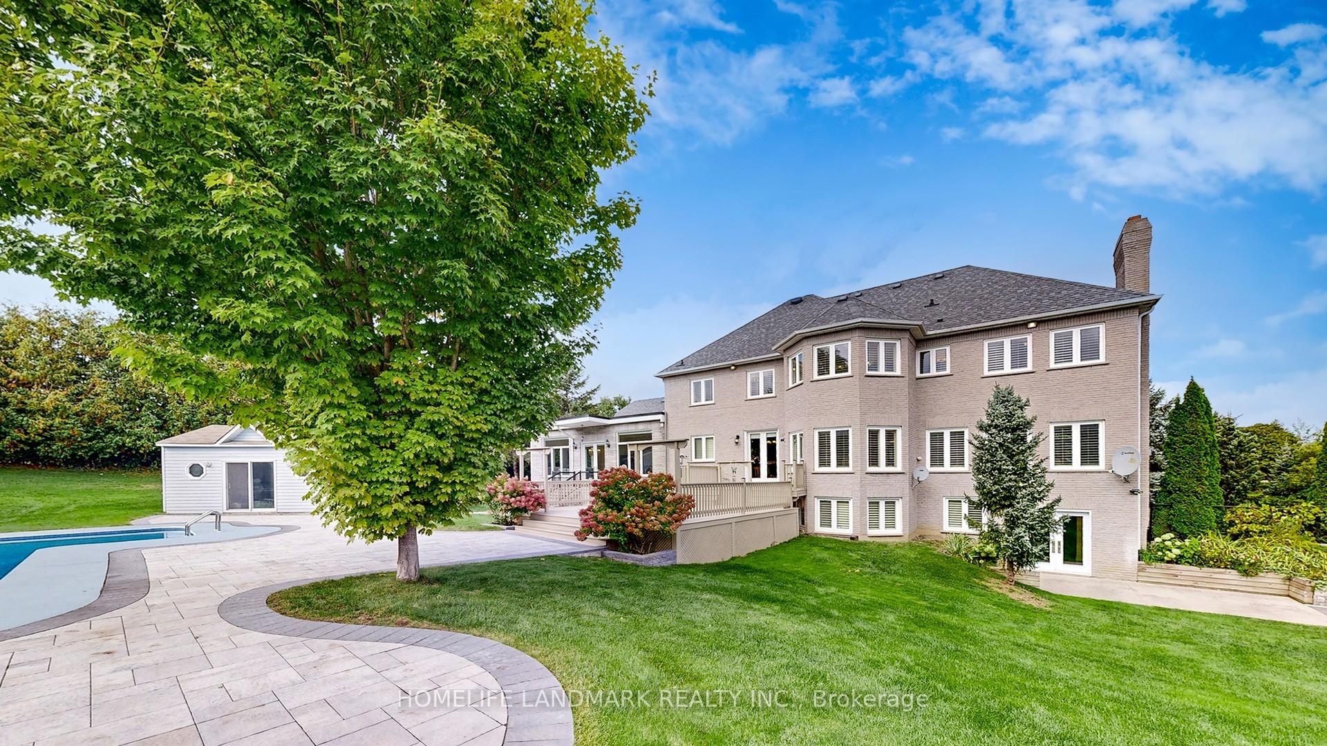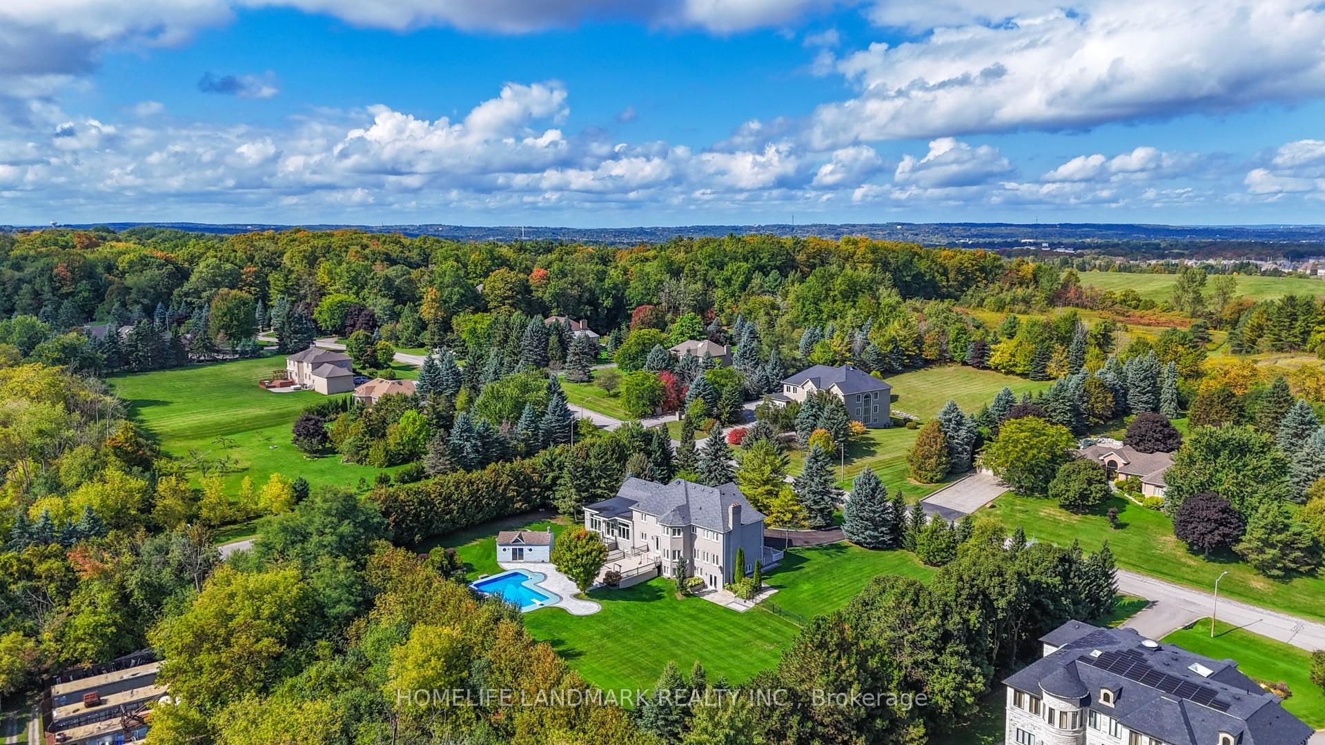 Exquisitely Stunning Executive Estate on a 1.77 Acre Expansive Private Grounds Surrounded by Mature Trees & Lush Greenery. Featuring over 6,500 Sq.Ft Living Space, this residence blends timeless craftsmanship w/ modern luxury, offering an entertainer's paradise inside & out. The Chef's kitchen is a cooking lover's dream. showcasing rich custom cabinetry, granite counters, A striking oversized center island. Undermount Sink, Tile Backsplash & Top Appls, A Showstopping butler's pantry w/ full-height custom cabinetry, open display shelving & wine lattice, granite counters & full-slab backsplash w/ beverage fridge & Bar sink & a sunlit arched Palladian window w/ plantation shutters over travertine marble floors. The sun-filled Great room w/ soaring ceilings, oversized windows, crystal chandeliers & W/O to garden. The Primary suite is a luxurious retreat offering a spacious bedroom, walk-in closet, and a spa-inspired ensuite with a frameless glass shower, freestanding tub, and dual vanities, All Embraced by resort-style south-facing views. The fully finished W/O Basement presents a private apartment-style setup, complete with a full second kitchen, expansive recretion area, games room. French Door provide a bright Walk-out to the backyard, making this level ideal for multi-generational living, guests or entertaining. Step outside to discover an extraordinary backyard oasis. A multi-level deck overlooks manicured gardens, stone patios, and a sparkling in-ground pool with an adjoining pool house. Towering trees and lush landscaping surround the property, offering both privacy and natural beauty. A three-car garage and extended driveway provide over 20 ample parking. Close to golf courses, trails, and shopping, this estate combines the best of elegance and modern convenience. A rare offering in an exclusive setting designed for refined living and unforgettable entertainment.