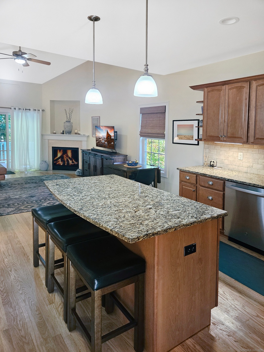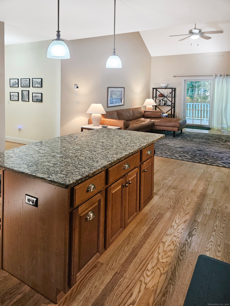 DescriptionWelcome to Northwoods of Colchester, Southeastern Connecticut's award-winning 55+ community! This immaculate detached single-family condo features 2 bedrooms, 2 bathrooms, a bright open floor plan, 9-foot ceilings, Harwood floors throughout and cathedral ceilings in the living room! The deck off the living space faces the woods giving tons of privacy! The gourmet kitchen includes a large island and breakfast bar with gorgeous granite counter tops, perfect for cooking and entertaining, while the cozy gas fireplace adds warmth and charm to the living space. Endless possibilities to expand with a walk-up attic already plumbed for an additional bathroom and plenty of space to finish, and a walkout basement that can also be finished! Have extra reassurance with a whole house generator hookup, new furnace, AC and hot water heater! An incredible walking trail is located right in the community! Siting at the end of a cul-de-sac, convenient to the center of town with shops, restaurants, and highway access, this will not last! A must see!Amenities- Bath Grab Bars