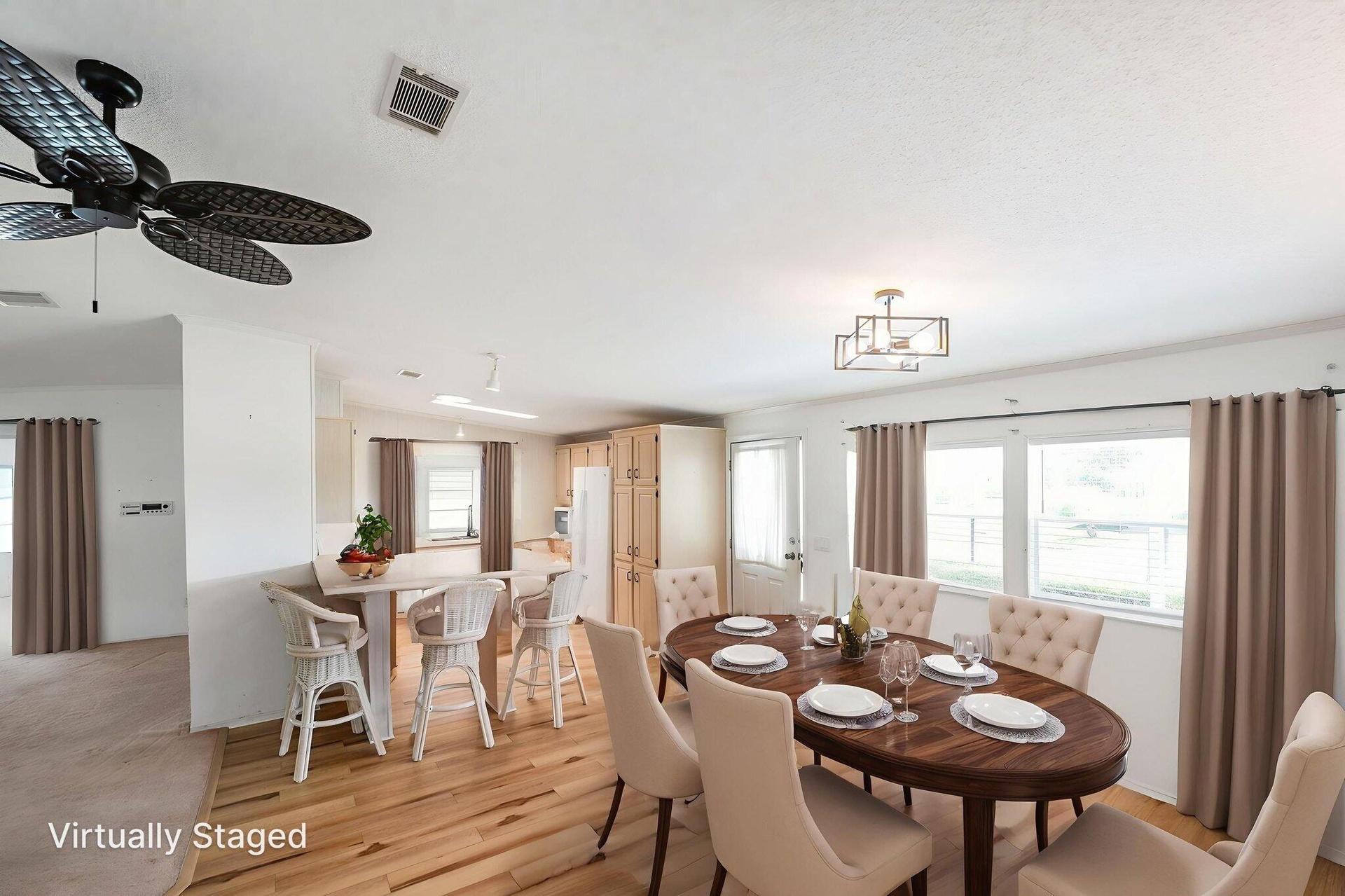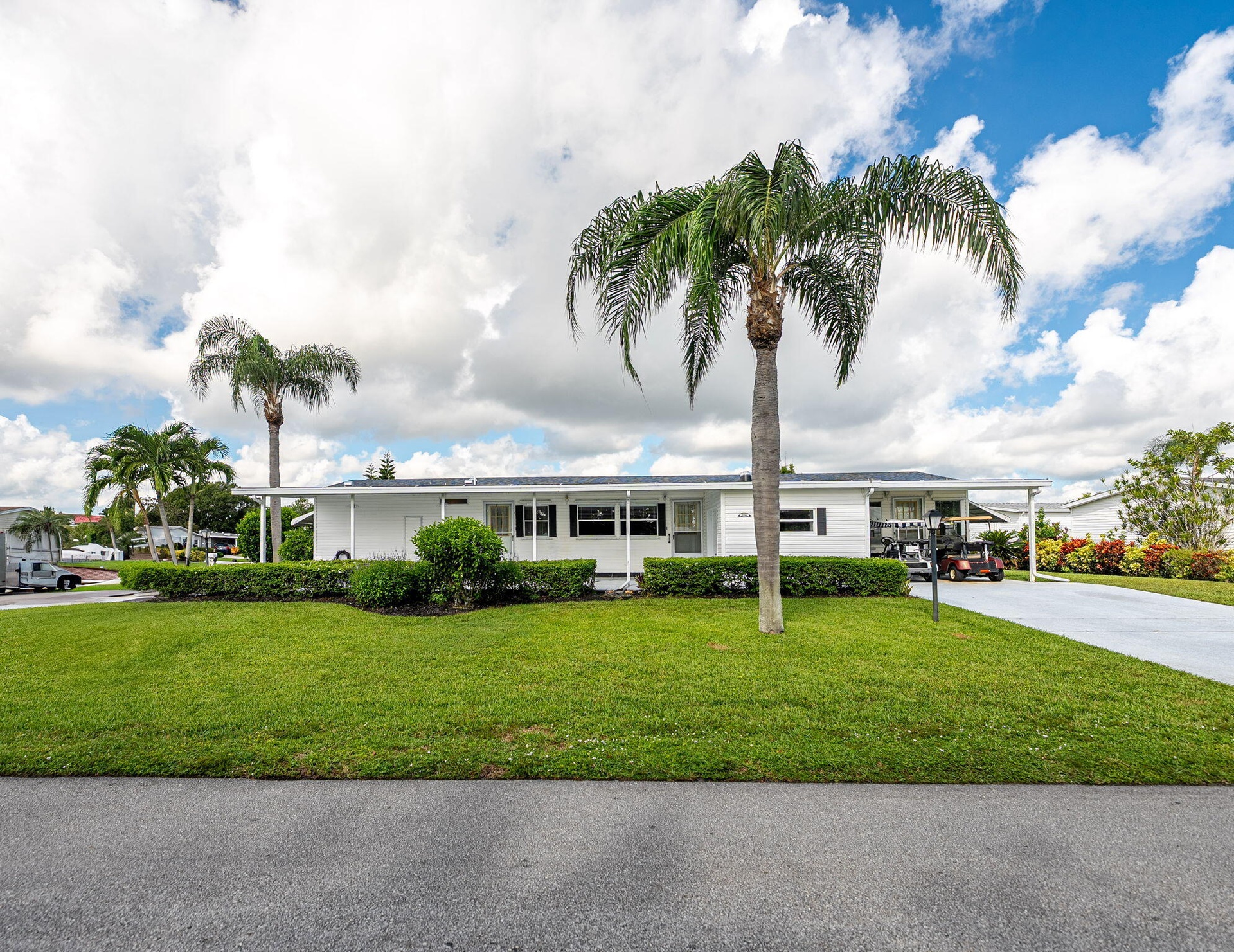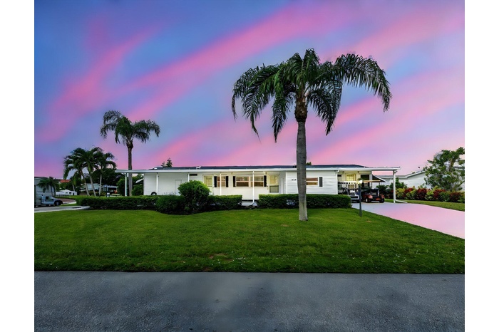 LAND OWNED! Spacious corner lot in a 55+ Community. Discover one of the largest homes in the neighborhood --light, bright, and move-in ready! Two driveways and a golf cart garage for ultimate convenience. Large patio and enclosed lanai perfect for relaxing or entertaining.Open floorplan with two expansive living areas. Immaculately clean and full of natural light. New Roof (2025) AC (2024) Water Heater (2023) All the big-ticket items are taken care of--just bring your suitcase and settle in!
