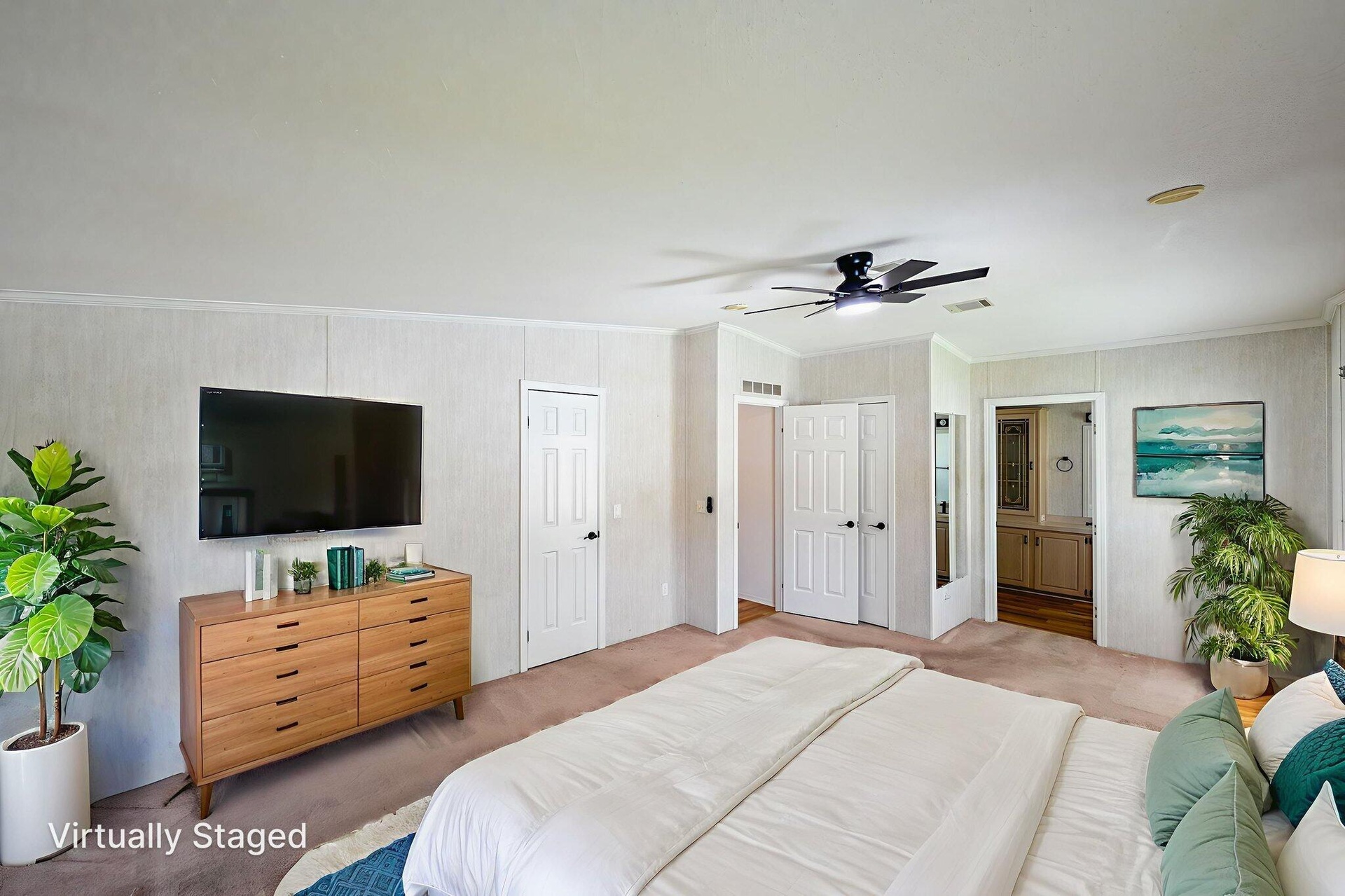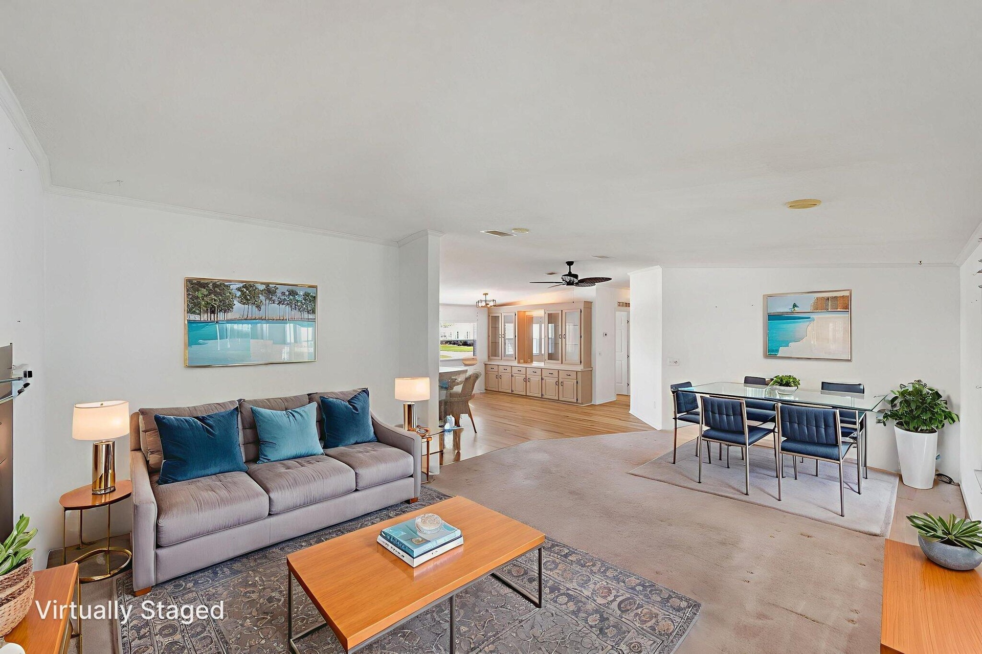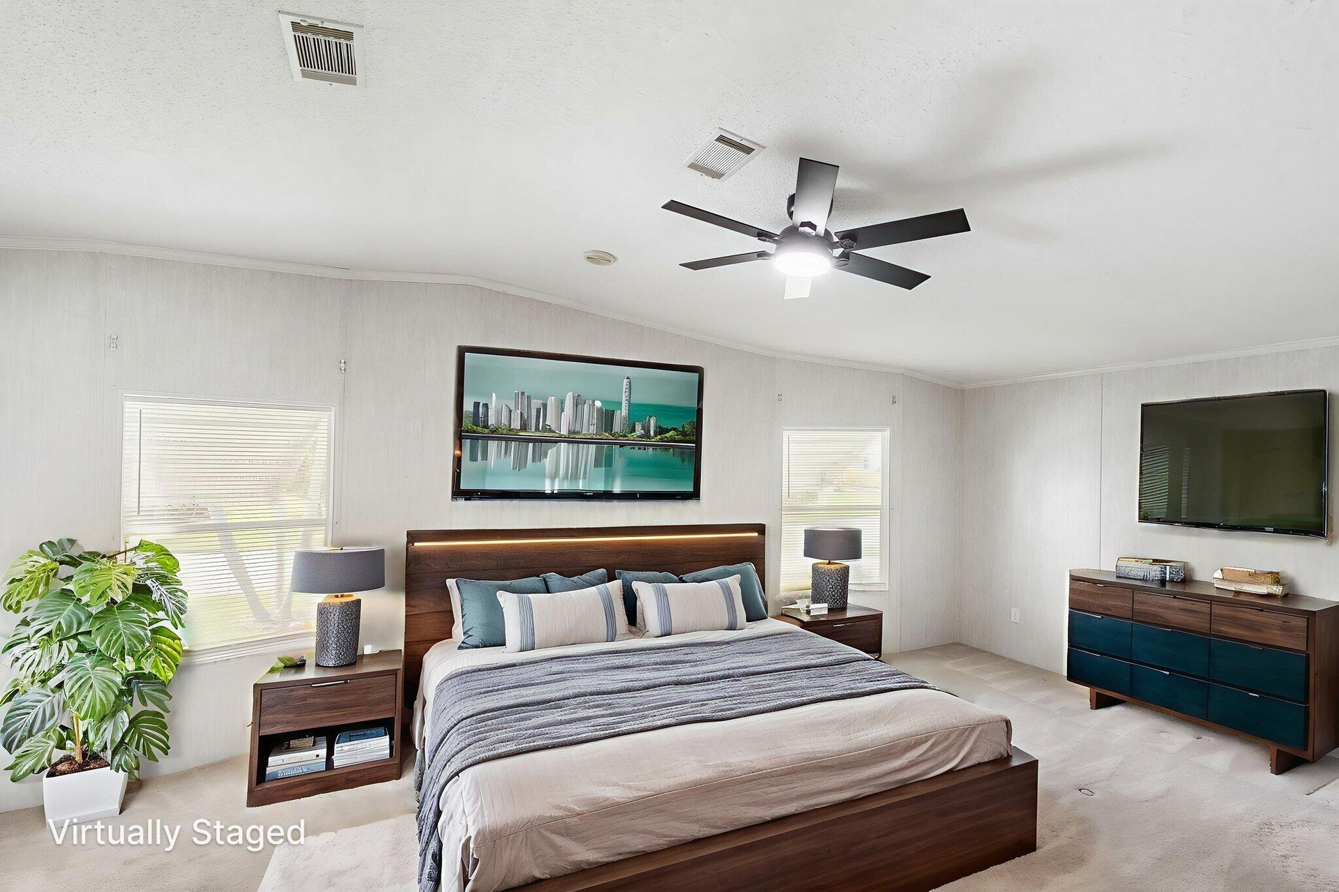 LAND OWNED! Spacious corner lot in a 55+ Community. Discover one of the largest homes in the neighborhood --light, bright, and move-in ready! Two driveways and a golf cart garage for ultimate convenience. Large patio and enclosed lanai perfect for relaxing or entertaining.Open floorplan with two expansive living areas. Immaculately clean and full of natural light. New Roof (2025) AC (2024) Water Heater (2023) All the big-ticket items are taken care of--just bring your suitcase and settle in!