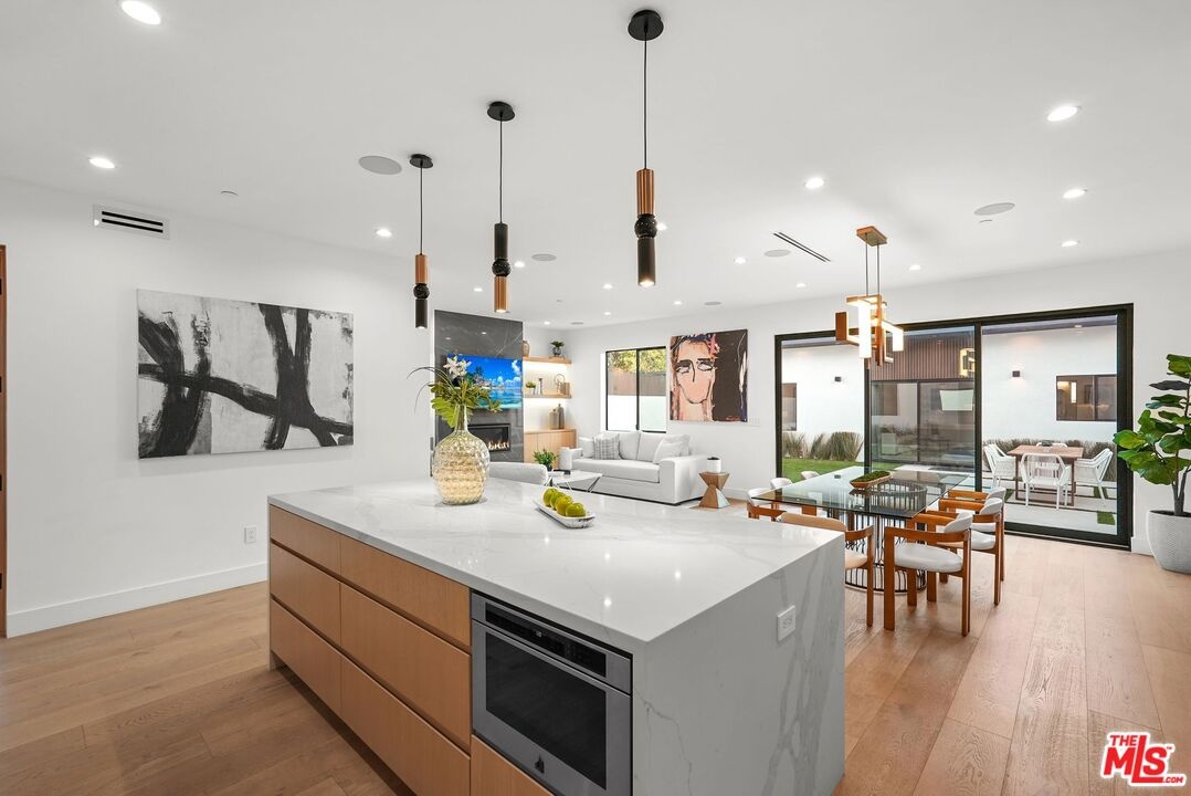 An inspired vision of harmony and design, this newly built (2022) organic modern masterpiece delivers a one-of-a-kind living experience in the heart of one of the most desired neighborhoods in Los Angeles, Del Rey. The open-concept floor plan is flooded with natural light, enhanced by soaring ceilings, and flows seamlessly to a private backyard oasis with an outdoor grille, perfect for outdoor entertaining and everyday living. Every detail of this fully automated smart home has been meticulously considered, from the European white oak floors and custom-built white oak cabinetry to the curated stone, tile, and high-end fixtures sourced from around the globe. The gourmet chef's kitchen boasts custom-paneled Jennair appliances and an oversized waterfall island that anchors the space with style and functionality. The main house offers 4 bedrooms and 4 artfully designed bathrooms, including a dreamy primary suite with a private balcony overlooking the backyard, a spacious walk-in closet, and a spa-like bath with dual vanity, soaking tub, and rain shower. Designed for modern living, the home is equipped with WiFi extenders for strong outdoor connectivity, solar panels on the roof, a multi-purpose laundry room with vast cabinet storage space, and an electric car charging port inside the garage. Additionally the beautifully crafted 1 bed, 1 bath ADU provides endless opportunities for guests, work, or rental income. Rarely does a home of this caliber become available in this highly desirable neighborhood. It is truly a retreat that balances luxury, technology, and timeless design.