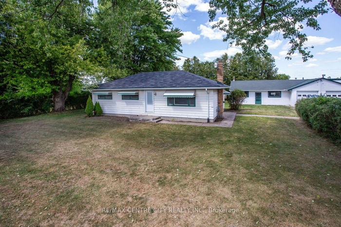 Don't Miss!! Minutes East of London! Enjoy country living with city convenience on this large .795-acre lot with 150 feet of frontage and beautiful views. This charming bungalow (1059 sqft MPAC) offers a practical layout with 3 bedrooms, a spacious country kitchen with walk-out to the rear deck, a newer 4-pc bath, forced-air gas heat, and a full basement with ample storage. Recent updates include some newer windows, doors, and a new roof (2022). As a bonus, the property includes a detached workshop/storage building, ideal for personal hobbies, tools, or recreational equipment. A long private driveway set back from the road provides plenty of parking and privacy. Quick possession available make this country property your next home! All measurements approximate.