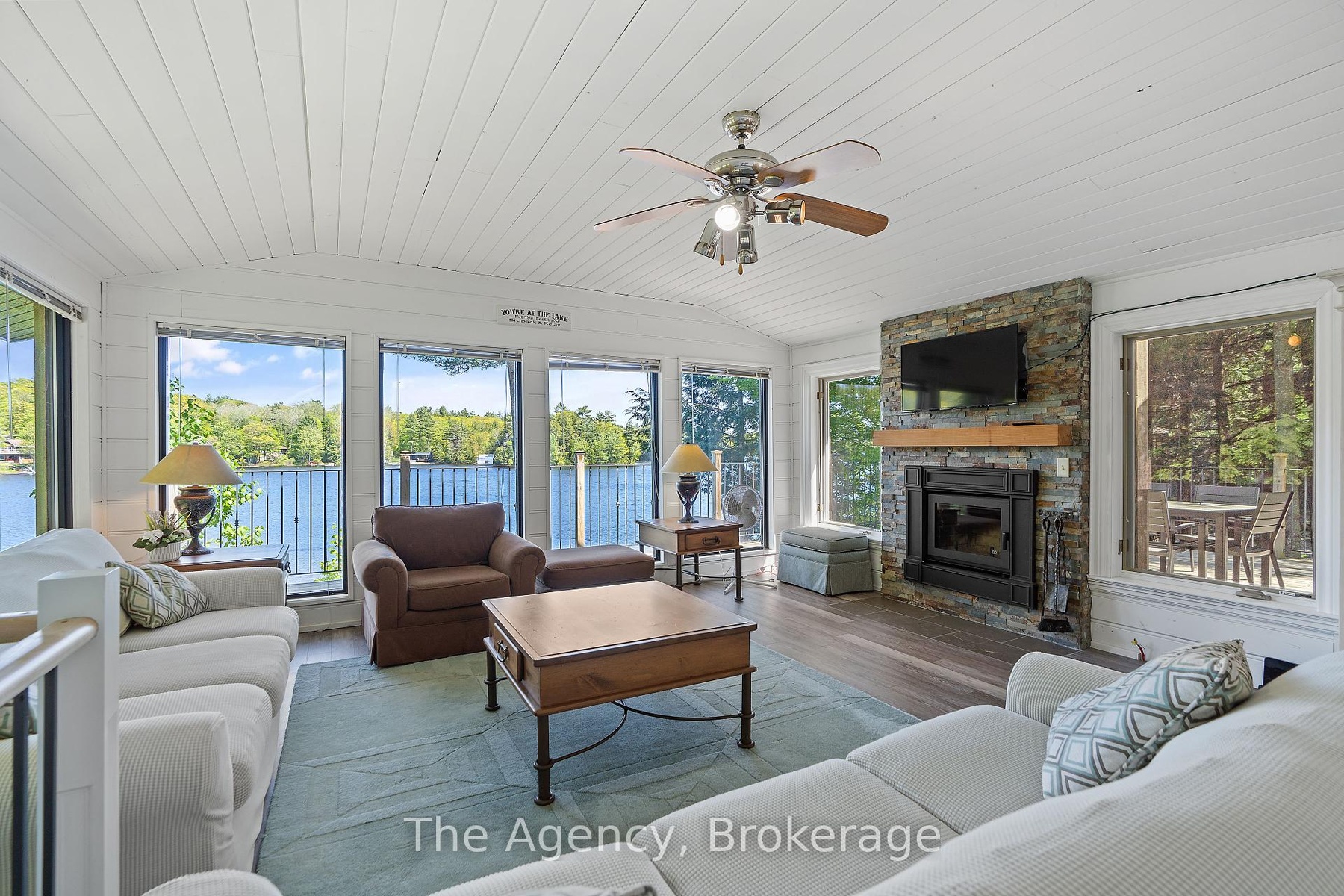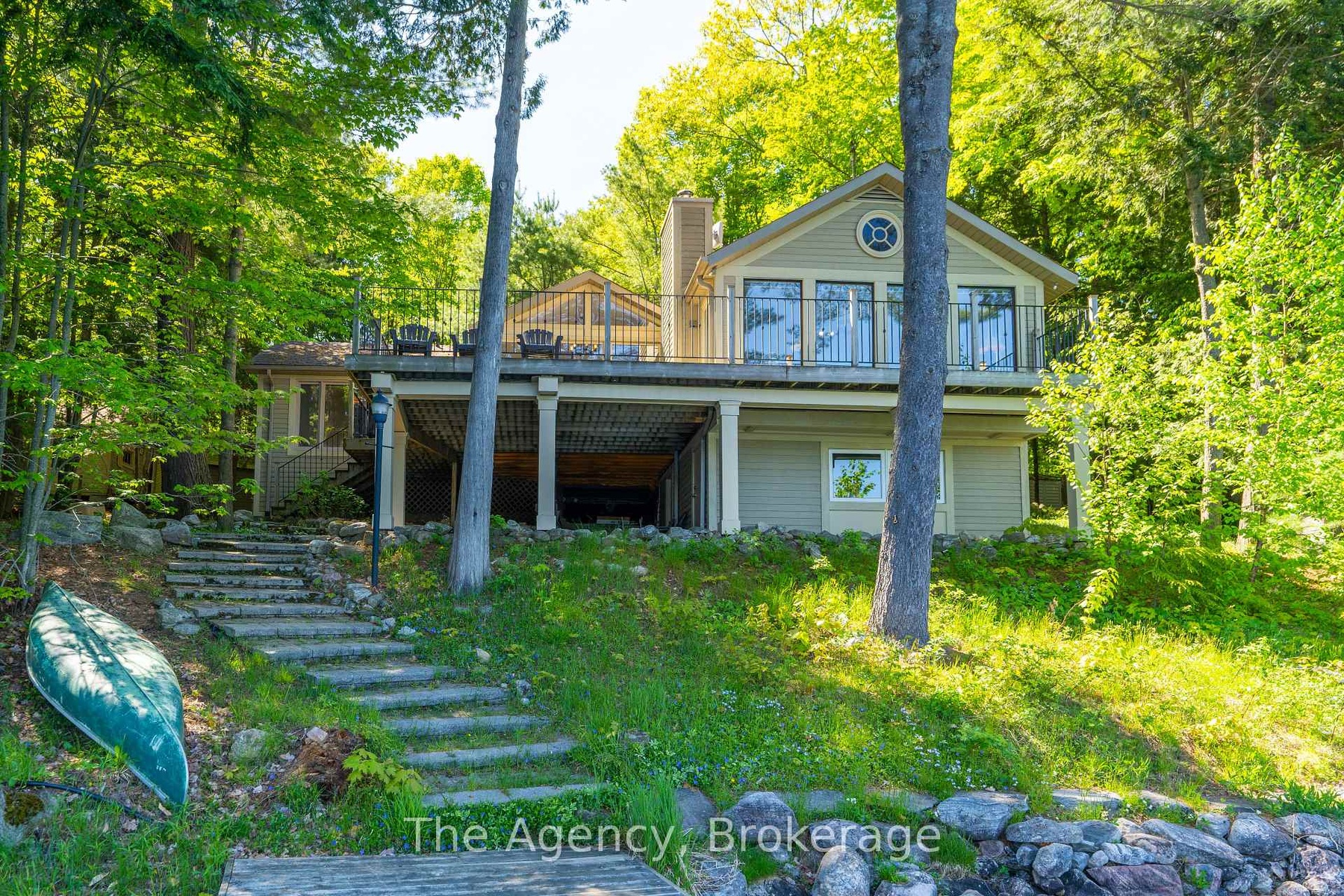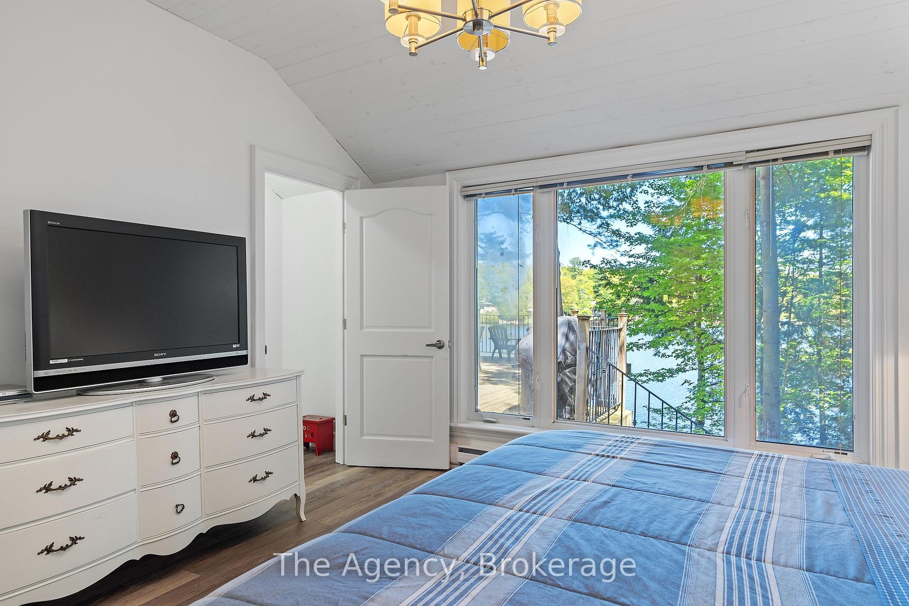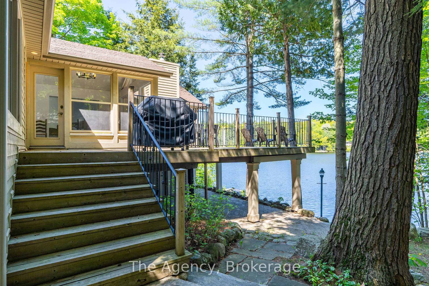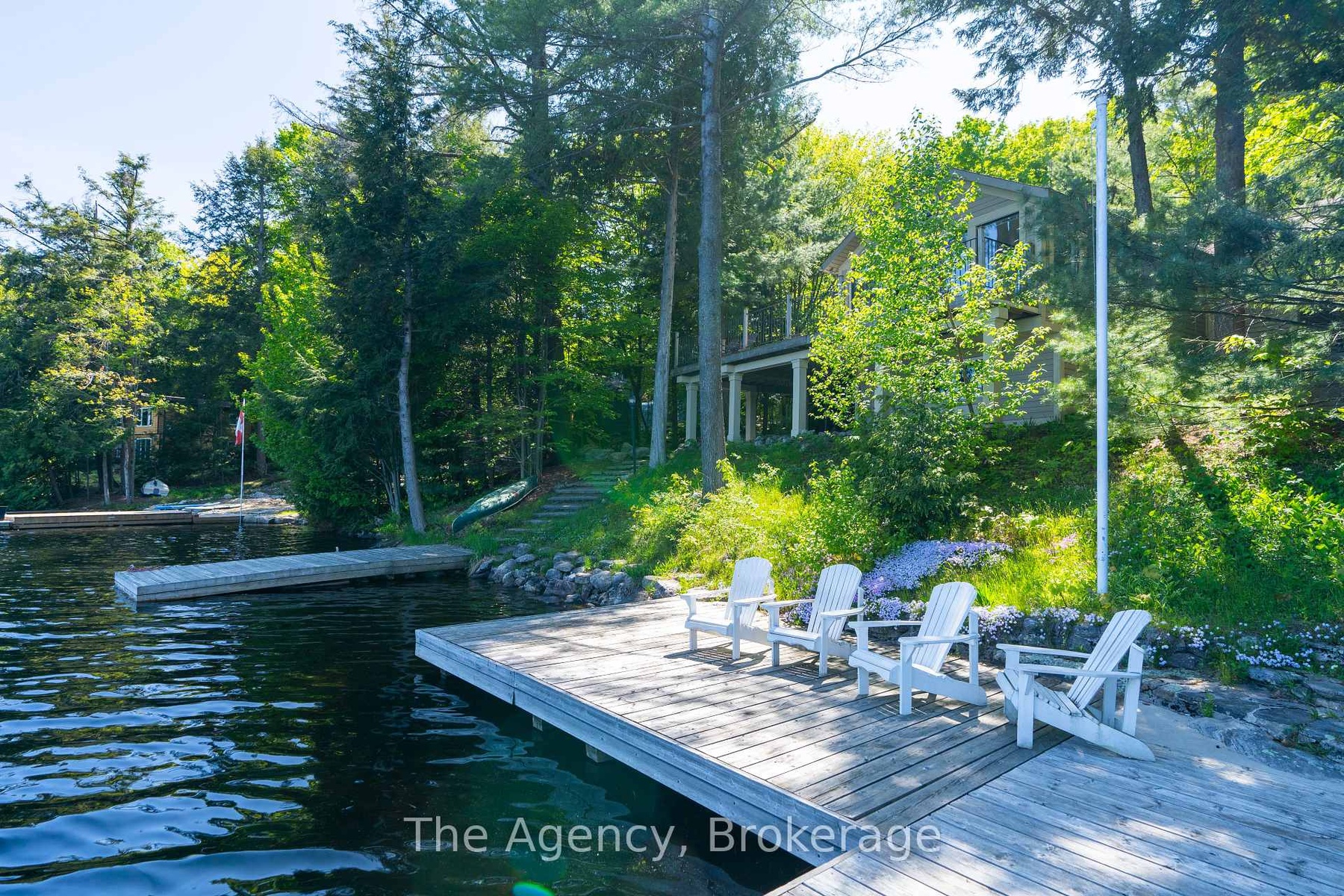 Welcome to this stunning 3-bedroom, 3-bath waterfront retreat on the shores of Bass Lake. Imagine enjoying family dinners in the inviting dining room or unwinding in the spacious living room, both offering picturesque views of the lake. The open-concept kitchen is perfect for entertaining, and the generous bedrooms include a master suite with breathtaking lake vistas. Start your mornings with a coffee on the dock as the sun rises, or host gatherings on the expansive wrap-around deck. With 108 feet of private waterfront with two docks this is the perfect waterfront home. Centrally located in the heart of Muskoka just minutes away from Port Carling and Port Sandfield.