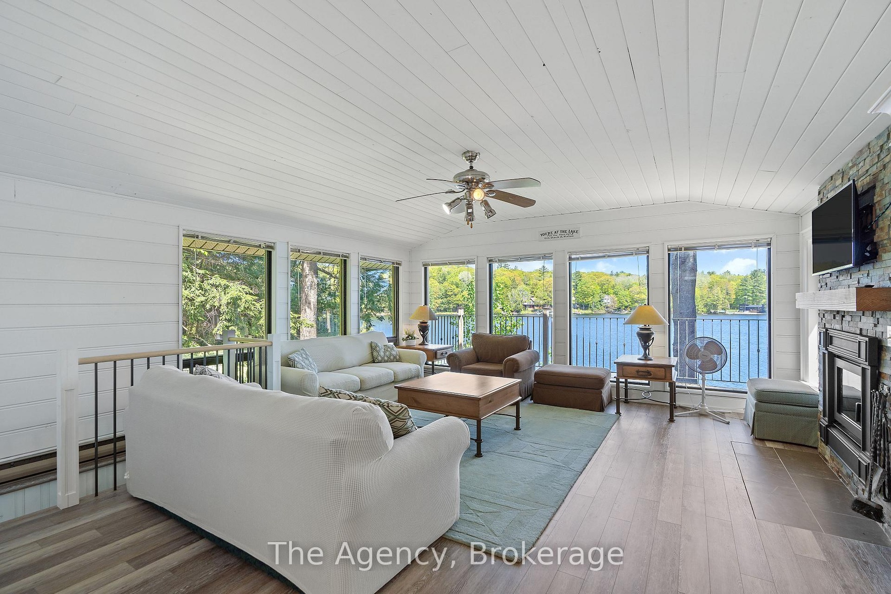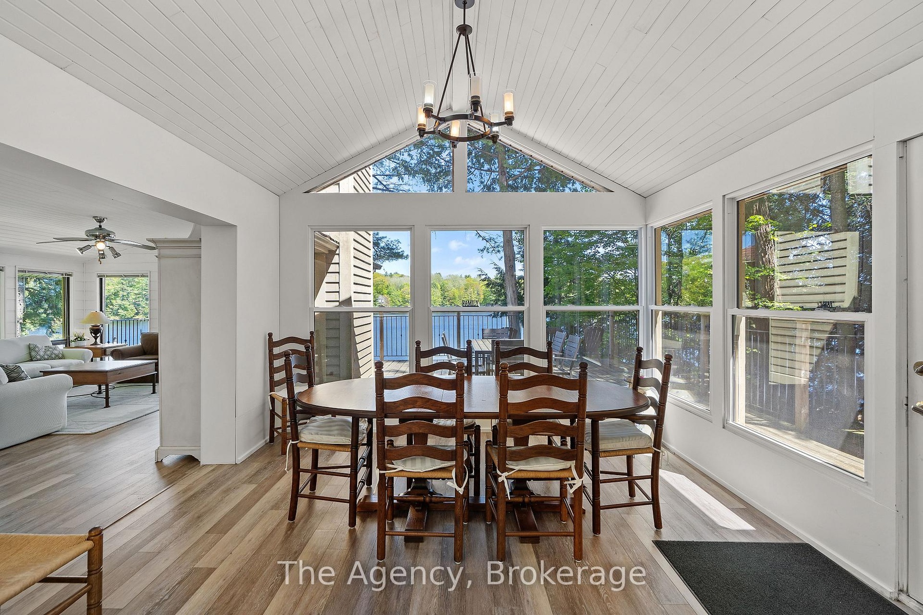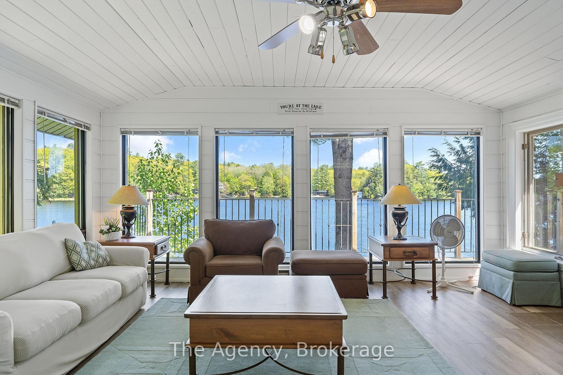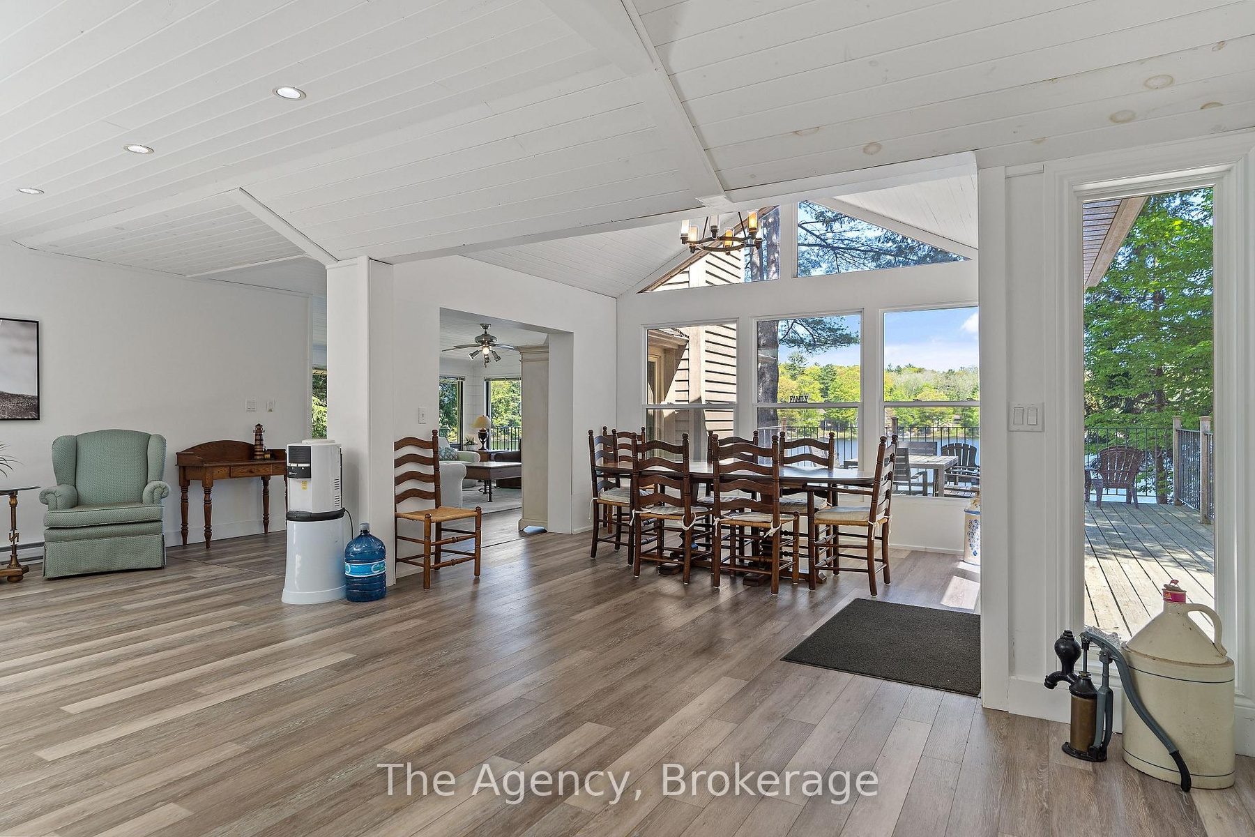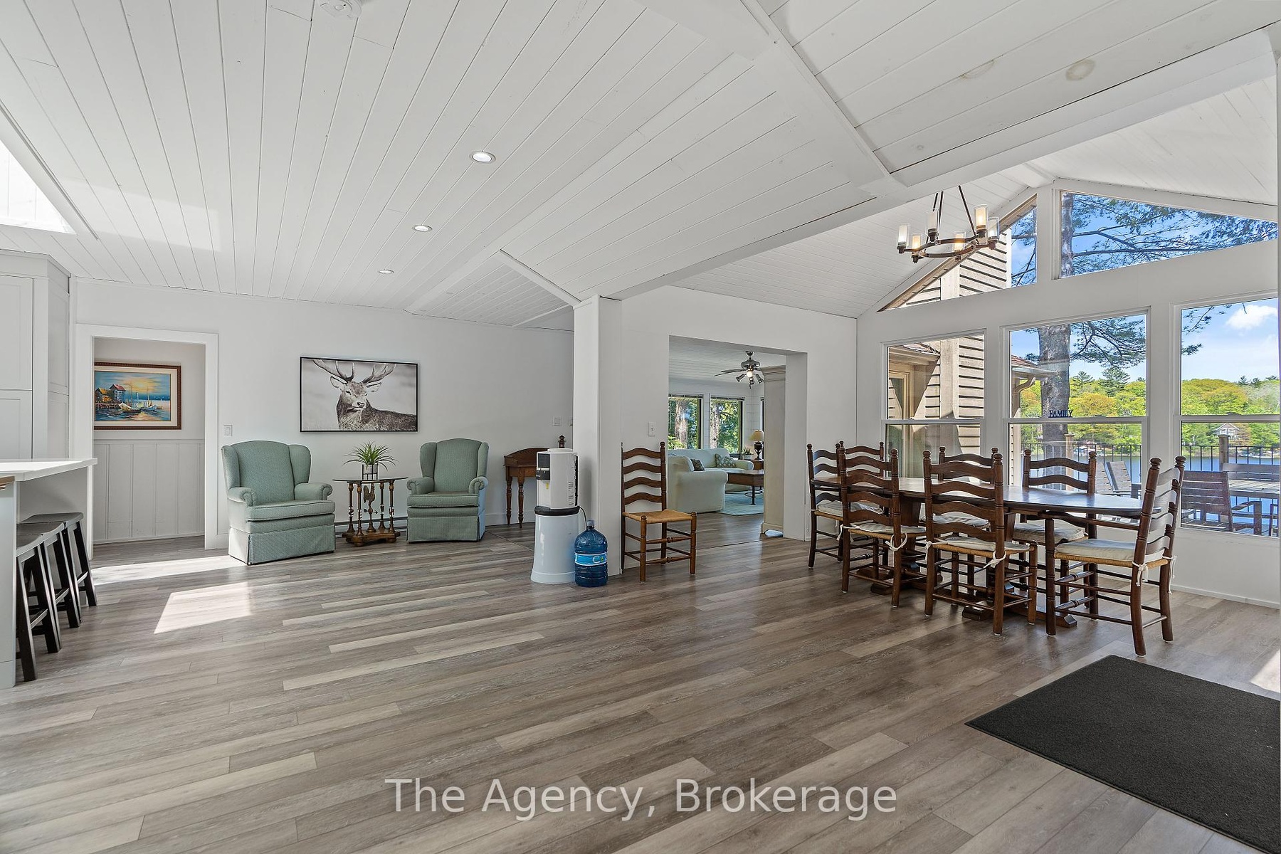 Welcome to this stunning 3-bedroom, 3-bath waterfront retreat on the shores of Bass Lake. Imagine enjoying family dinners in the inviting dining room or unwinding in the spacious living room, both offering picturesque views of the lake. The open-concept kitchen is perfect for entertaining, and the generous bedrooms include a master suite with breathtaking lake vistas. Start your mornings with a coffee on the dock as the sun rises, or host gatherings on the expansive wrap-around deck. With 108 feet of private waterfront with two docks this is the perfect waterfront home. Centrally located in the heart of Muskoka just minutes away from Port Carling and Port Sandfield.