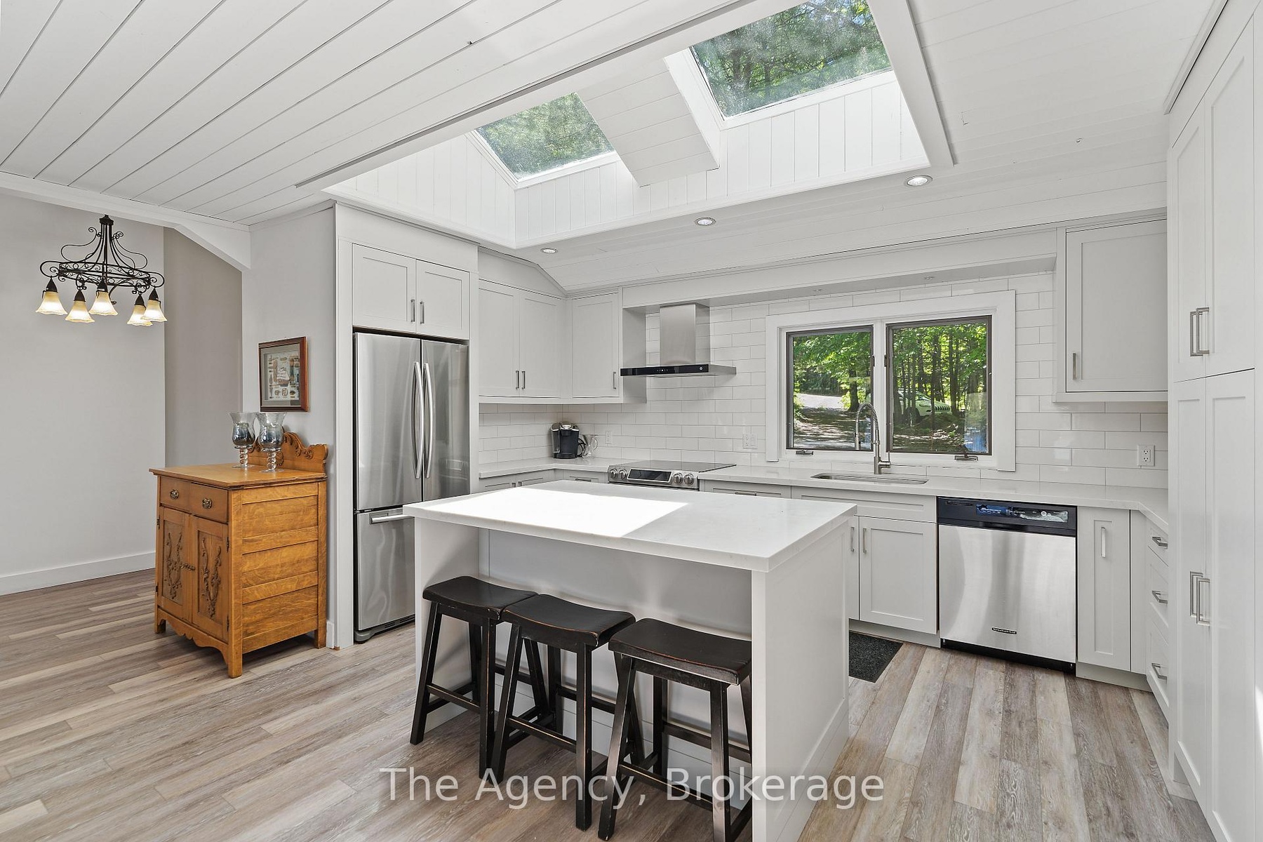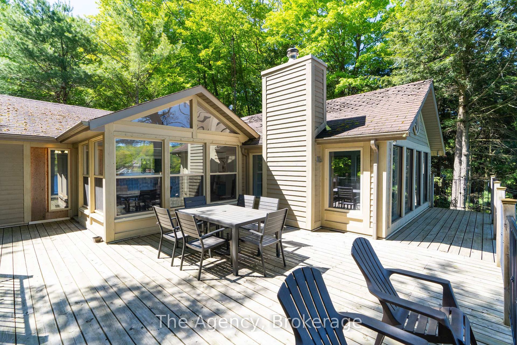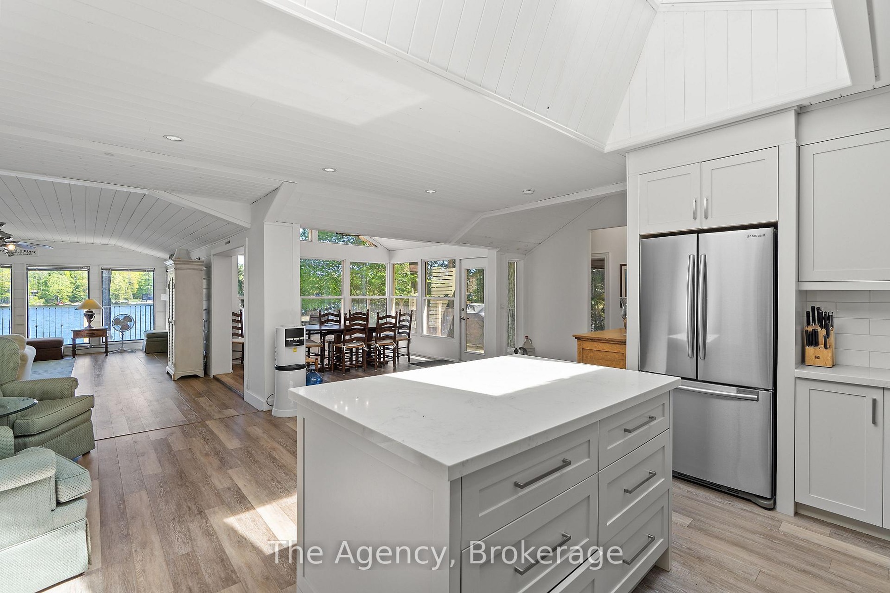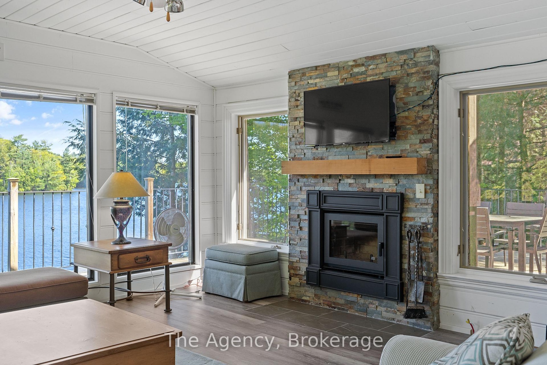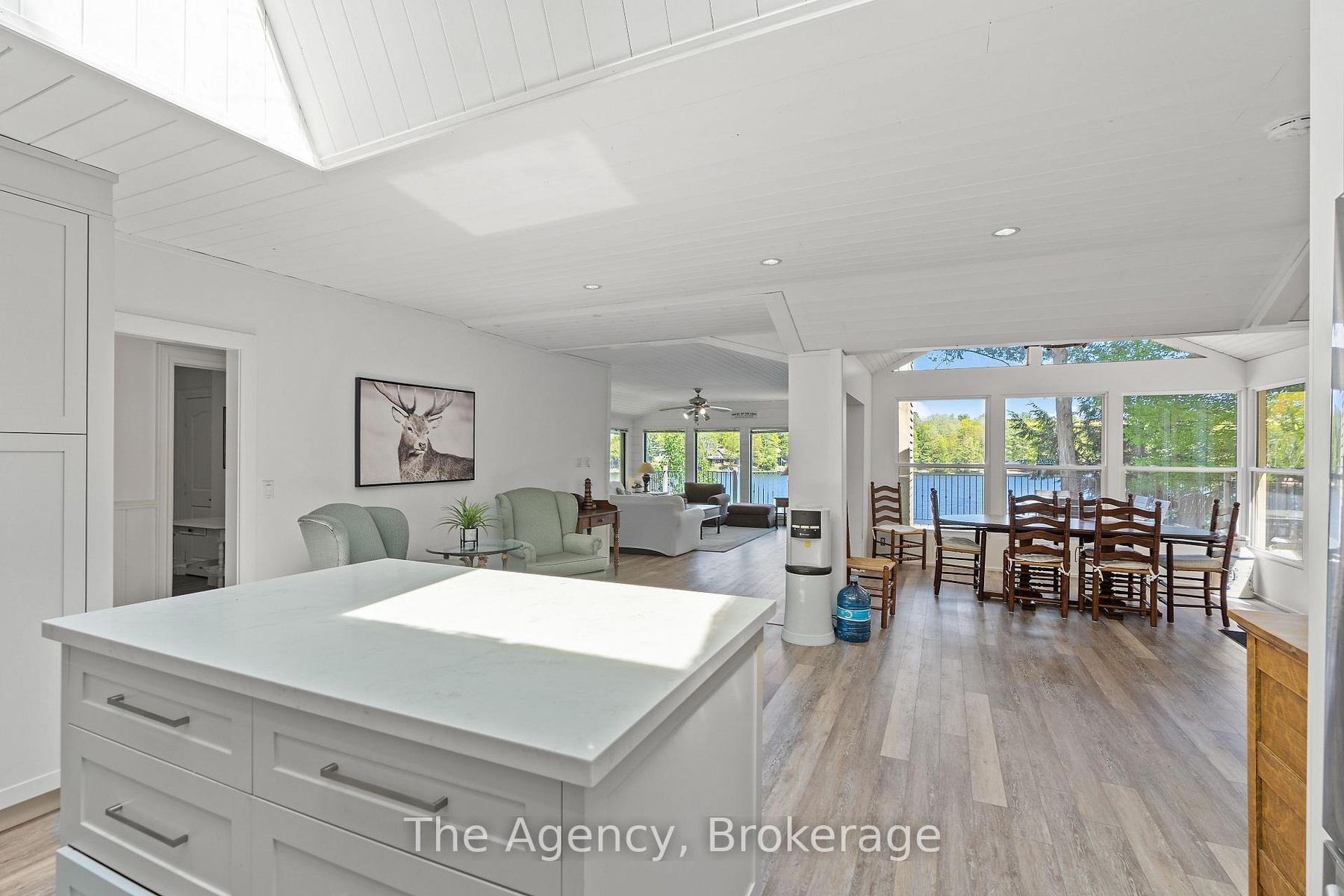 Welcome to this stunning 3-bedroom, 3-bath waterfront retreat on the shores of Bass Lake. Imagine enjoying family dinners in the inviting dining room or unwinding in the spacious living room, both offering picturesque views of the lake. The open-concept kitchen is perfect for entertaining, and the generous bedrooms include a master suite with breathtaking lake vistas. Start your mornings with a coffee on the dock as the sun rises, or host gatherings on the expansive wrap-around deck. With 108 feet of private waterfront with two docks this is the perfect waterfront home. Centrally located in the heart of Muskoka just minutes away from Port Carling and Port Sandfield.