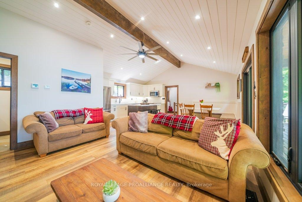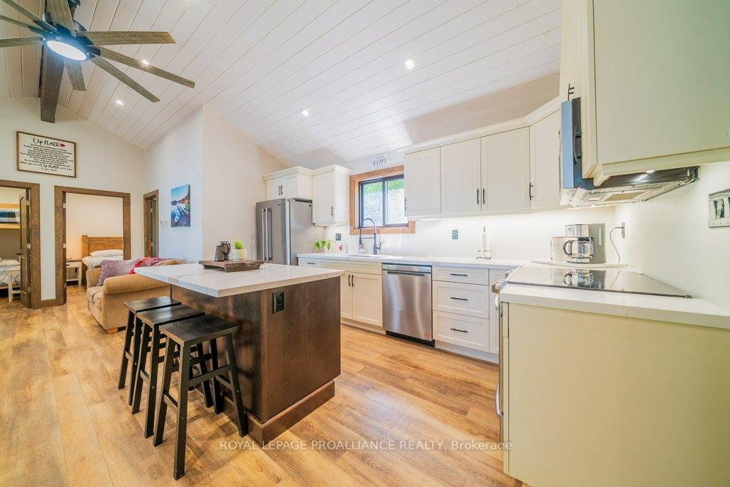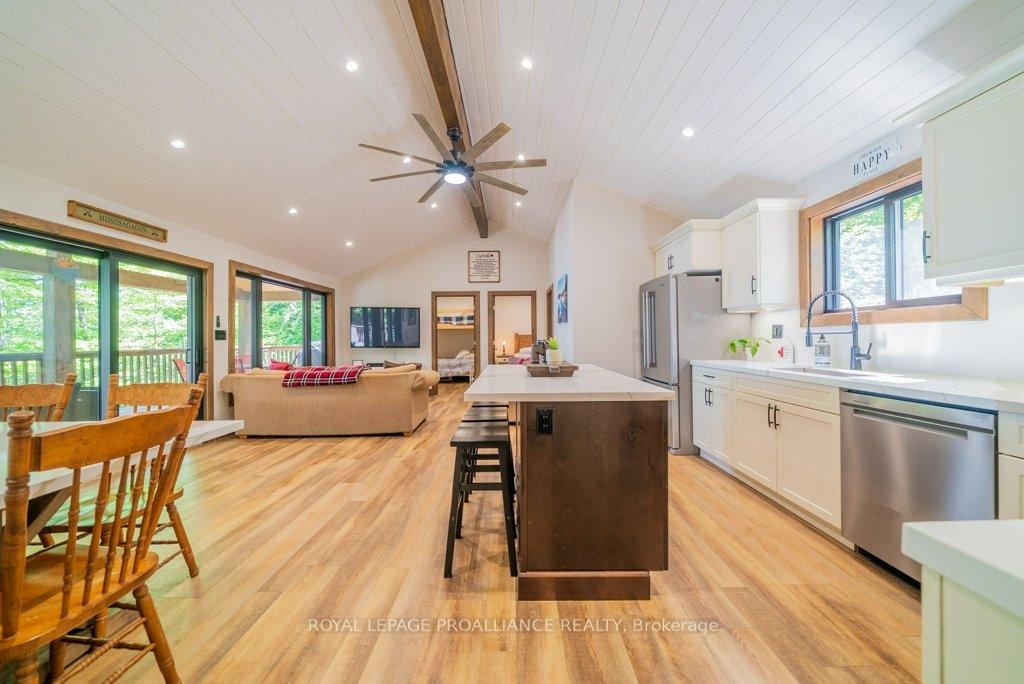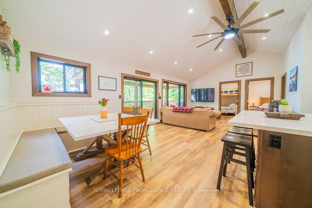 DescriptionWelcome to Mississagaon , a spring water lake with its unique blue / green waters recognised for its quality features an unspoiled shorelines and a tranquil setting that is true Canadiana. Enjoy quiet paddleboarding or show off your wakeboarding skills. The deep waters offer will intrigue anglers and the swimming is second to none. Tucked into a quiet bay with panoramic views you will take it all in from 1202 Rocky Lane. A naturally landscaped setting opens up to a completely renovated cottage home completed between 2022-2024 with a walkout basement and and expansive covered deck with vaulted ceilings that you won't ever want to leave. Perfect for families, the space is arranged both indoors and out for families to enjoy. Attention to a large family room and kitchen area to the lower walkout out and its rec room are easy gathering spots for friends and family at all ages to gather. Four convenient bedrooms and bathrooms on each level provide privacy and utility. The outdoor space is unique and designed for family fun amongst mature trees and unique rock formations. Get the group together and enjoy the sandy beach volley court, or the grassy area for your favorite outdoor games. Pick up your putter as you head toward the water and challenge your golf skills on this tiered putting green that will surely be a source of stories and fun. At the water a large fire pit is a positioned to take in panoramic views as you look down the lake, At night the stars are spectacular and yours to enjoy in a private setting. Back to the dock where you can dip your toes in and appreciate your accomplishments. An additional lot a short walk from the property is included - a great spot to consider a build for extended families or that workshop you have always wanted. Convenient access to to local amenities, trail systems this is a must see property. Welcome to the Land O' Lakes and this unique property on a spectacular lake.Amenities- Bay