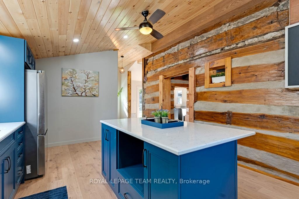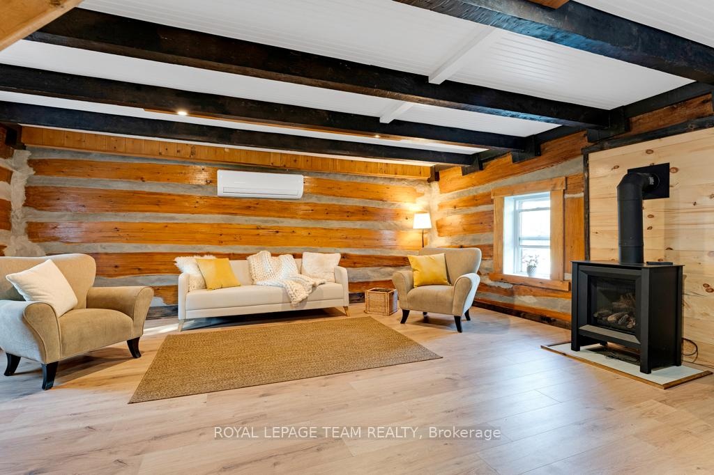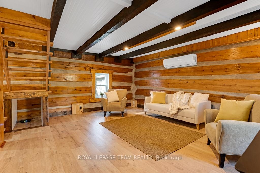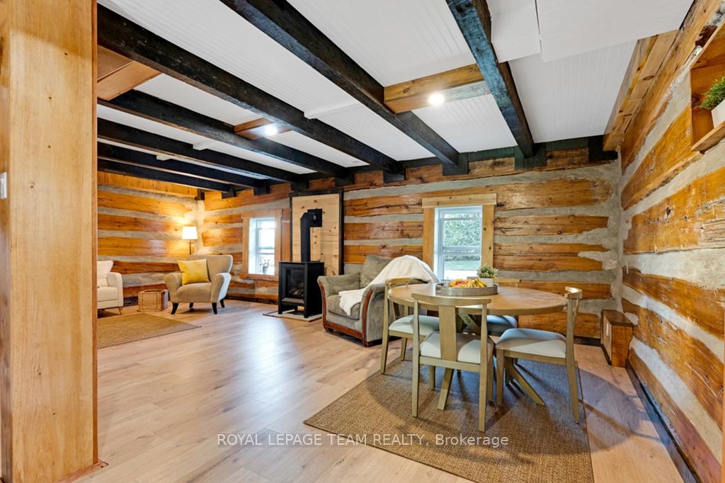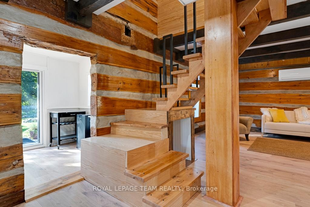DescriptionStep into timeless charm and modern comfort with this beautifully restored 1830s log home, located in the historic village of Merrickville. Known for its vibrant arts scene, quaint shops, and scenic waterways, Merrickville offers a unique blend of small-town charm and rich Canadian heritage and this exceptional property fits right in. Newly renovated , this spacious 2-bedroom, 1.5-bath home offers a seamless blend of original character and contemporary living. The heart of the home is a stunning new addition that enhances both form and function. Inside, you'll find exposed hand-hewn log walls, rustic beam accents, with a warm welcoming ambiance throughout. The custom-designed kitchen features modern cabinetry, quartz countertops, and updated appliances all perfectly balanced by the timeless charm of the log interior. The bright, open-concept living and dining area is ideal for both everyday living and entertaining. A conveniently located powder room and main floor laundry area adds modern convenience without compromising the historic character. Upstairs, two bedrooms provide cozy retreats, while the full bathroom is tastefully renovated with classic finishes that nod to the homes roots. Every detail has been thoughtfully curated to maintain the authenticity of the outside. Enjoy a beautifully maintained backyard featuring a concrete patio surrounded by perennial gardens and mature greenery. Two large sheds offer ample outdoor storage. Impressive 26 x 30 detached insulated garage/workshop includes an 8 x 8 workbench, full sub panel, new garage door, and automatic opener, perfect for creative projects or a home-based business. Additional upgrades include a steel roof, energy-efficient heat pump, cozy propane stove for those cooler evenings, and fully updated plumbing, electrical, and septic tank. Just minutes to Merrickville's historic downtown, restaurants, shops and the Rideau Canal, this turnkey home is perfect for those seeking character and comfort.Virtual Tour: https://my.matterport.com/show/?m=xtpdejZvs9YAmenities- Garden