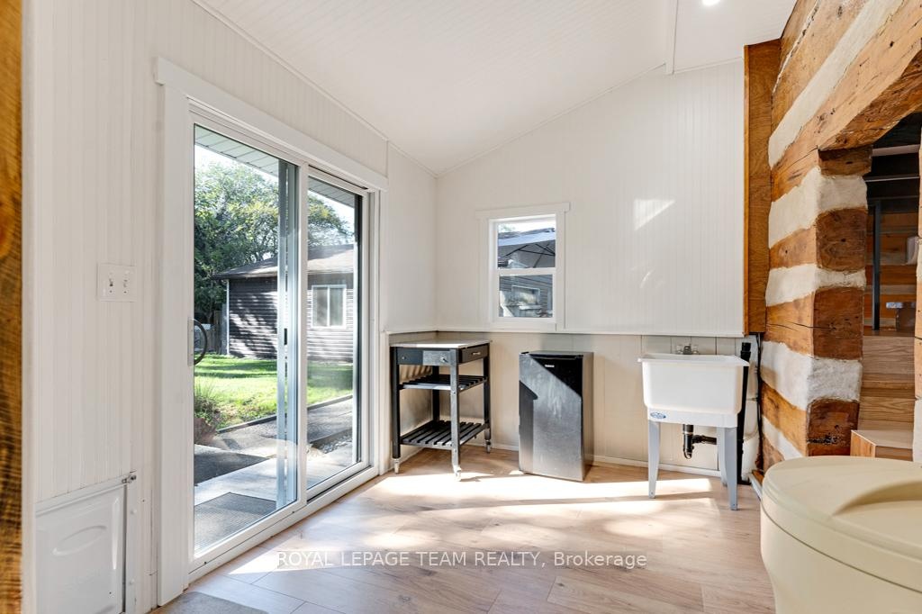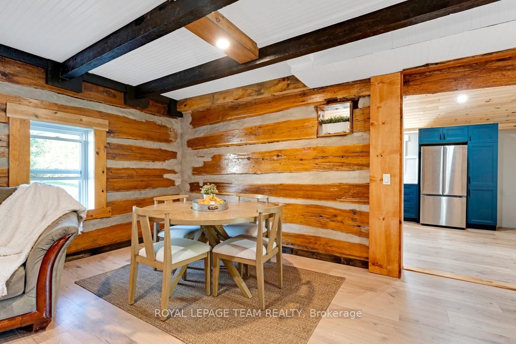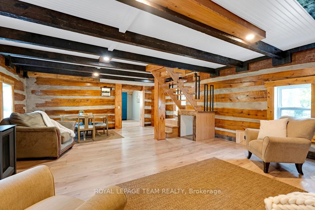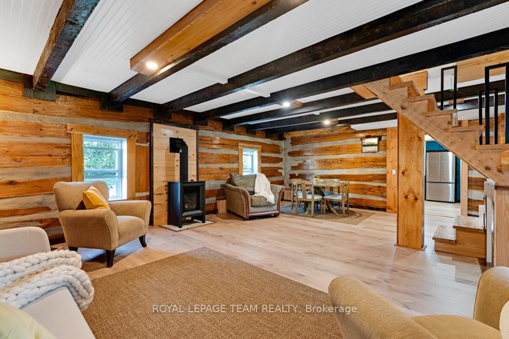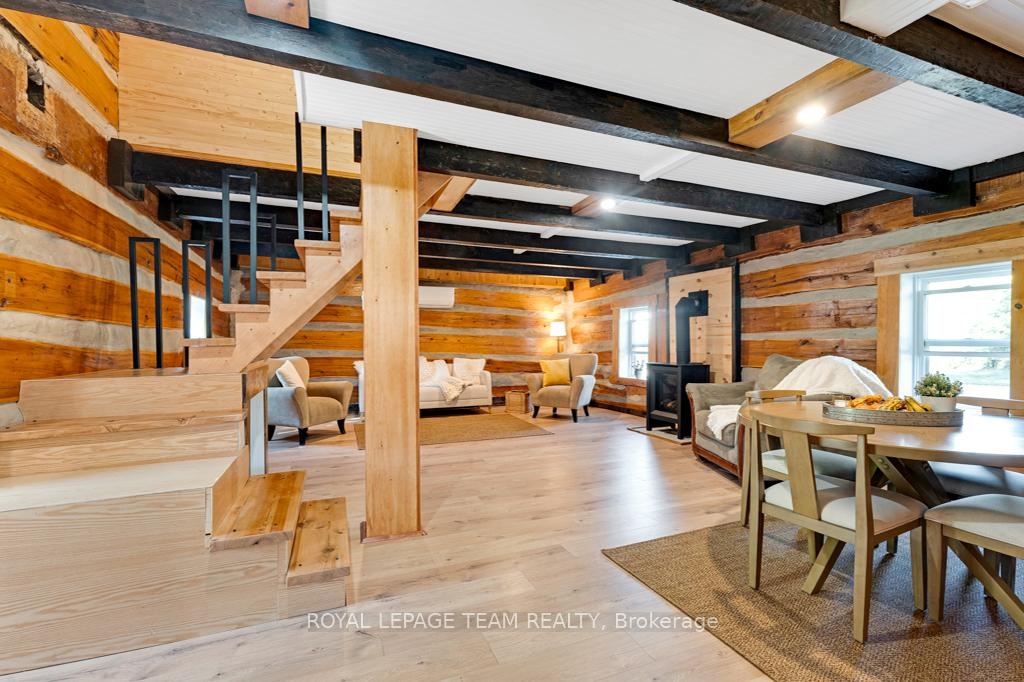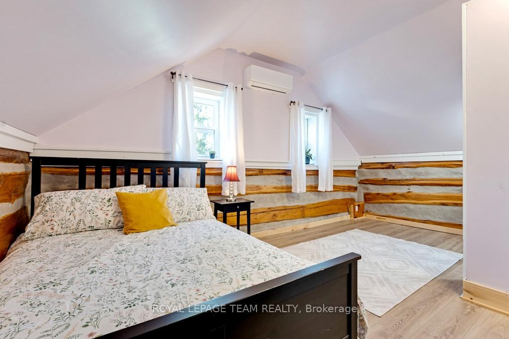 DescriptionStep into timeless charm and modern comfort with this beautifully restored 1830s log home, located in the historic village of Merrickville. Known for its vibrant arts scene, quaint shops, and scenic waterways, Merrickville offers a unique blend of small-town charm and rich Canadian heritage and this exceptional property fits right in. Newly renovated , this spacious 2-bedroom, 1.5-bath home offers a seamless blend of original character and contemporary living. The heart of the home is a stunning new addition that enhances both form and function. Inside, you'll find exposed hand-hewn log walls, rustic beam accents, with a warm welcoming ambiance throughout. The custom-designed kitchen features modern cabinetry, quartz countertops, and updated appliances all perfectly balanced by the timeless charm of the log interior. The bright, open-concept living and dining area is ideal for both everyday living and entertaining. A conveniently located powder room and main floor laundry area adds modern convenience without compromising the historic character. Upstairs, two bedrooms provide cozy retreats, while the full bathroom is tastefully renovated with classic finishes that nod to the homes roots. Every detail has been thoughtfully curated to maintain the authenticity of the outside. Enjoy a beautifully maintained backyard featuring a concrete patio surrounded by perennial gardens and mature greenery. Two large sheds offer ample outdoor storage. Impressive 26 x 30 detached insulated garage/workshop includes an 8 x 8 workbench, full sub panel, new garage door, and automatic opener, perfect for creative projects or a home-based business. Additional upgrades include a steel roof, energy-efficient heat pump, cozy propane stove for those cooler evenings, and fully updated plumbing, electrical, and septic tank. Just minutes to Merrickville's historic downtown, restaurants, shops and the Rideau Canal, this turnkey home is perfect for those seeking character and comfort.Virtual Tour: https://my.matterport.com/show/?m=xtpdejZvs9YAmenities- Garden