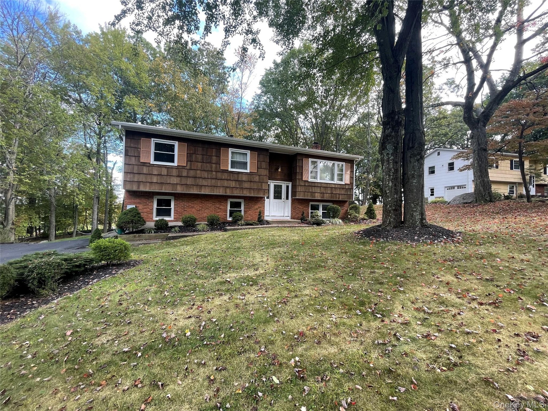 - Split foyer home featuring a front lawn and brick siding