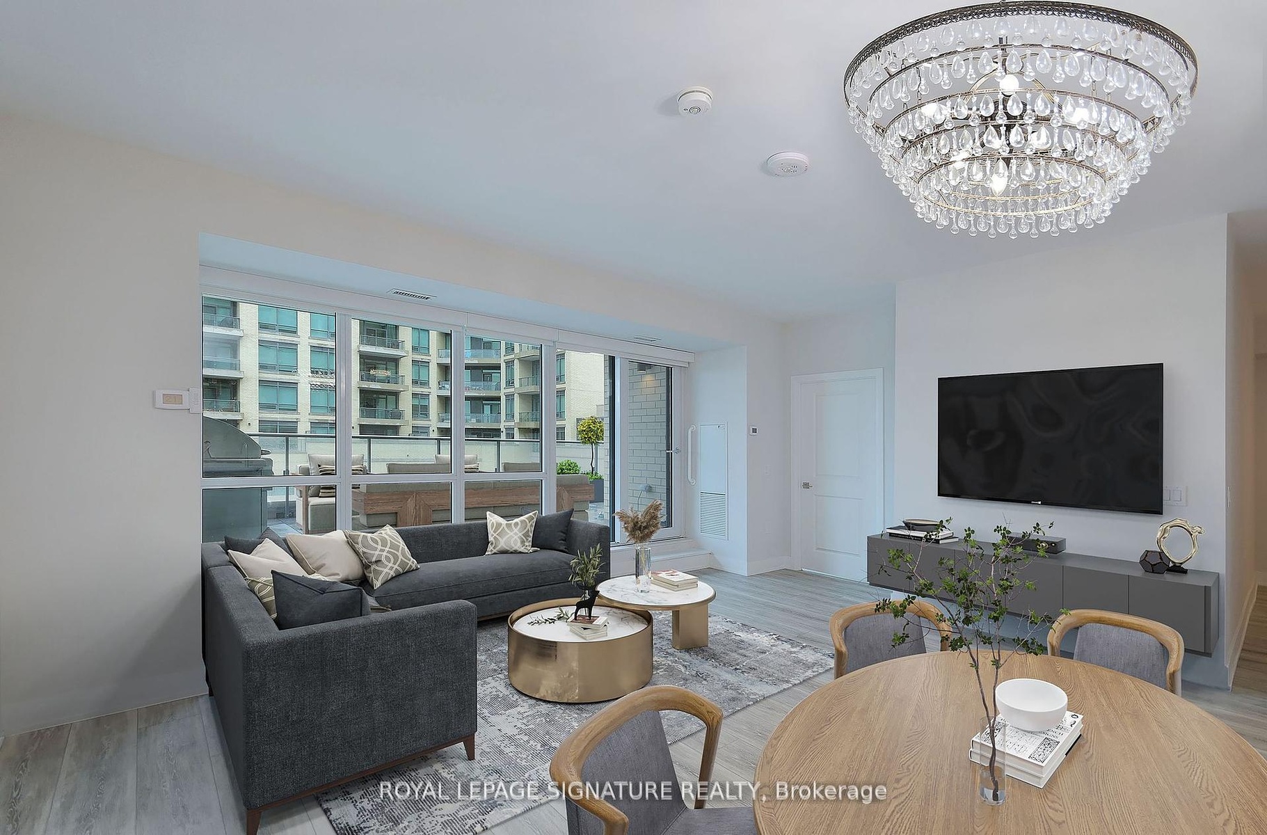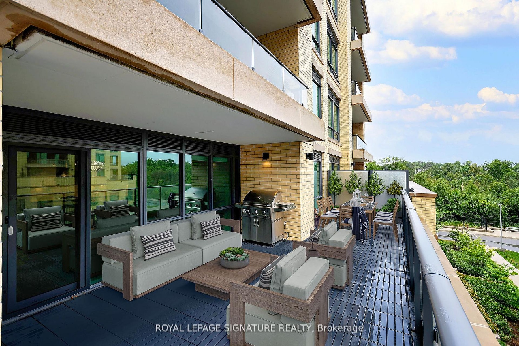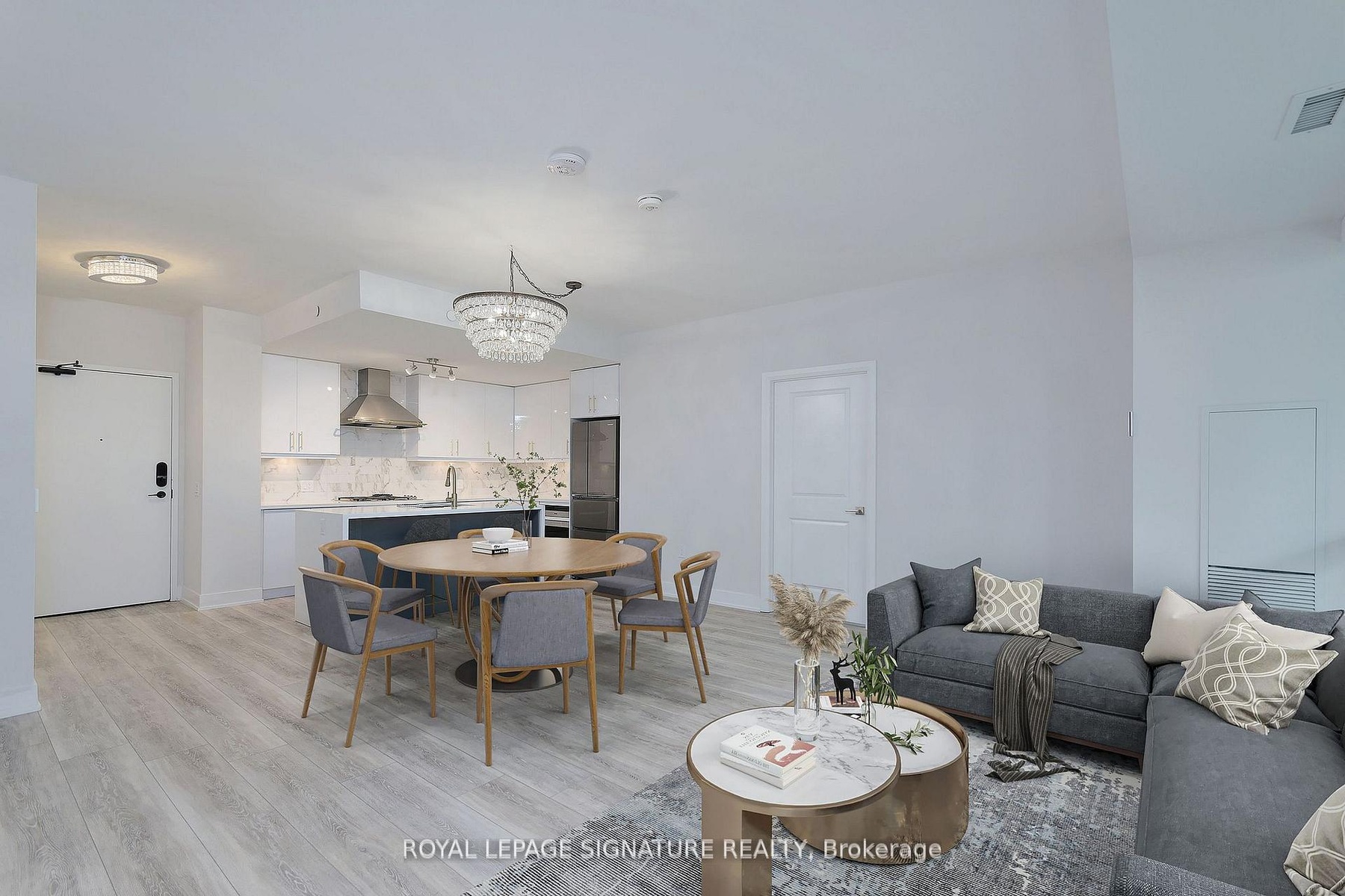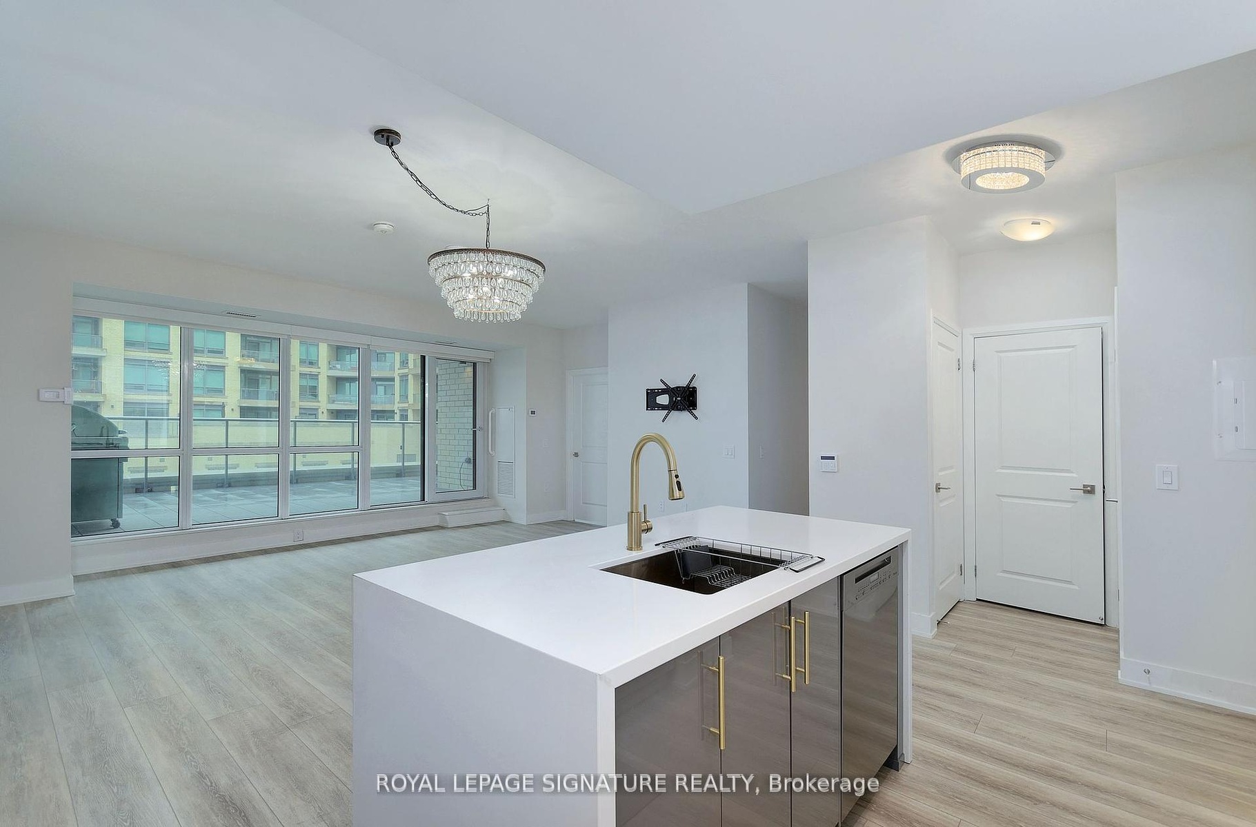 Welcome To 9th & Main Condos + Towns By Pemberton Group, Built In 2023. This Bright And Inviting Condo Offers 1,290 S.F. Of Thoughtfully Designed Living Space, Featuring 2 Spacious Bedrooms, A Full-Size Den, 2 Luxurious Full Bathrooms, Walk-In Closets, And A Stylish Powder Room, Totaling 3 Bathrooms. This Suite Perfectly Balances Comfort And Sophistication With Soaring 9-Foot Ceilings And Premium 8 7/8 Luxury Vinyl Plank Flooring Flowing Seamlessly Throughout. The Sleek, Chef-Inspired Kitchen Is A Showstopper With UPGRADED HIGH-END APPLIANCES, Including A Built-In Oven, Gas Cooktop, Built-In Dishwasher, A Handle less Vacuum Sealing Drawer, A Built-In Microwave/Convection Drawer, And A Showpiece Hood Fan. More Upgrades Include Beautiful Calcutta Backsplash, Caesarstone Countertops, A Two-Sided Waterfall Center Island With A Large Stainless Steel Undermount Sink, All Upgraded Hardware, Upgraded Soft-Close Cabinetry, And Ample Storage, All Adding To This High-End Kitchen Appeal. STEP OUTSIDE TO YOUR EXPANSIVE TERRACE, SPANNING NEARLY 500 SQ FT (VALUE 40K), Complete With A Gas BBQ Hookup And Water Access For Your Plants Ideal For Entertaining Or Relaxing. Enjoy The Convenience Of 2 PARKING SPOTS (VALUE 60K), A LOCKER ON YOUR FLOOR, And A Smart Suite Latch Door Lock Feature To Further Elevate Your Everyday Living Experience. Exceptional Building Amenities Include A Grand Lobby, 24-Hour Concierge And Security, A Gorgeous Breezeway, Golf Simulator, Multi-Functional Fitness Centre, Steam Room, Theater, Library, Media Lounge, Party Room With Pool Table And Kitchen, Boardroom Workspace, Children's Room, A Pet Wash Station, And Guest Suites. Located In The Vibrant Heart Of Stouffville, Just 3 Minutes To The GO Train, With Easy Access To Hwy 404 And 407, This Residence Offers The Perfect Blend Of Urban Convenience And Natural Beauty. MAINTENANCE INCLUDES WATER AND ROGERS INTERNET. YOU PAY ONLY ELECTRICITY AND CABLE. Please Note That This Home Has Been Virtually Staged.