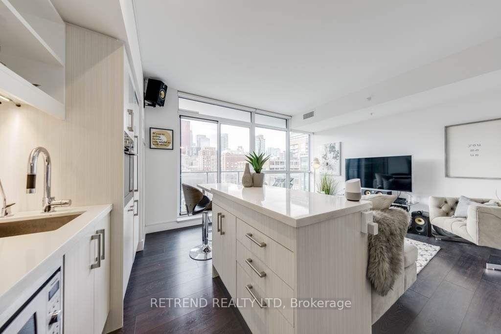 Welcome to this stunning west-facing unit in the heart of the St. Lawrence area. Featuring floor-to-ceiling windows, an open-concept layout, and sleek laminate floors, this home is filled with natural light and style. The modern kitchen is complete with quartz countertops, a versatile island with built-in extension, and full smart home integrationincluding smart lighting and a Nest thermostat.An oversized locker conveniently attached to the parking spot adds extra storage space. Steps to Union Station, St. Lawrence Market, groceries, dining, and nightlife. With 24-hour express TTC at your doorstep and quick access to the Gardiner and DVP, the city is truly within reach.