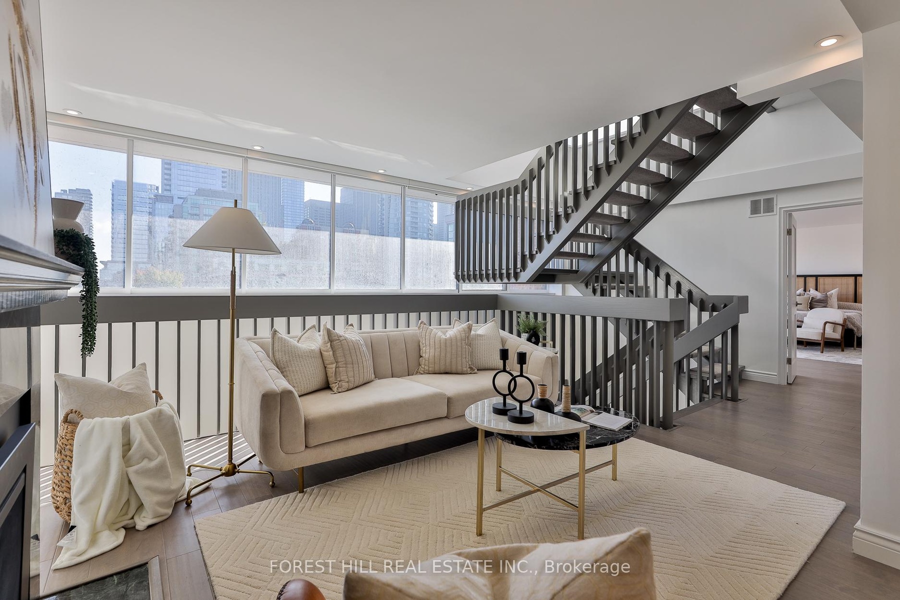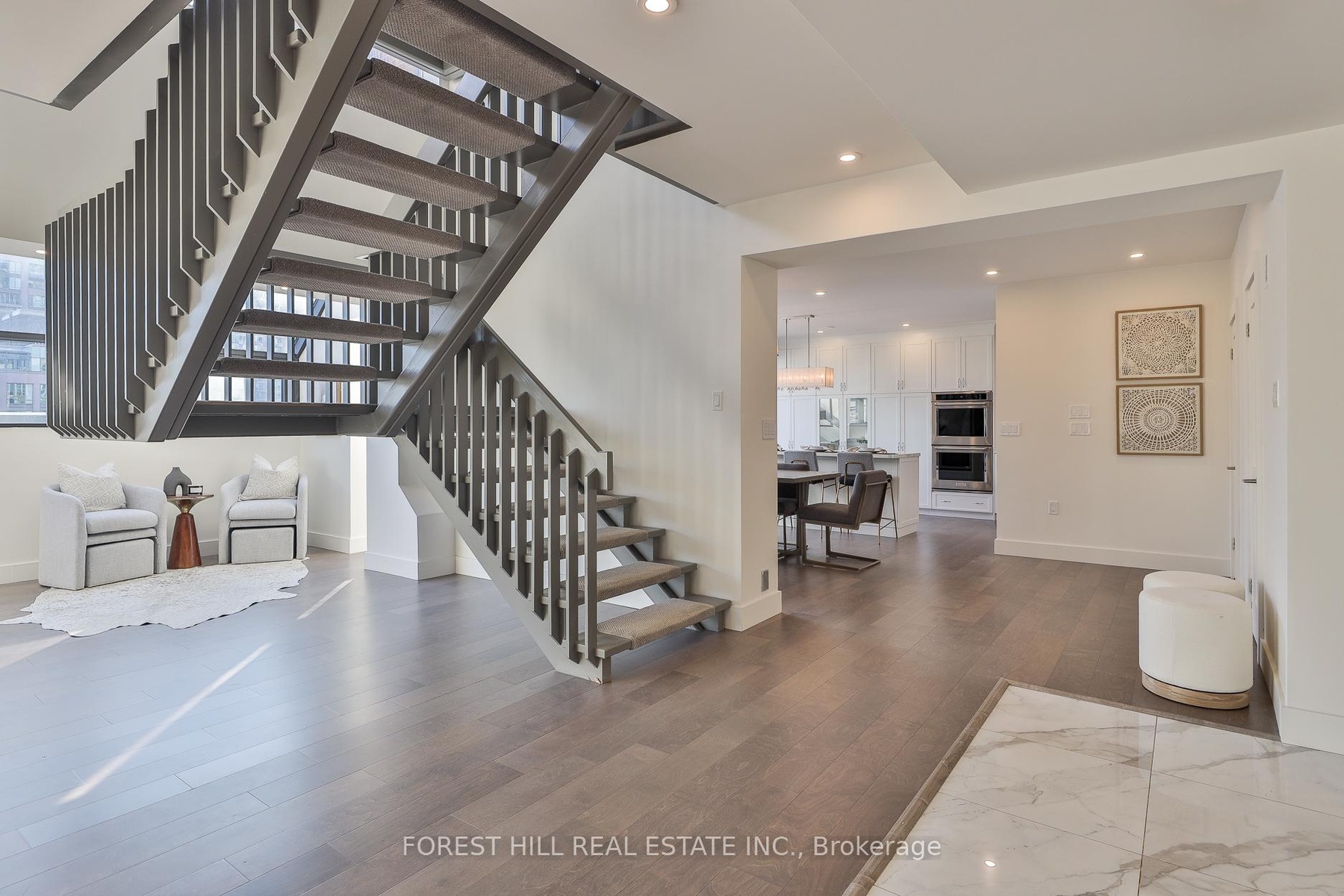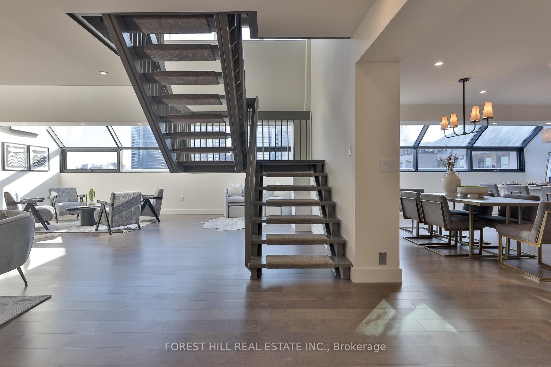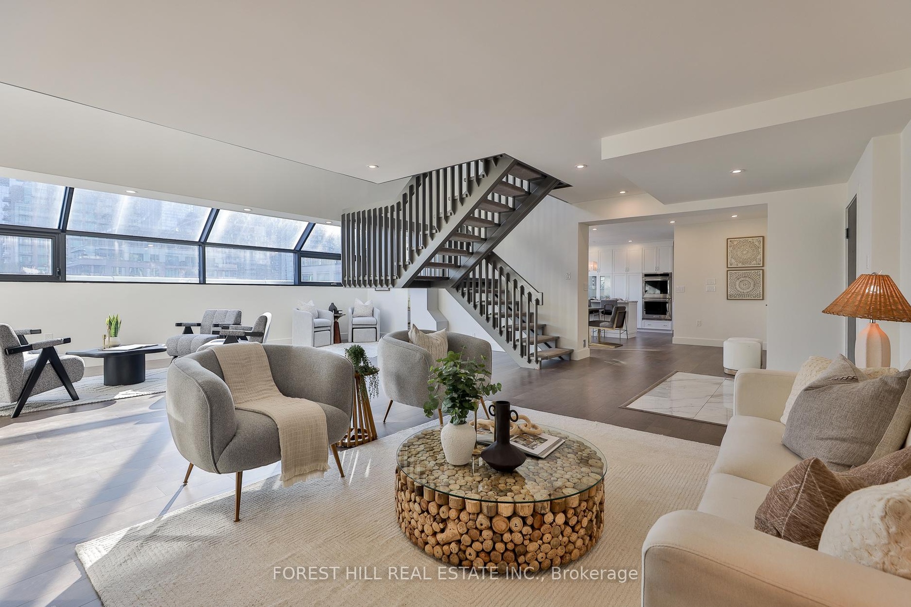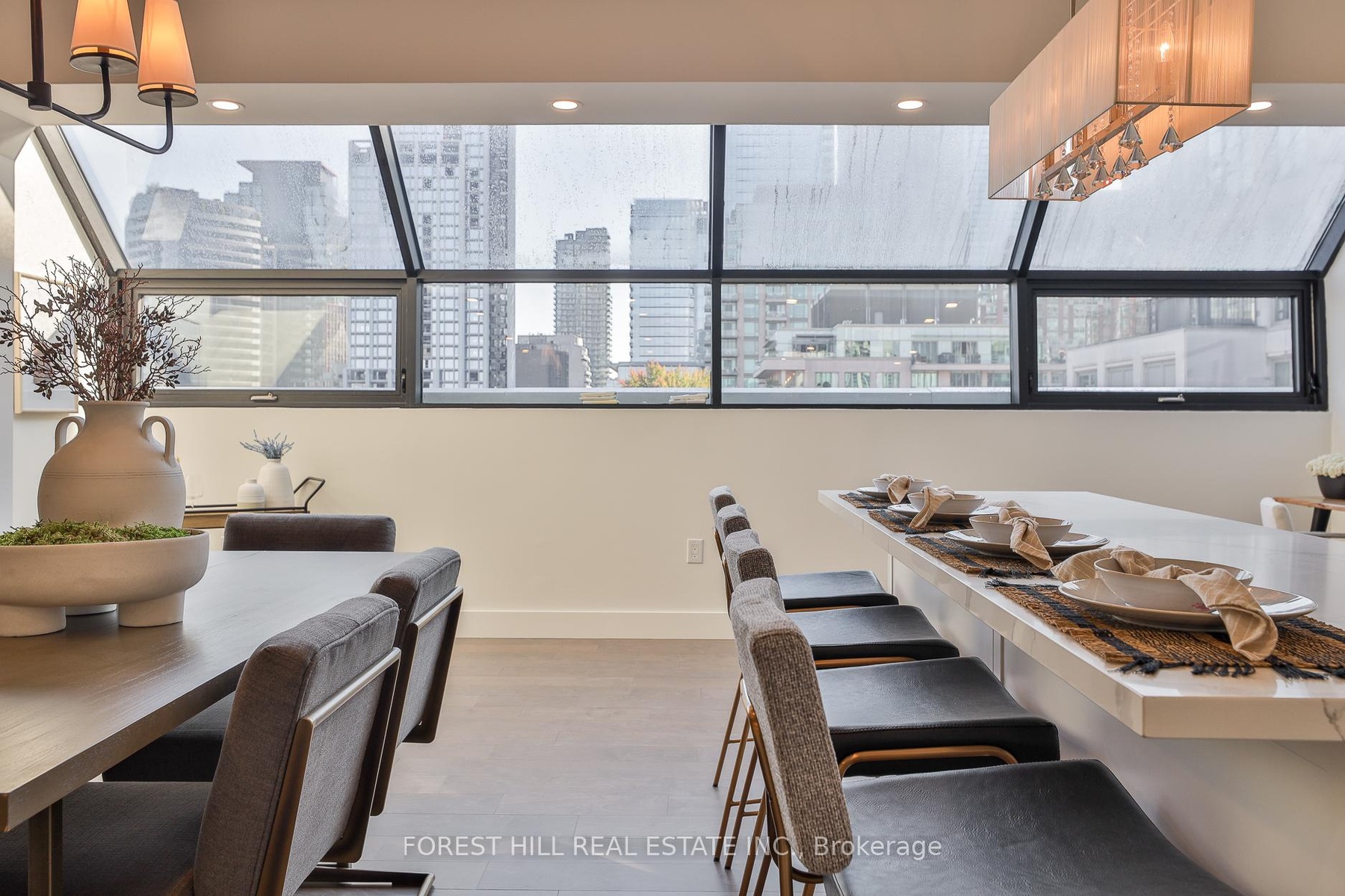 The epitome of refined urban living in the heart of Yorkville, this rare and fully reimagined penthouse residence spans over 2,800 square feet of meticulously curated space plus a 500sqft private rooftop terrace w/the best views in Yorkville, embodying sophistication and grandeur at every turn. Recently transformed with a brand new terrace deck, stunning new advanced window system designed to bathe the interiors in natural light, and new flooring on the main level, every detail has been thoughtfully considered to create an ambiance of timeless elegance. Soaring 18-foot ceilings in the dining area amplify the sense of drama and scale, while the expansive 500 square foot terrace, complete with gas and water hookups, frames mesmerizing views into the vibrant Yorkville landscape. The private quarters are equally impressive, highlighted by a stunning master ensuite crowned with a skylight that floods the space with natural radiance, creating a serene spa-like retreat. Directly connected to Hazelton Lanes and Whole Foods and mere steps to the world-renowned Mink Mile, residents are immersed in a cosmopolitan lifestyle surrounded by chic cafés, acclaimed bistros, and designer boutiques, all while enjoying the privilege of two-car parking and the security of a full-time concierge, making this extraordinary home the ultimate expression of Yorkville luxury living.