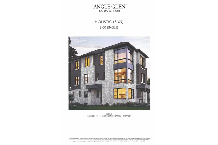 AMAZING OPPORTUNITY! Move in to this Stunning 3025 sq. ft. Modern Detached 4 Bed. 3.5 Bathroom BRAND NEW Home in Angus Glen South Village. Gorgeous neighborhood surrounded by protected green space, loads of trees and walking trail access. Superb high quality loft style windows, 9' 10' 9' Smooth ceilings, 8' doors, hardwood floors, and stairs, throughout, porcelain tiles in kitchen & bathrooms. Open concept kitchen /breakfast family rooms. Gas fireplace. Kitchen boasts built in 36" 'WOLF' S/steel gas stove, 34" hood fan, 36" S/S 'Sub Zero' fridge, 'Bosch' dishwasher, 'Wolf' microwave. Quartz counters, Upper cupboards to ceiling with trim & light valance, 'Yoga' Studio/could be office with wet bar & 3 piece bathroom French door walk out to balcony. Primary bedroom has Volume ceiling & 5 piece ensuite with stand alone tub, glass shower. Cold cellar in basement. 20 pot lights + 4 outside. 2 car garage + 2 car driveway. Close to Angus Glen Golf Course, Community Centre, great grocery store & 'Toogood Pond park. High ranking Pierre Elliot High School, New Elementary School coming 2027 within walking distance. Cat 6 R/I network wiring, elec. for TV.