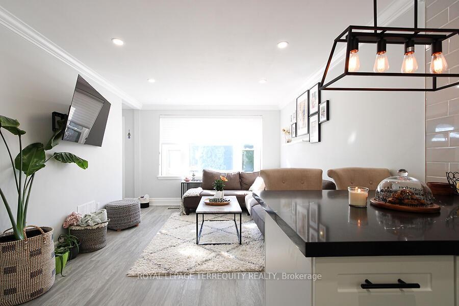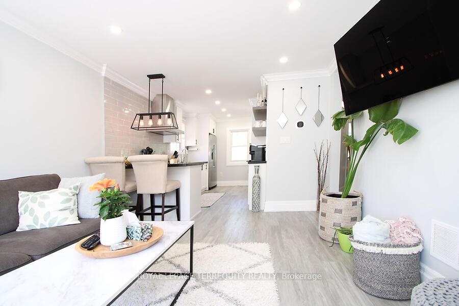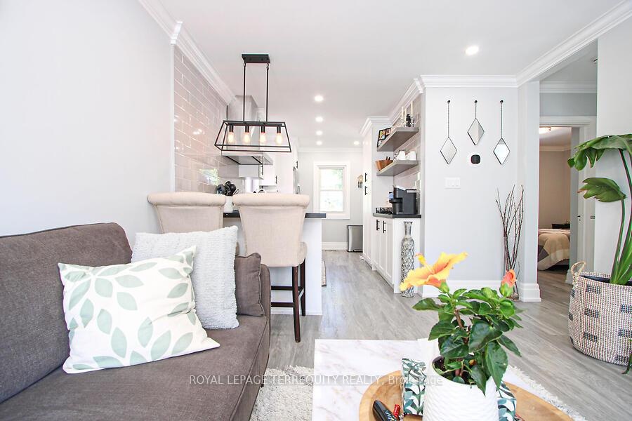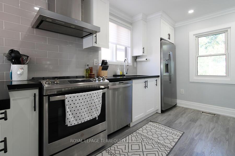 DescriptionExperience the ideal fusion of comfort, style, and convenience in this beautifully updated bungalow, perfectly positioned in the sought-after Inch Park community. This home presents a rare turnkey opportunity, having been thoughtfully renovated from top to bottom. Step into a bright and spacious open-concept living and kitchen area, where natural light pours in. The fully updated kitchen (2022) boasts premium GE st.-steel appliances, a floor-to-ceiling pantry, and a convenient coffee or dry bar for added storage. The peninsula offers ample space for meal prep, casual dining, and entertaining, all with unobstructed views from the front to the back of the home. Luxury vinyl plank flooring, fresh wall finishes, crown-molding and elegant tile work span both levels. Dimmable pot lights on the main floor (2022) set the perfect mood. The HVAC system has been enhanced with upgraded venting (2022) for improved airflow, complemented by updated electrical (2022) and plumbing systems (2025). The main level features two comfortable bedrooms and a stylish 4-piece bathroom. A newly installed staircase (2025) leads to the versatile lower level, which includes a recreation or office space, a third bedroom, and a full bathroom/laundry room (2025) equipped with a GE washer/dryer combo. The utility room offers generous storage and houses an additional fridge/freezer. Outside, enjoy a spacious multi-tiered wooden deck with a natural gas BBQ hookup (2022), perfect for outdoor gatherings. The fully fenced backyard is a rare gem, complete with perennial gardens, fruit trees, and vegetable bedsplus ample space for future additions or structures. New roof shingles installed in 2025. Spacious driveway with room for 3 vehicles. Upgraded water service line from 1/2 to 3/4 inch. Ideally located just a minutes walk from Inch Park and close to Lime Ridge Mall, grocery stores & downtown Hamilton. Major highways including the Linc, 403, and QEW are all easily accessible within 5 to 10 minutes.Virtual Tour: https://www.myvisuallistings.com/cvtnb/359415Amenities- Awnings