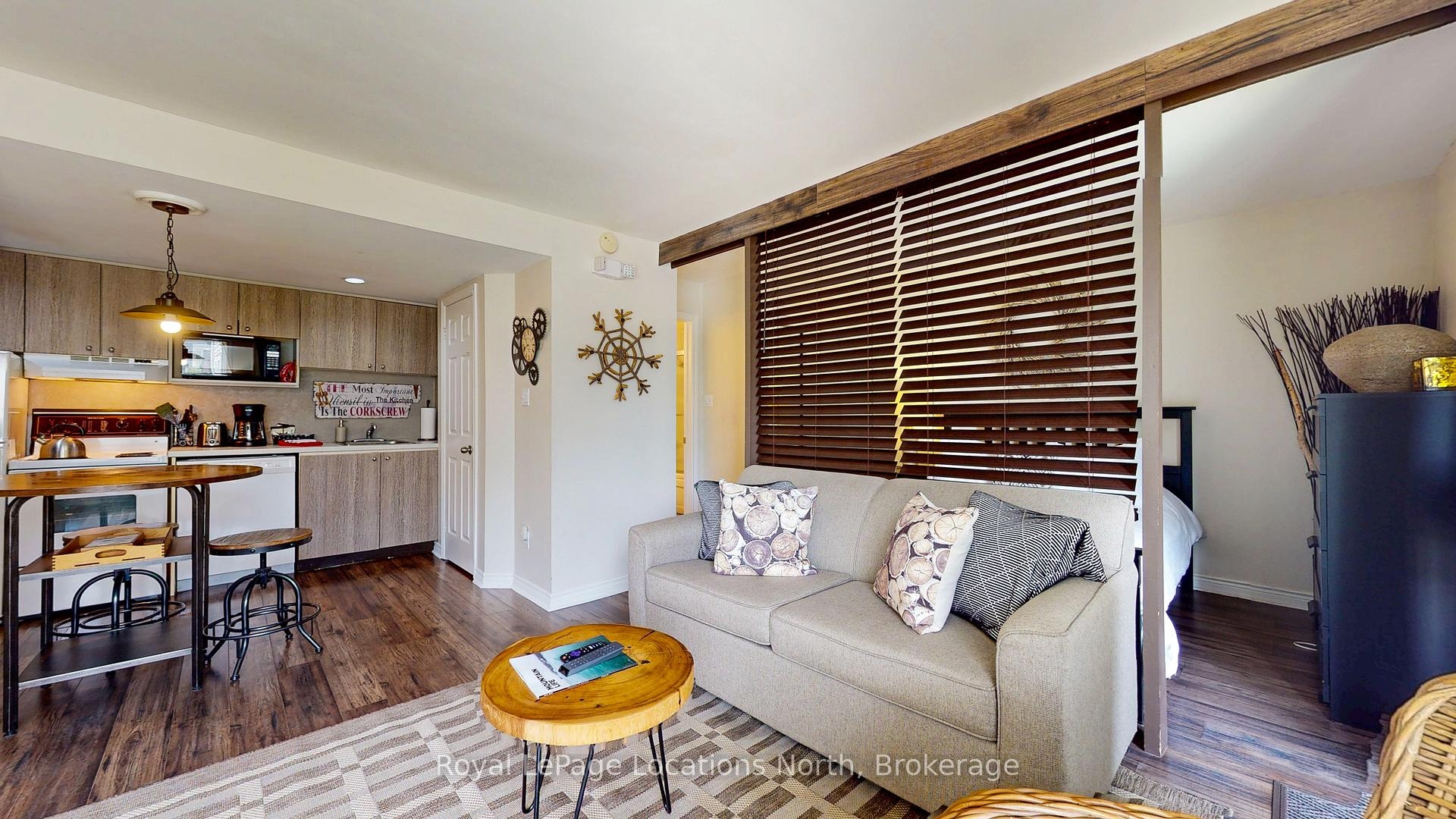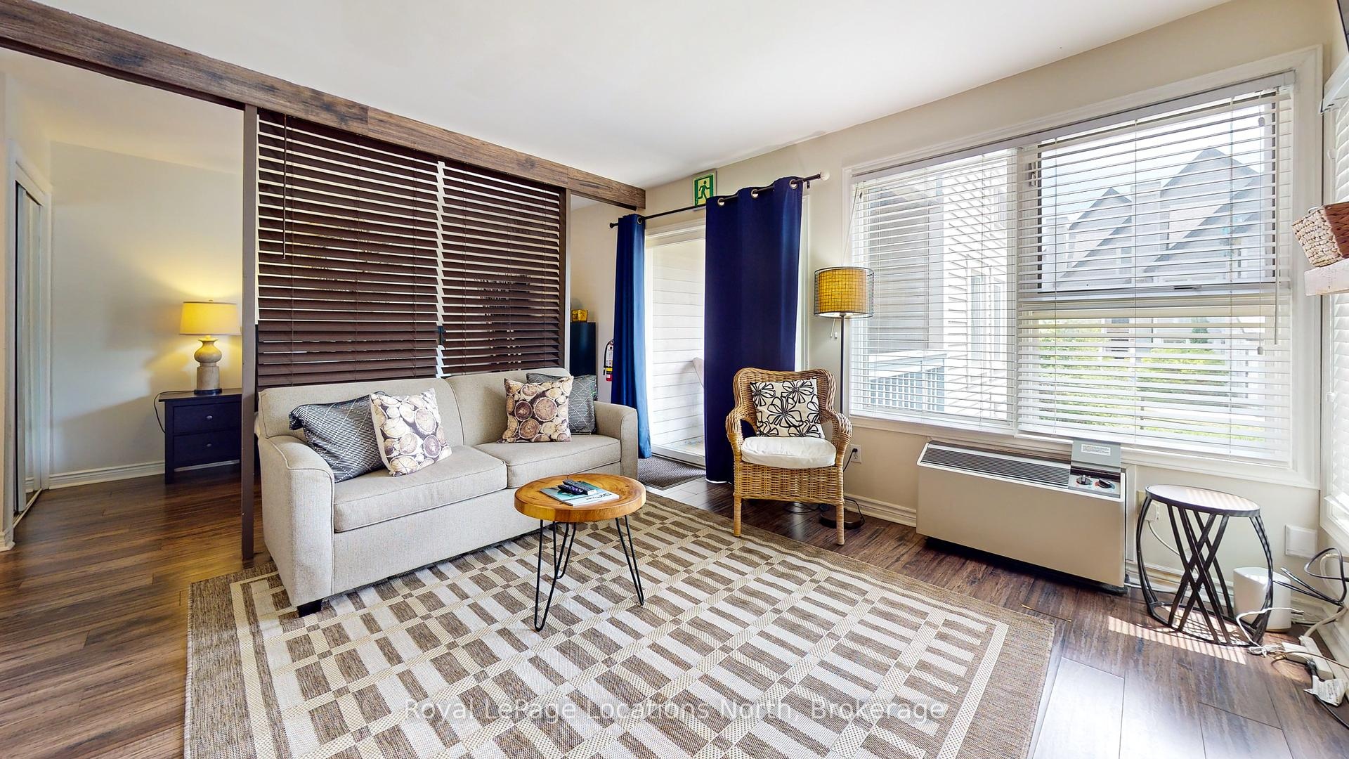 Welcome to Unit 508 at North Creek Resort. This condo complex is situated next to the Toronto Ski Club and the Weider Express/North Chair Lift. You can ski in and ski out! The property is surrounded by stunning natural scenery, with trails and Northwinds Beach just a short walk away. Enjoy Apres-Ski drinks on your private balcony. This unit is currently included in the short-term rental program managed by Trillium Property Management. Are you a passionate skier seeking a weekend getaway? Or perhaps you need a condo for occasional visits? Utilize the rental programs to ensure you earn income when you're not using the property. The condo features amenities such as a clubhouse/lounge with an Indian restaurant, a seasonal outdoor pool, two hot tubs, tennis/pickleball courts, charcoal BBQs, and security services. Condo fees cover water, sewer, basic cable TV, internet, visitor parking, and shuttle service to Blue Mountain Village. You'll feel at home as soon as you step inside. This open-concept studio unit includes one bed and one bath, a sitting area with a wall-mounted TV, an electric fireplace, an apartment-sized kitchen, and electric heating/AC systems. The bathroom features a tub, perfect for relaxing those muscles after a long day on the slopes. The unit is being sold 'turnkey' with furniture included. It's available just in time for ski season...don't miss out on the opportunity for short-term rental income. Note: HST is applicable which can be deferred if the buyer is an HST registrant. A 0.5% BMVA fee payable on closing (and VAF royalty fees apply when renting).