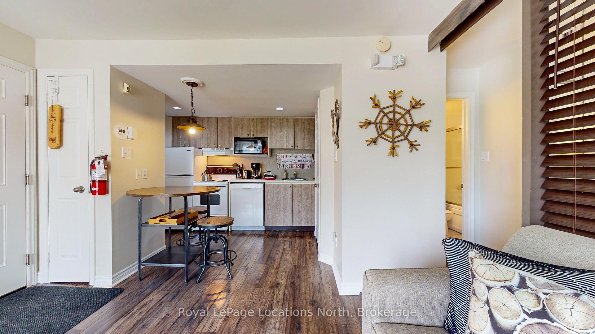 DescriptionWelcome to Unit 508 at North Creek Resort. This condo complex is situated next to the Toronto Ski Club and the Weider Express/North Chair Lift. You can ski in and ski out! The property is surrounded by stunning natural scenery, with trails and Northwinds Beach just a short walk away. Enjoy Apres-Ski drinks on your private balcony. This unit is currently included in the short-term rental program managed by Trillium Property Management. Are you a passionate skier seeking a weekend getaway? Or perhaps you need a condo for occasional visits? Utilize the rental programs to ensure you earn income when you're not using the property. The condo features amenities such as a clubhouse/lounge with an Indian restaurant, a seasonal outdoor pool, two hot tubs, tennis/pickleball courts, charcoal BBQs, and security services. Condo fees cover water, sewer, basic cable TV, internet, visitor parking, and shuttle service to Blue Mountain Village. You'll feel at home as soon as you step inside. This open-concept studio unit includes one bed and one bath, a sitting area with a wall-mounted TV, an electric fireplace, an apartment-sized kitchen, and electric heating/AC systems. The bathroom features a tub, perfect for relaxing those muscles after a long day on the slopes. The unit is being sold 'turnkey' with furniture included. It's available just in time for ski season...don't miss out on the opportunity for short-term rental income. Note: HST is applicable which can be deferred if the buyer is an HST registrant. A 0.5% BMVA fee payable on closing (and VAF royalty fees apply when renting).Amenities- Club House